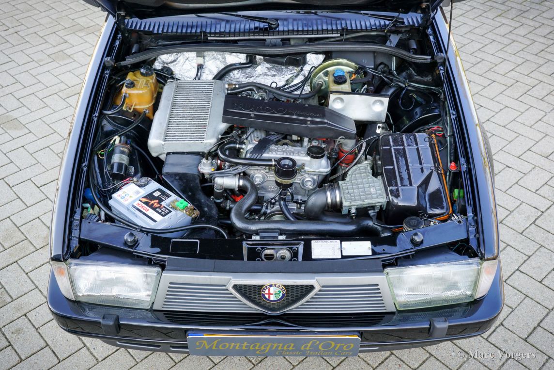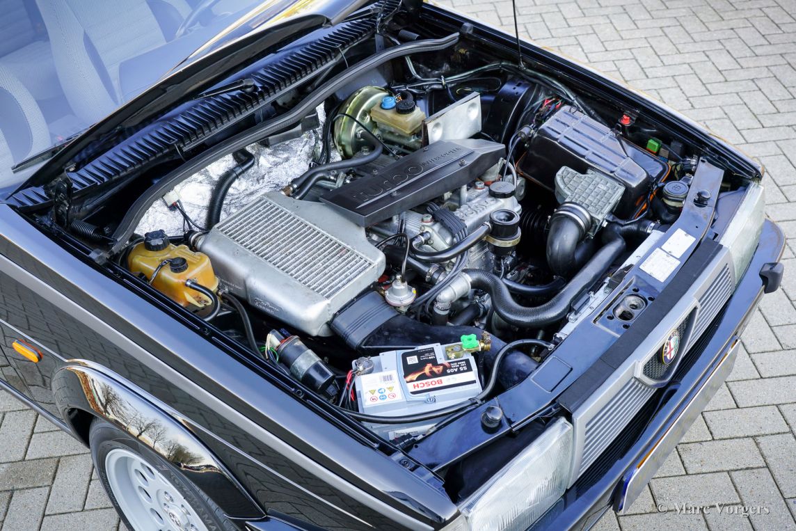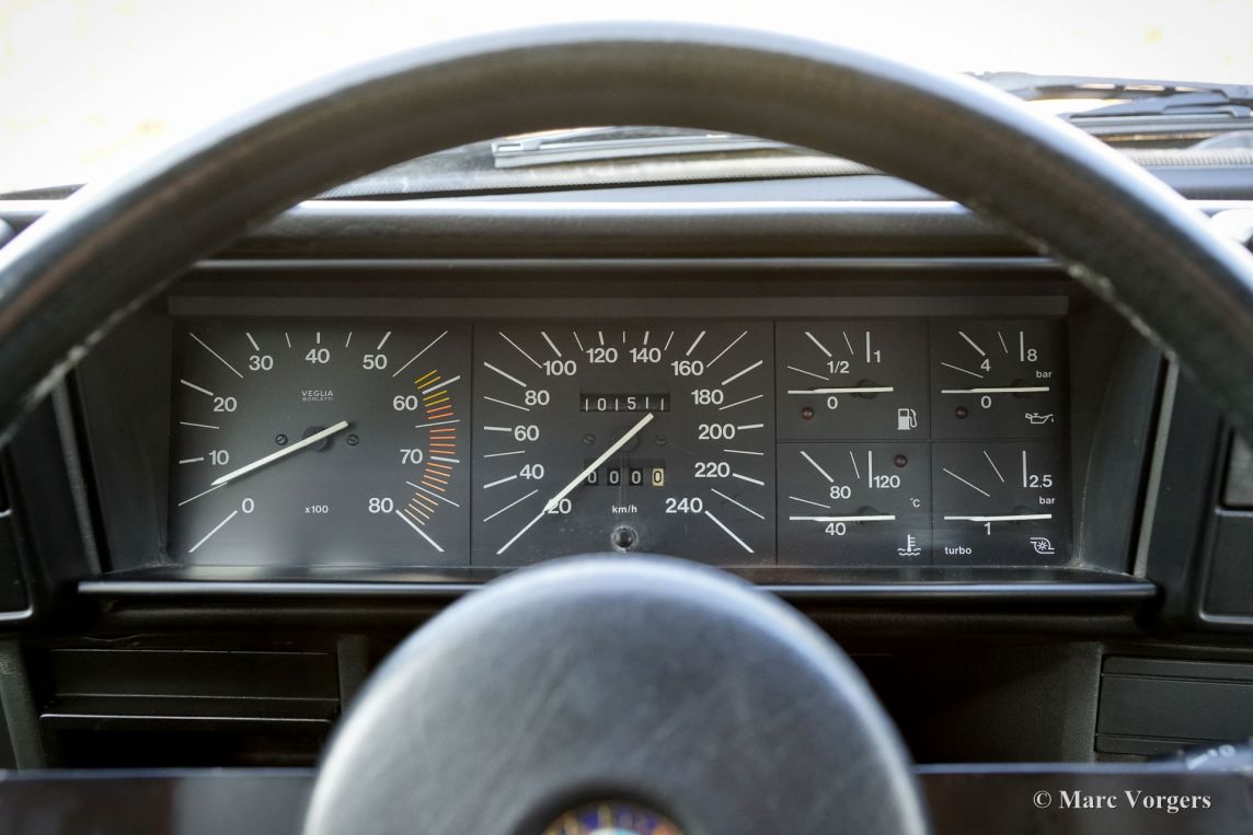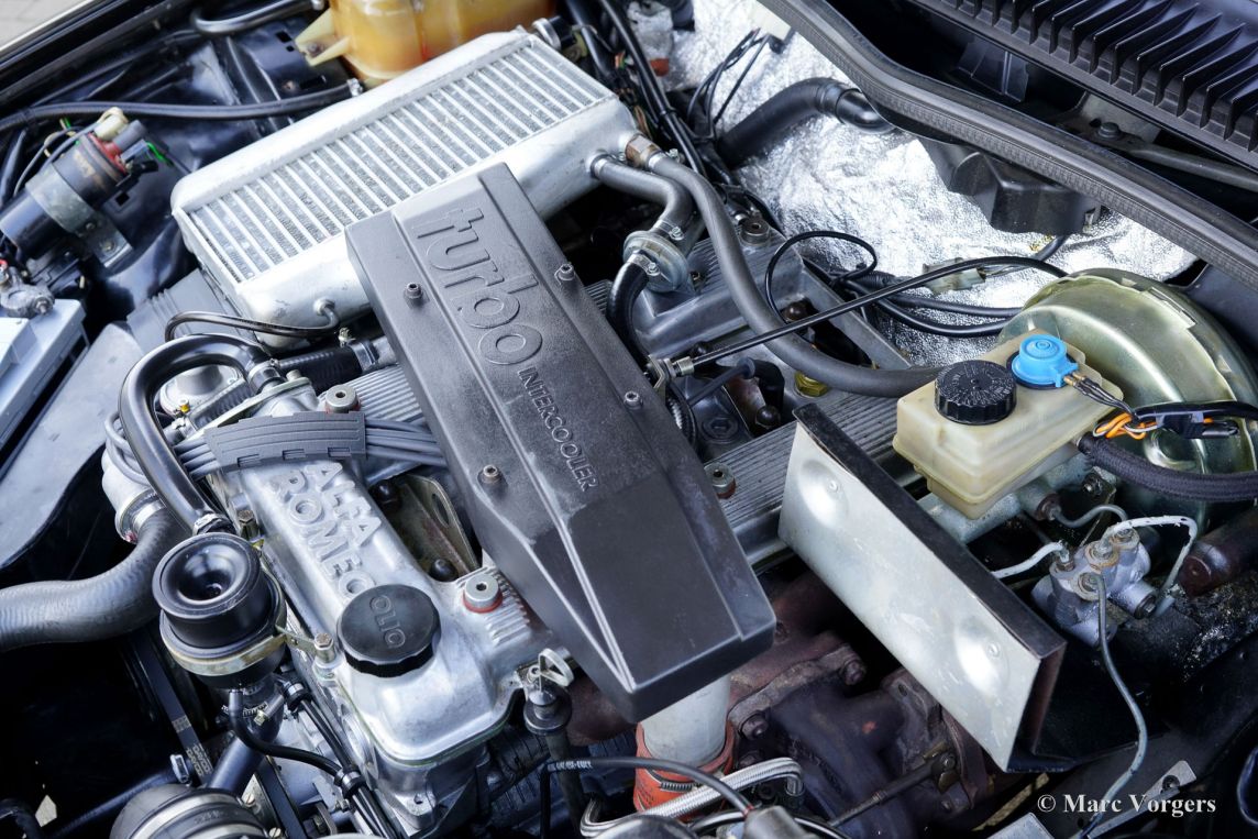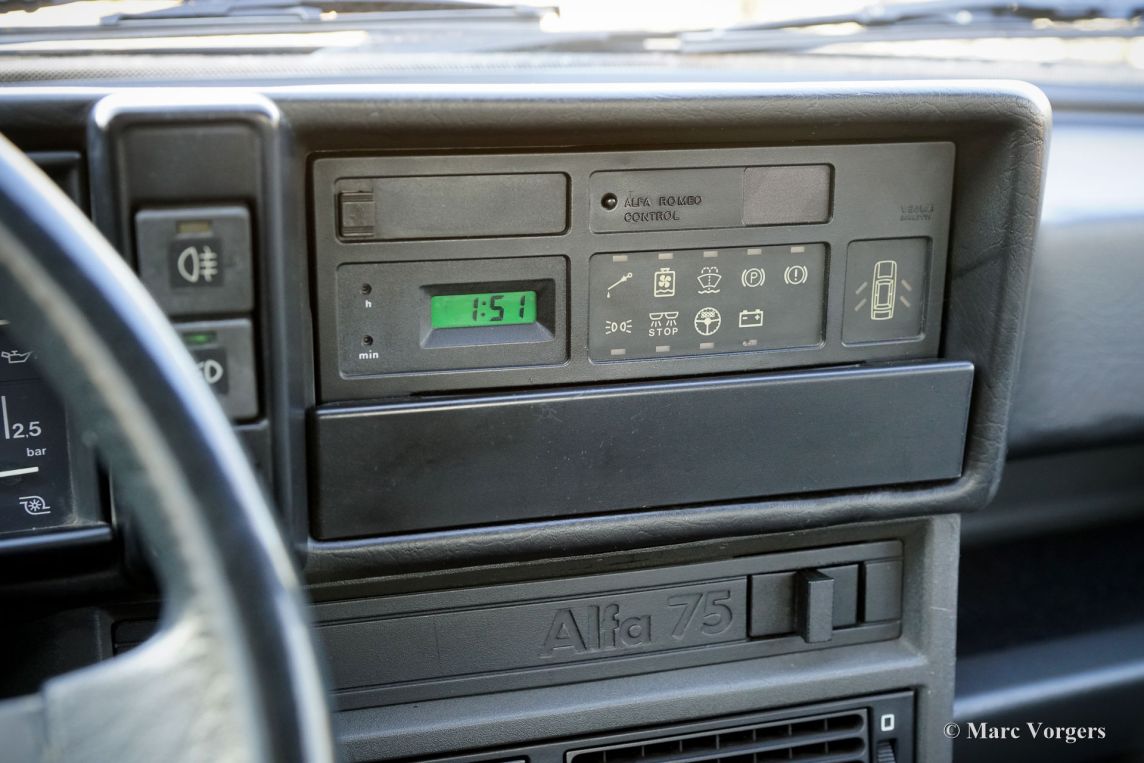 Alfa Romeo 75 1.8 Turbo, année 1986 (première immatriculation le 1er janvier 1986). Numéro de châssis ZAR162B1000050918. Extérieur noir (Nero AR 913) et intérieur noir, gris foncé et gris clair. Les sièges, comme neufs, sont revêtus de tissu à carreaux (gris très clair et gris foncé) avec des empiècements en cuir gris foncé sur les assises des sièges avant. Cette magnifique Alfa Romeo 75 Turbo fut vendue neuve en Italie. Elle est équipée d'une climatisation d'origine, une option très rare ! Il y a quelques années, cette superbe voiture fut restaurée par le célèbre atelier Museo Fratelli Cozzi de Legnano, en banlieue milanaise. Le moteur et la boîte de vitesses furent révisés et un magnifique intérieur flambant neuf a été installé. En 2024, la voiture fut importée aux Pays-Bas. Récemment, la peinture fut perfectionnée et traitée avec un glaçage Labocosmetica, et de nouvelles jantes en alliage Ronal d'origine furent montées. Les factures d'entretien sont disponibles. Afin de parfaire cette rare Alfa Romeo 75 Turbo, nous avons acquis des feux arrière neufs d'origine et une barre de réflecteurs arrière qui seront installés prochainement. Cette superbe Alfa Romeo 75 1.8 Turbo affiche seulement 101 511 kilomètres au compteur. La voiture est dans un état exceptionnel, proche du neuf, et se conduit comme une voiture neuve ! Vous aurez bien du mal à trouver un autre exemplaire dans un état aussi impeccable ! Les chiffres de production exacts de l'Alfa Romeo 75 1.8 Turbo sont inconnus, mais Alfa Romeo devait en produire au moins 5 000 pour obtenir l'homologation FIA pour les voitures de tourisme du Groupe A. Sous le capot, vous trouverez le moteur quatre cylindres en ligne de 1 800 cm³, équipé d'un turbocompresseur Garrett T3 et d'un intercooler, développant 155 ch et 226 Nm de couple. Le turbo offrait à la 75 des performances remarquables pour son époque, avec une vitesse de pointe de 210 km/h et une accélération de 0 à 100 km/h en 7,6 secondes. (Et c'est toujours très rapide avec le léger sifflement du turbo dans vos oreilles !) Ces chiffres plaçaient la 75 Turbo parmi les meilleures berlines compactes de direction de son temps. Saisissez l'opportunité d'acquérir une Alfa Romeo 75 1.8 Turbo dans un état de collection quasi parfait, provenant du prestigieux Museo Fratelli Cozzi !