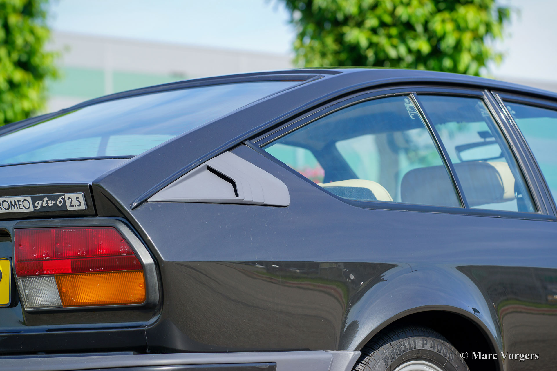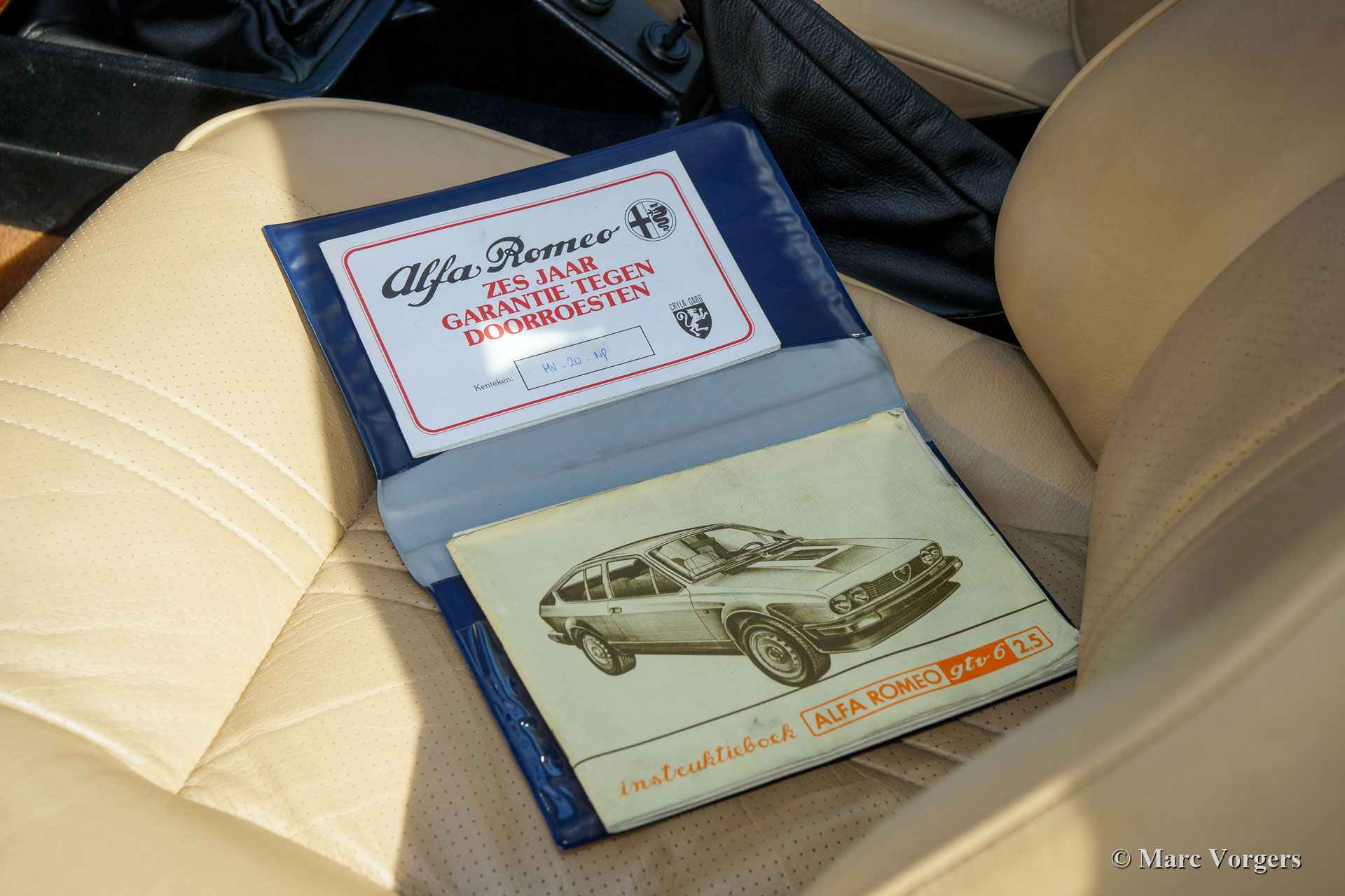 Alfa Romeo GTV 6 2.5, année 1982. Couleur gris foncé métallisé combinée à un intérieur en cuir beige, une moquette brun pâle et des tapis de protection noirs. Cette fabuleuse Alfa Romeo GTV 6 fut vendue neuve aux Pays-Bas. L'automobile a connu deux propriétaires de nouveau. La voiture fut chérie toute sa vie et l’automobile fut entretenue à la perfection. Depuis neuf, la voiture a parcouru 107 000 kilomètres. Cette très belle Alfa Romeo est en superbe etat de TOP ; presque comme neuf ! L’Alfa Romeo Alfetta GTV 6 est équipée d’un puissant moteur V6 de 2,5 litres qui propulse les roues arrière via une boîte de vitesses « trans axle » montée sur le différentiel entre les roues arrière. Cette disposition garantit une répartition parfaite du poids et une excellente tenue de route. Le moteur sonne incroyable ! Cette Alfa Romeo GTV 6 est comme neuve ! Ce doit être l'un des meilleurs exemples sur le marché Européenne.