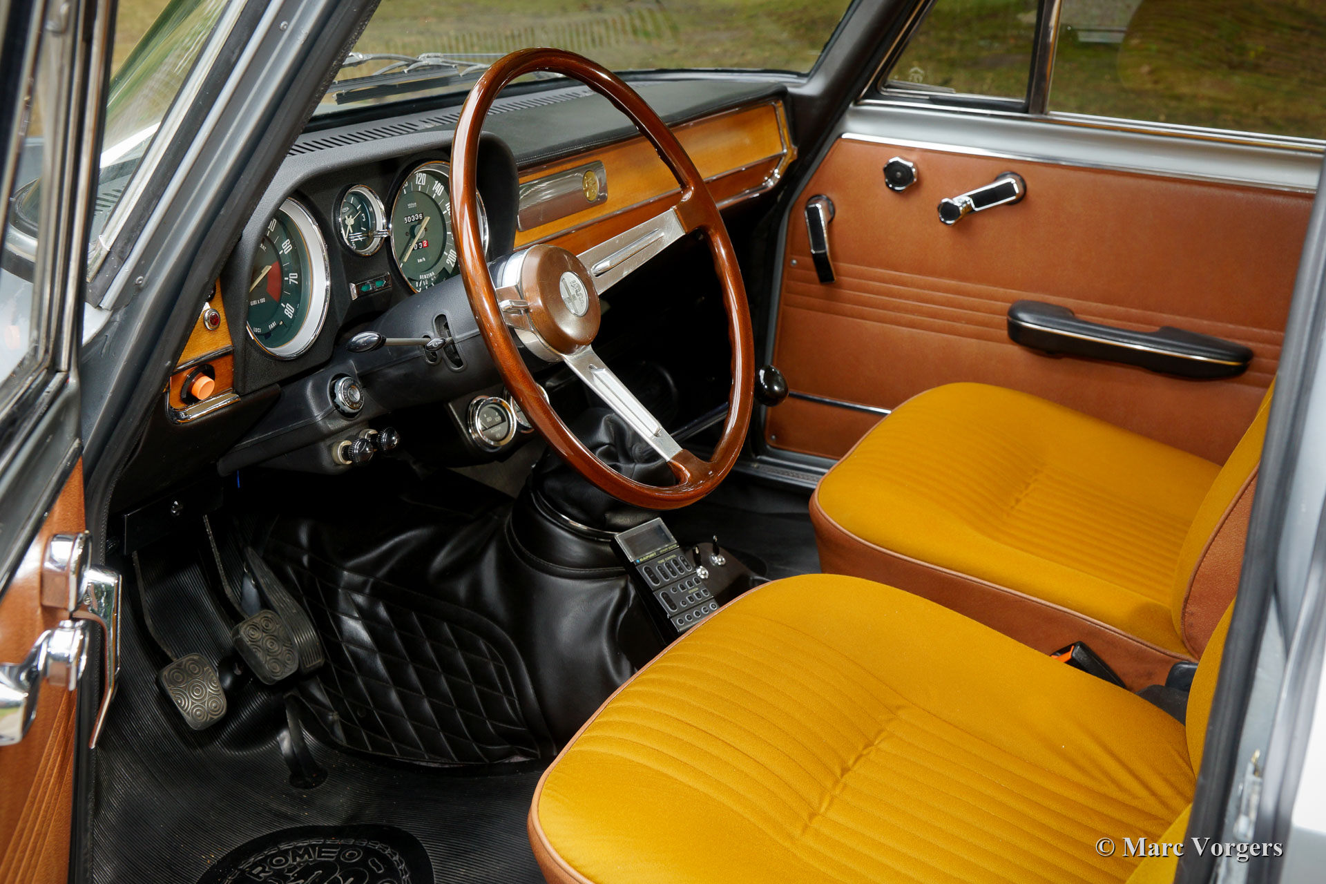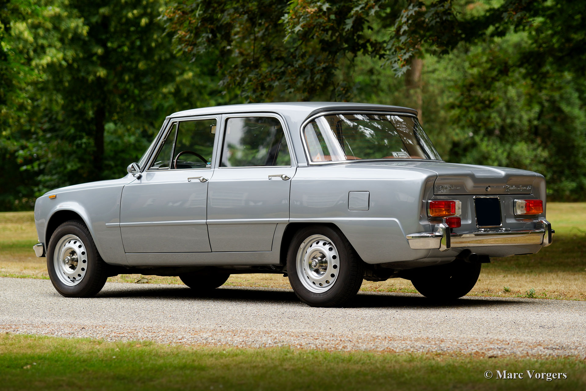Alfa Romeo Giulia 1300 Super, année 1972. Couleur gris métallisé avec un intérieur en simili cuir / tissu cognac. Cette fantastique Alfa Romeo Giulia Super fut vendu neuve en Italie où la voiture n'a connu qu'un seul propriétaire. En 1997, la voiture fut importée aux Pays-Bas où elle fut chérie par un propriétaire pendant 21 ans. Cette Alfa Romeo est en excellent état et la voiture roule et conduite parfaitement ! Immédiatement après son arrivée aux Pays-Bas, la voiture a été restaurée. En 2002, le moteur fut révisé. En 2015, la voiture a reçu une nouvelle peinture complète. Des photos de la restauration en 1997/1998 sont présentes ainsi que toutes les factures qui donnent un aperçu splendide de l'histoire du service. Également présents sont des rapports d'évaluation et un article sur cette voiture dans un magazine anglais de voitures classiques.