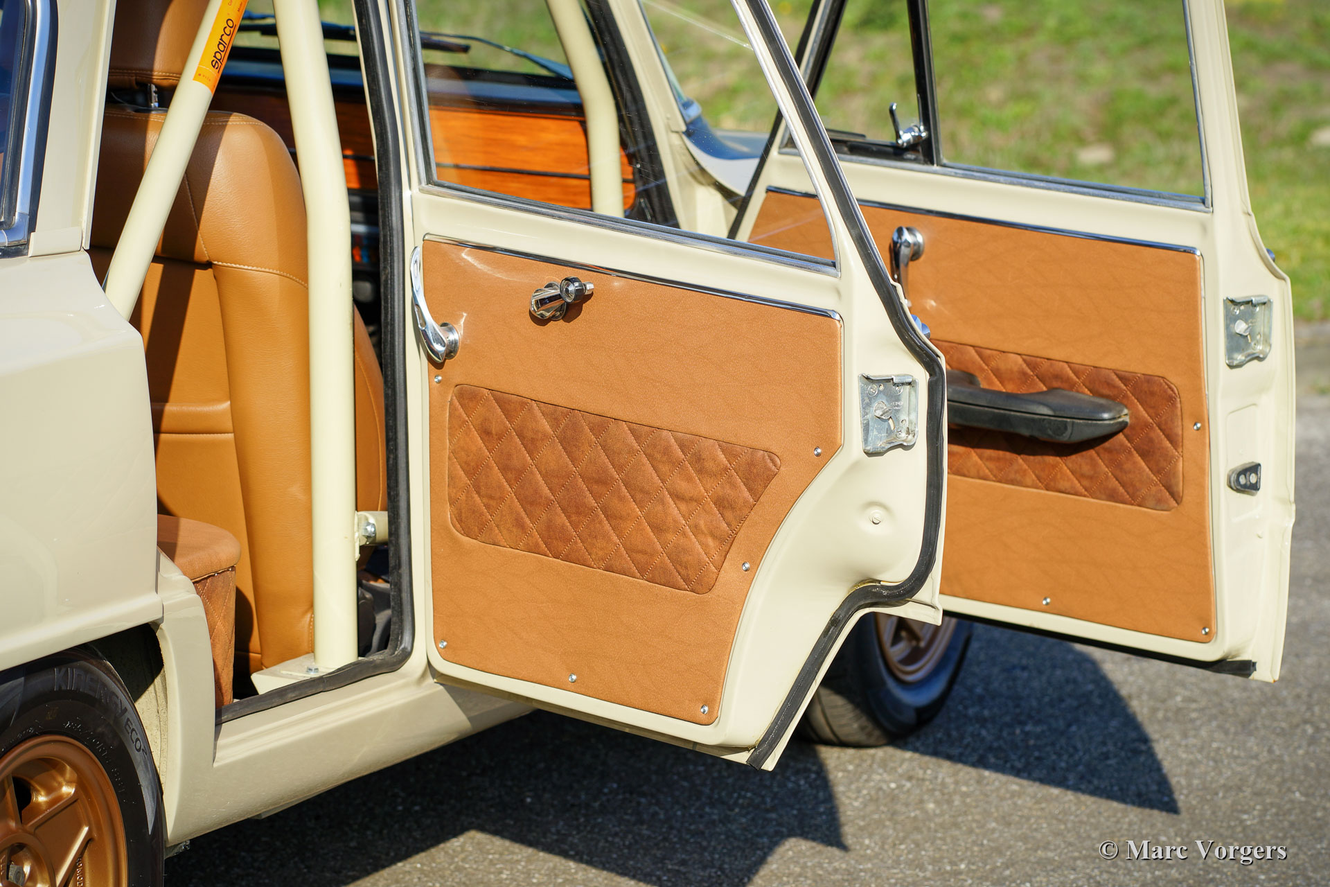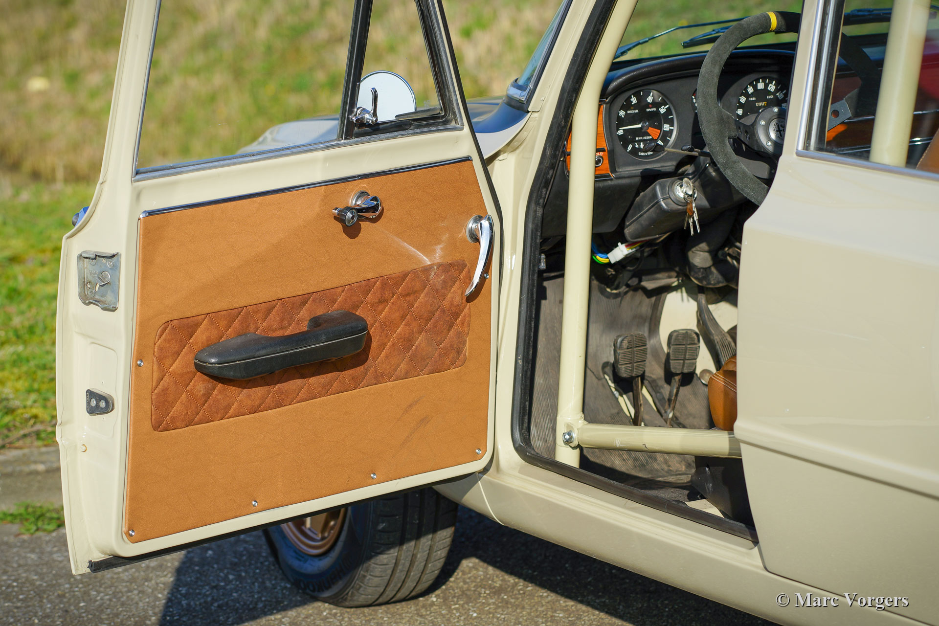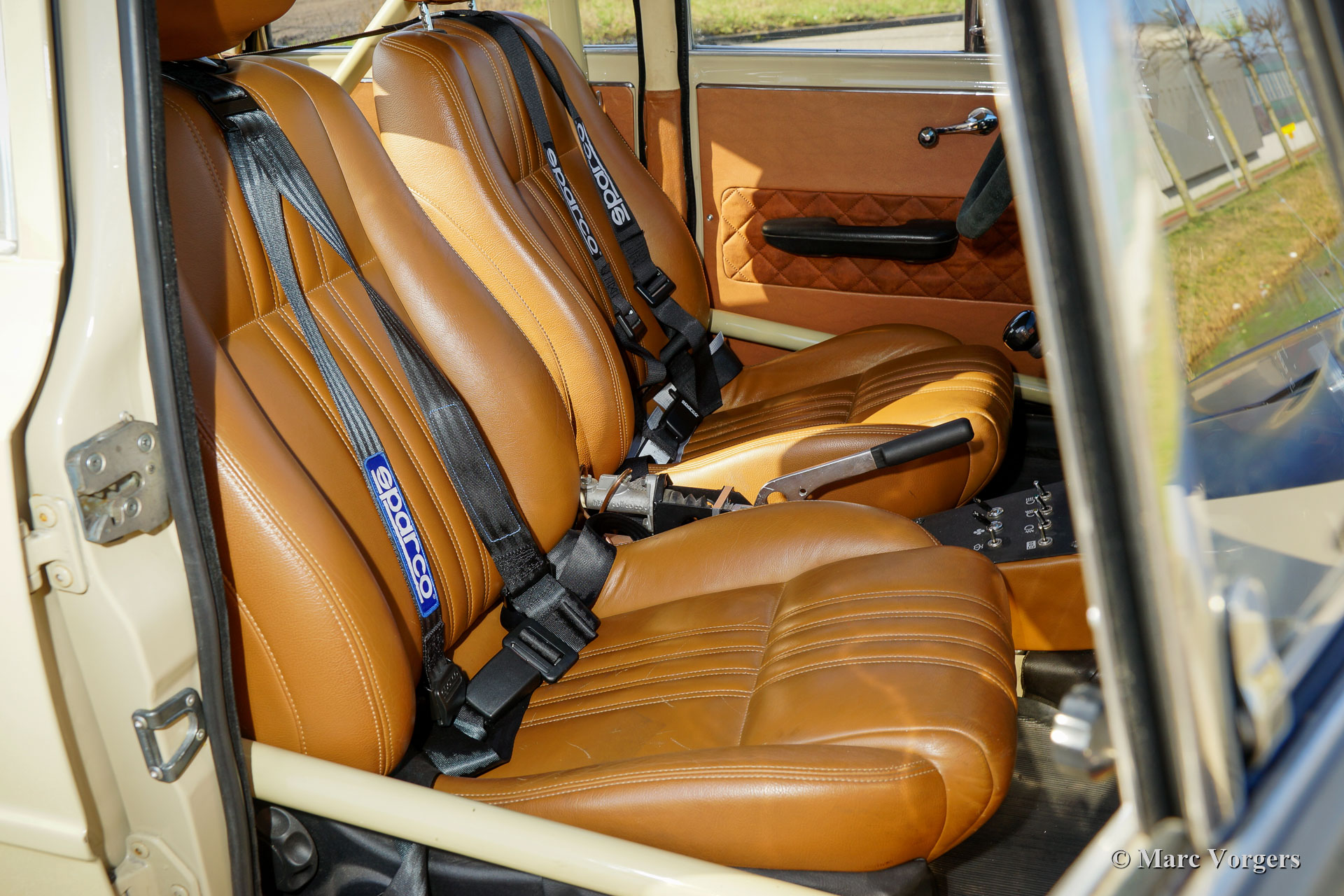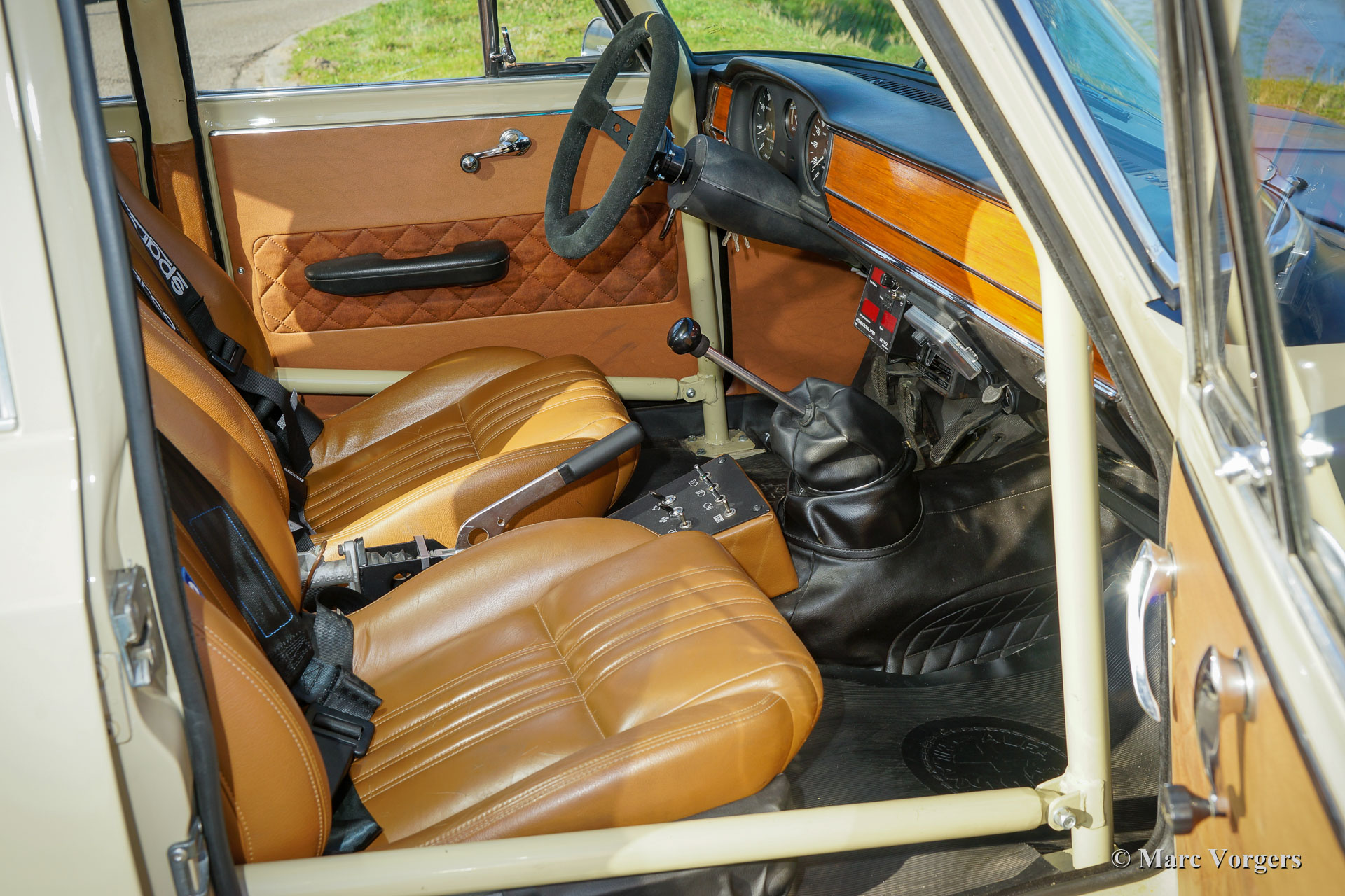 Alfa Romeo Giulia 1300 TI voiture de rallye, année 1969. Couleur Cava (beige sable) associée à un intérieur en cuir / similicuir marron clair. Cette fabuleuse voiture de rallye Alfa Romeo Giulia fut largement restaurée. La voiture fut magnifiquement reconstruite et préparée comme une voiture de rallye historique. La carrosserie fut restaurée et peinte tout autour et à l'intérieur et à l'extérieur. L'intérieur était superbement rembourré avec le souci du détail. Le moteur 1300 fut remplacé par une unité de 2 litres entièrement révisée et réglée, équipée d'arbres à cames pour plus de pouvoir, d'une compression plus élevée, de carburateurs à double starter, d'un filtre à air sport et d'un allumage électronique. La boîte de vitesses à 5 rapports a également été entièrement reconstruite. Le métier à tisser fut renouvelé et optimisé à des fins de rallye. Cette voiture de rallye Alfa Romeo est en excellent état et la voiture roule parfaitement ! (Sportive et toujours confortable, pas de noyau dur.) La voiture de rallye dispose de sièges sport spéciaux avec harnais de sécurité Sparco à 4 points, d'un arceau de sécurité Sparco, d'un tripmètre de rallye Brantz, d'une plaque de protection du carter d'huile, nouveau faisceau de câbles, de projecteurs Hella 2000, des Hella feux de virage, une lampe de recul Hella et de magnifiques jantes en alliage Cromodora peintes en bronze. C'est une voiture de rallye Alfa Romeo très désirable qui a été construite à la perfection. Cette machine est prête pour chaque aventure (de rallye) entre les mains d'un nouveau propriétaire!