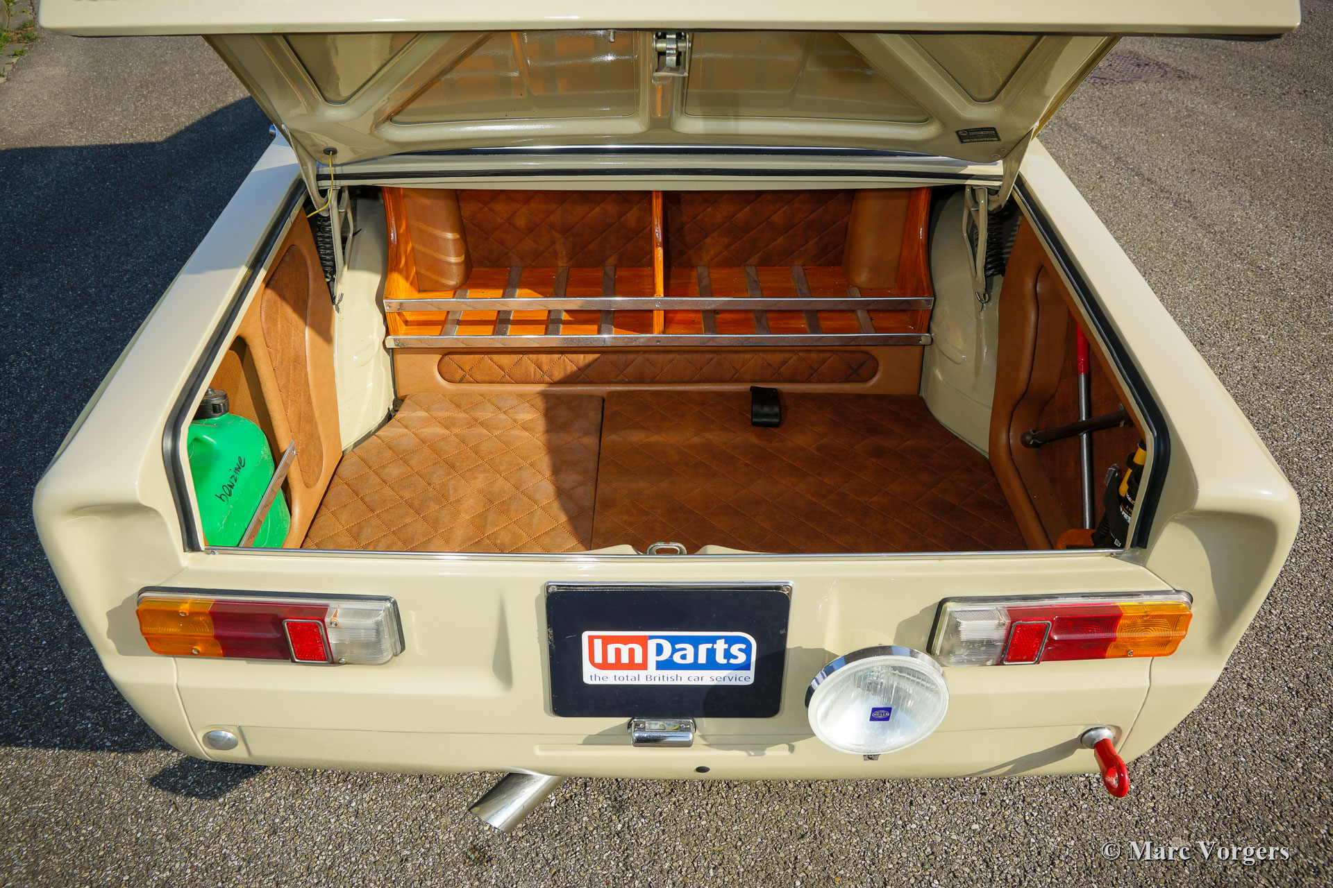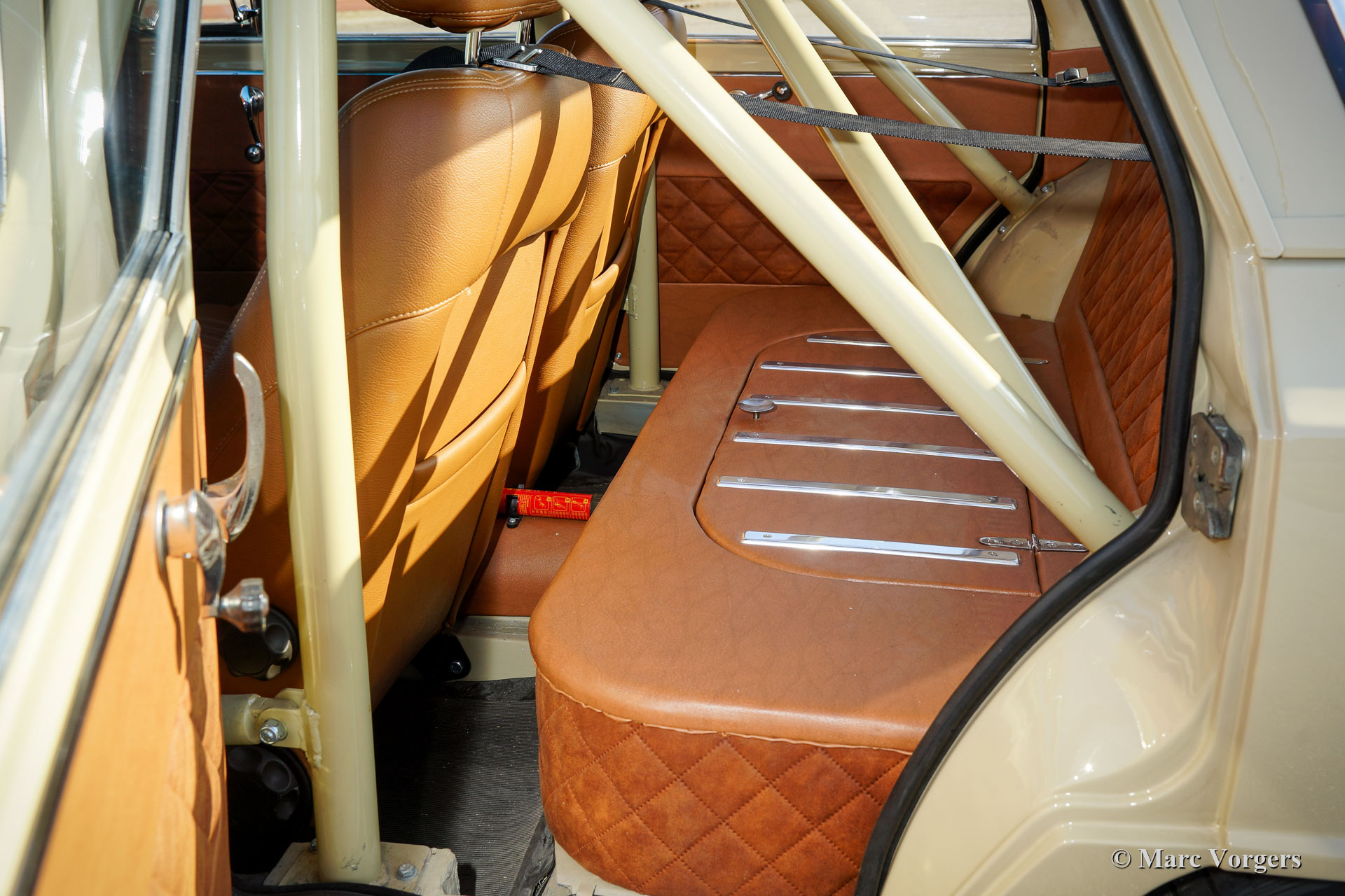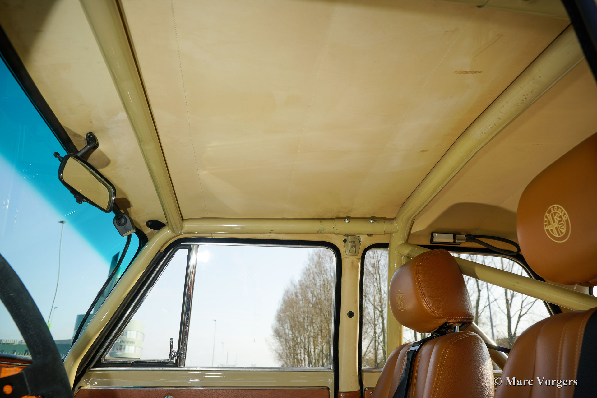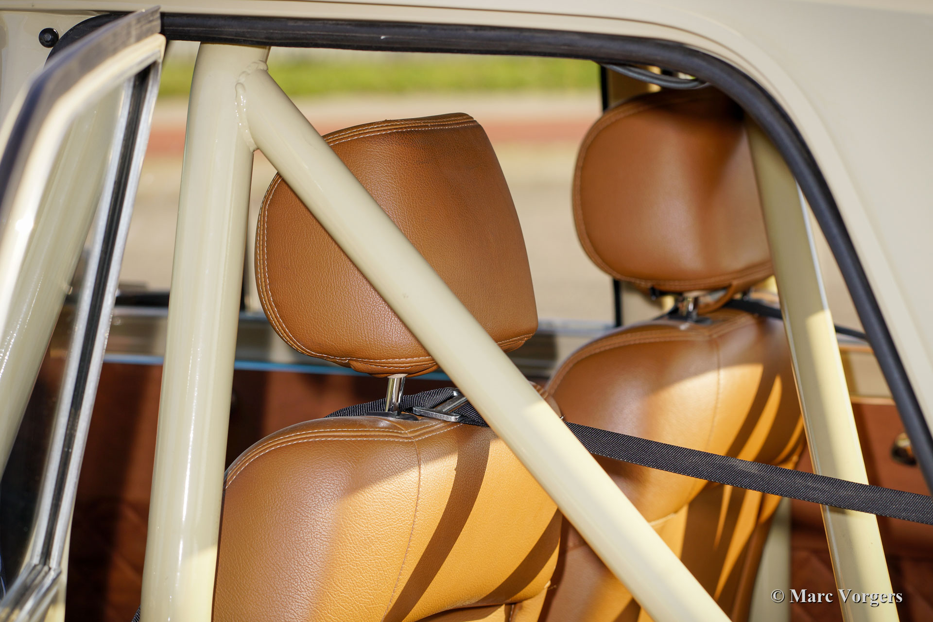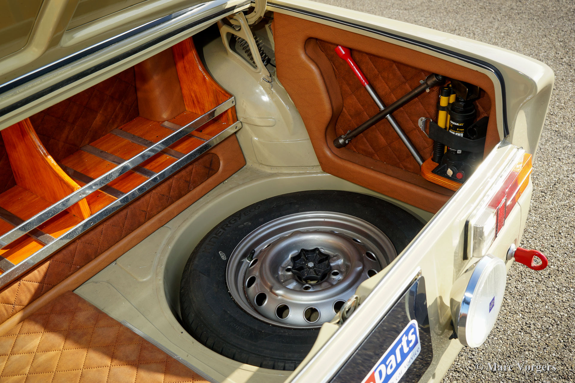 Alfa Romeo Giulia 1300 TI voiture de rallye, année 1969. Couleur Cava (beige sable) associée à un intérieur en cuir / similicuir marron clair. Cette fabuleuse voiture de rallye Alfa Romeo Giulia fut largement restaurée. La voiture fut magnifiquement reconstruite et préparée comme une voiture de rallye historique. La carrosserie fut restaurée et peinte tout autour et à l'intérieur et à l'extérieur. L'intérieur était superbement rembourré avec le souci du détail. Le moteur 1300 fut remplacé par une unité de 2 litres entièrement révisée et réglée, équipée d'arbres à cames pour plus de pouvoir, d'une compression plus élevée, de carburateurs à double starter, d'un filtre à air sport et d'un allumage électronique. La boîte de vitesses à 5 rapports a également été entièrement reconstruite. Le métier à tisser fut renouvelé et optimisé à des fins de rallye. Cette voiture de rallye Alfa Romeo est en excellent état et la voiture roule parfaitement ! (Sportive et toujours confortable, pas de noyau dur.) La voiture de rallye dispose de sièges sport spéciaux avec harnais de sécurité Sparco à 4 points, d'un arceau de sécurité Sparco, d'un tripmètre de rallye Brantz, d'une plaque de protection du carter d'huile, nouveau faisceau de câbles, de projecteurs Hella 2000, des Hella feux de virage, une lampe de recul Hella et de magnifiques jantes en alliage Cromodora peintes en bronze. C'est une voiture de rallye Alfa Romeo très désirable qui a été construite à la perfection. Cette machine est prête pour chaque aventure (de rallye) entre les mains d'un nouveau propriétaire!