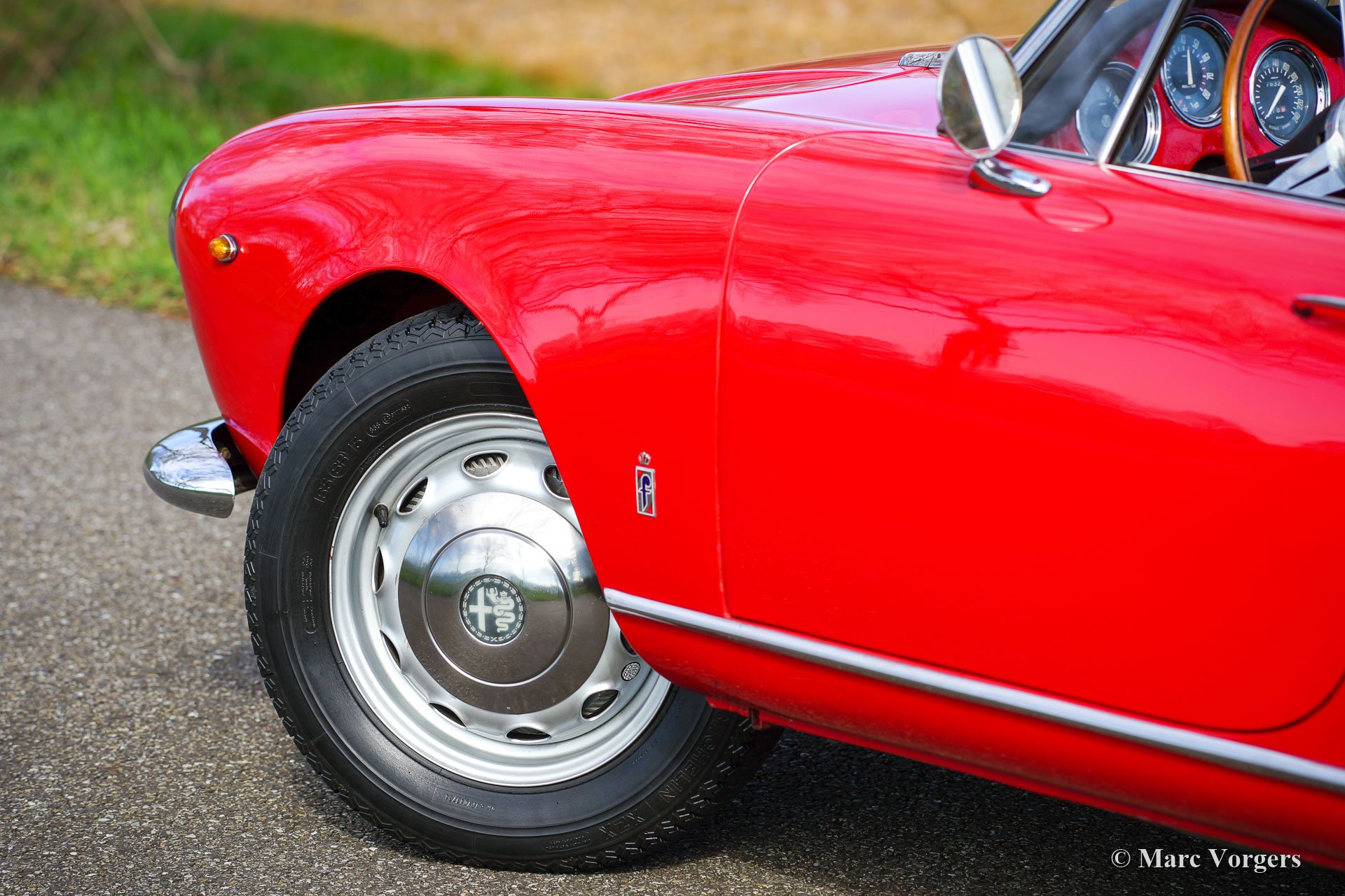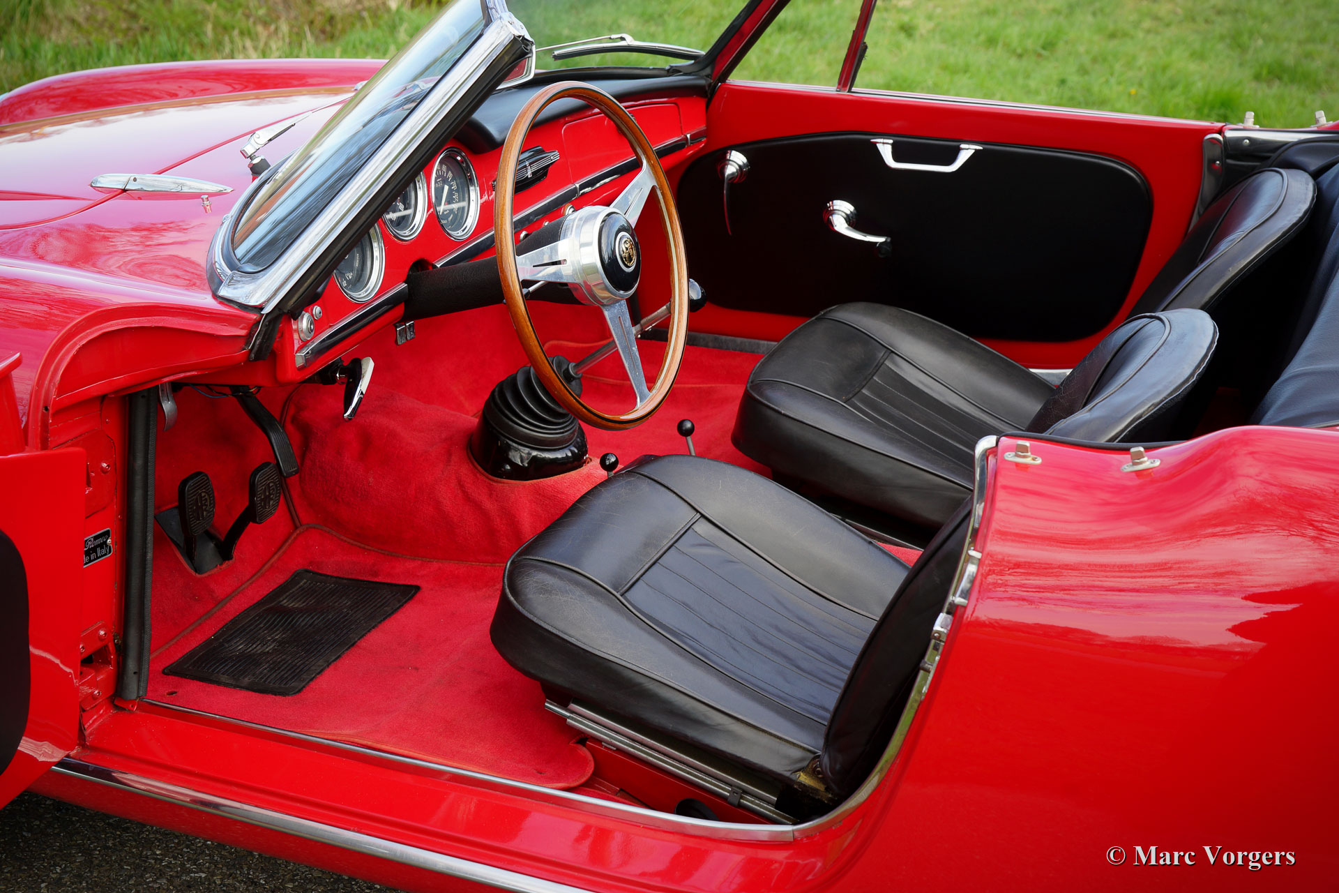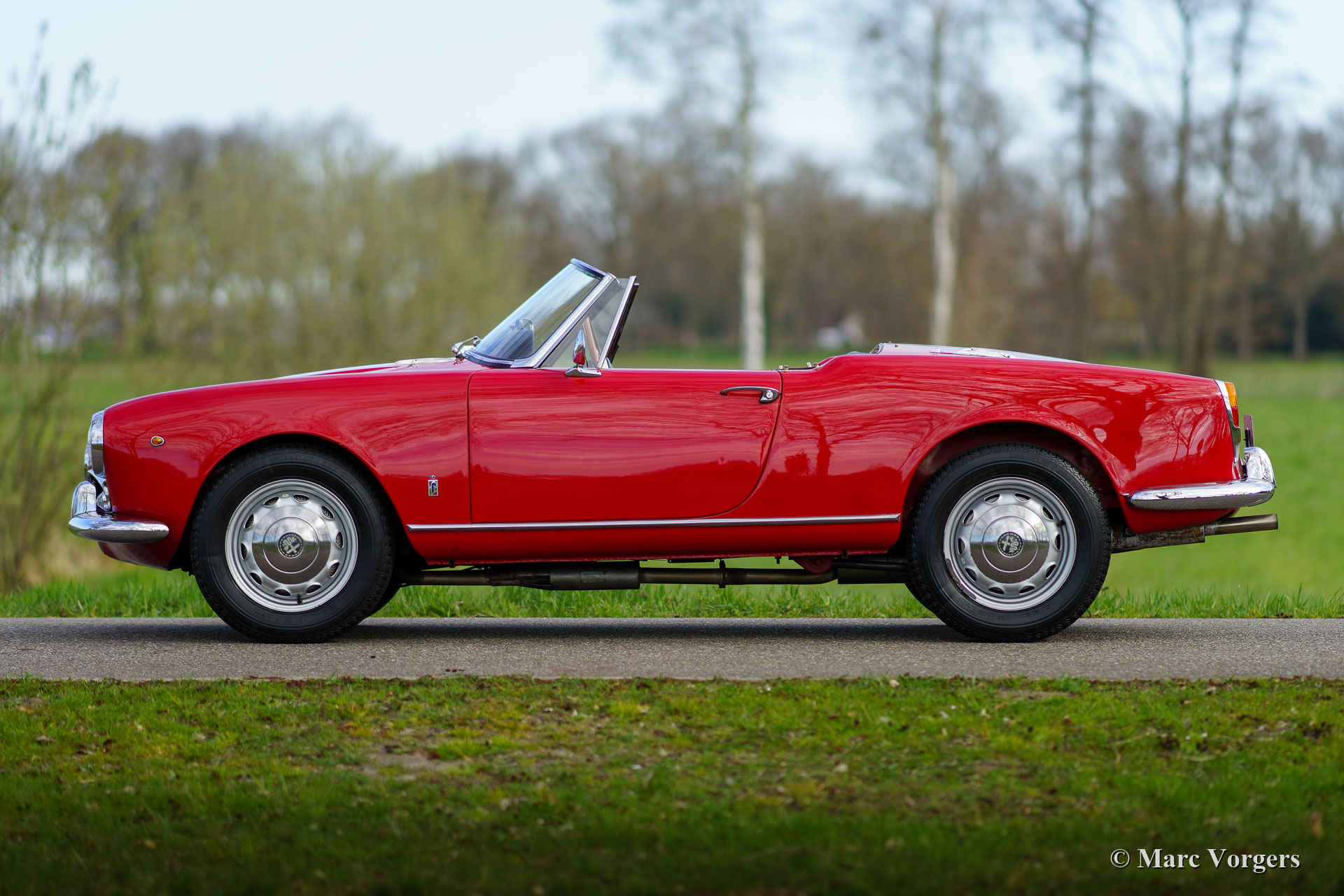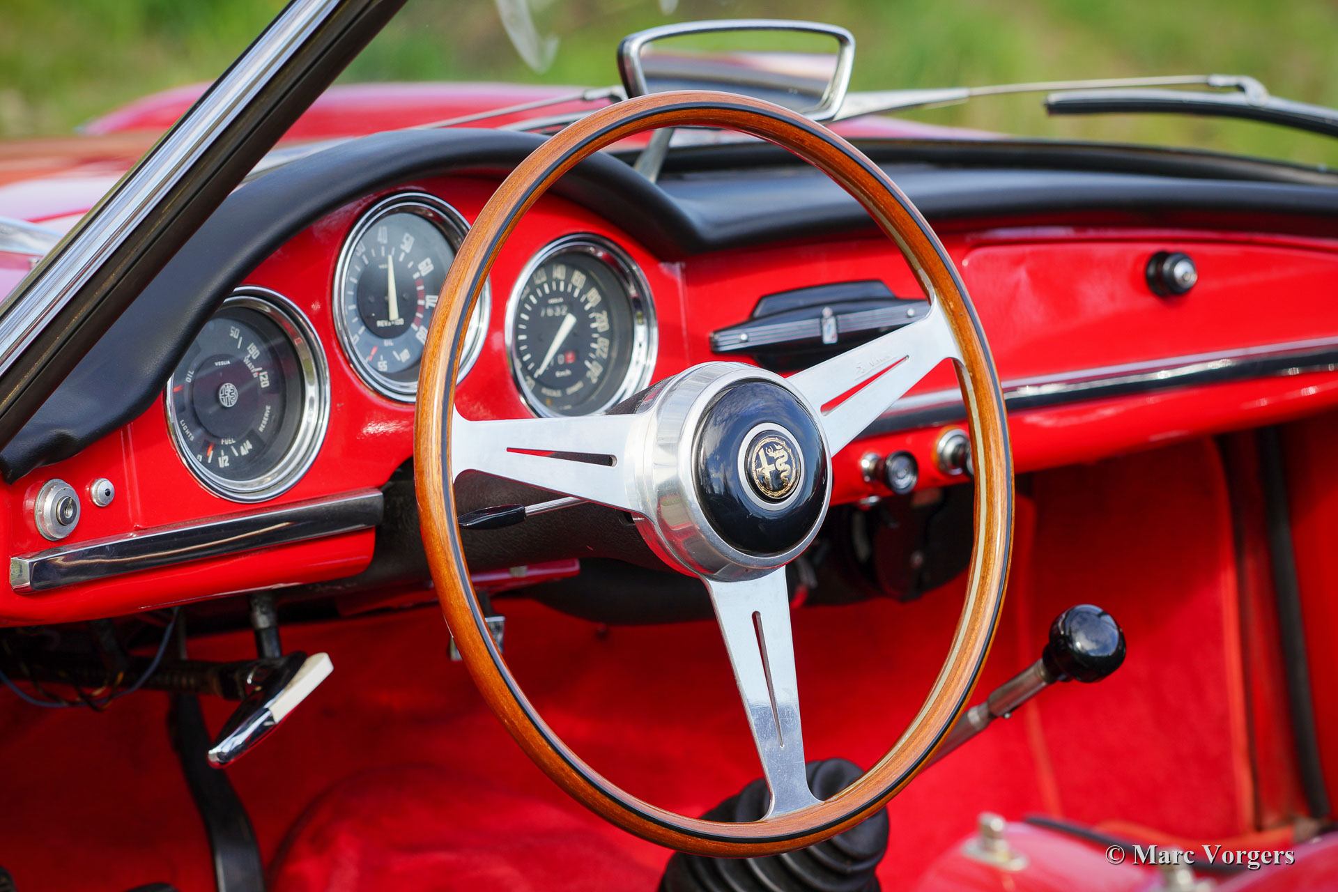 The interior works very roomy to your senses and the typical dashboard and almost non existent front-screen post give a very nice, Mediterranean, convertible feeling...The Giulia spider was built until the year 1965.