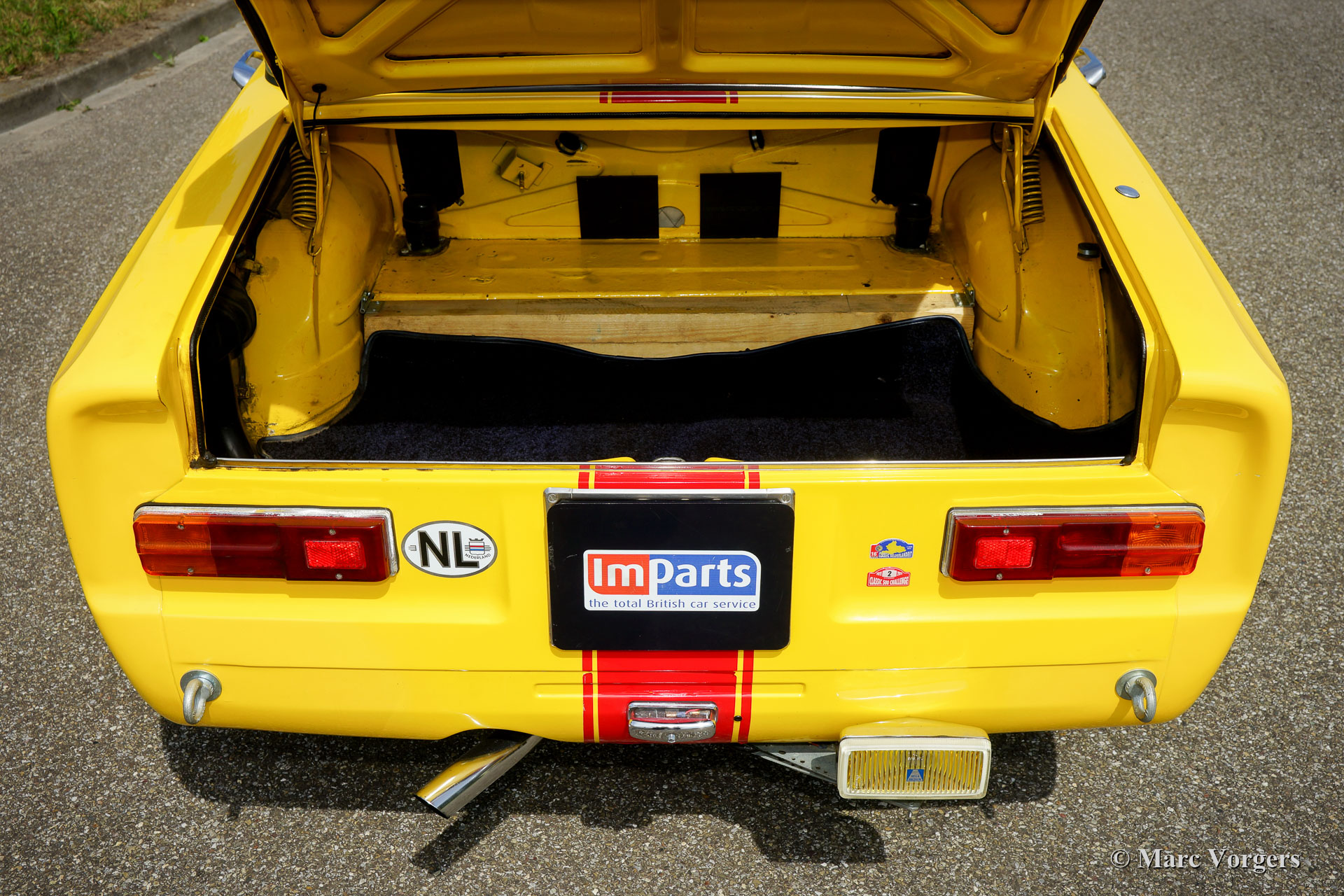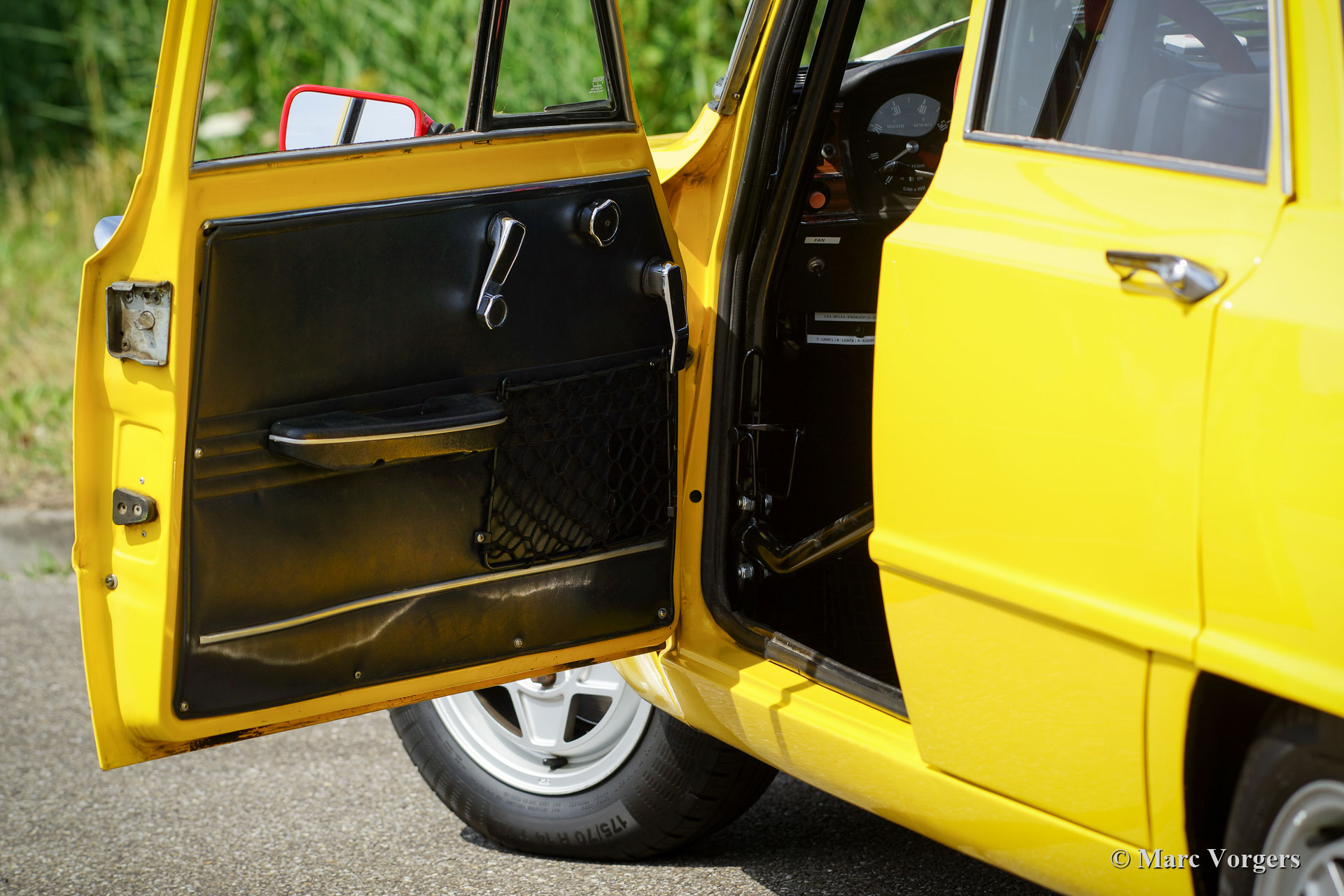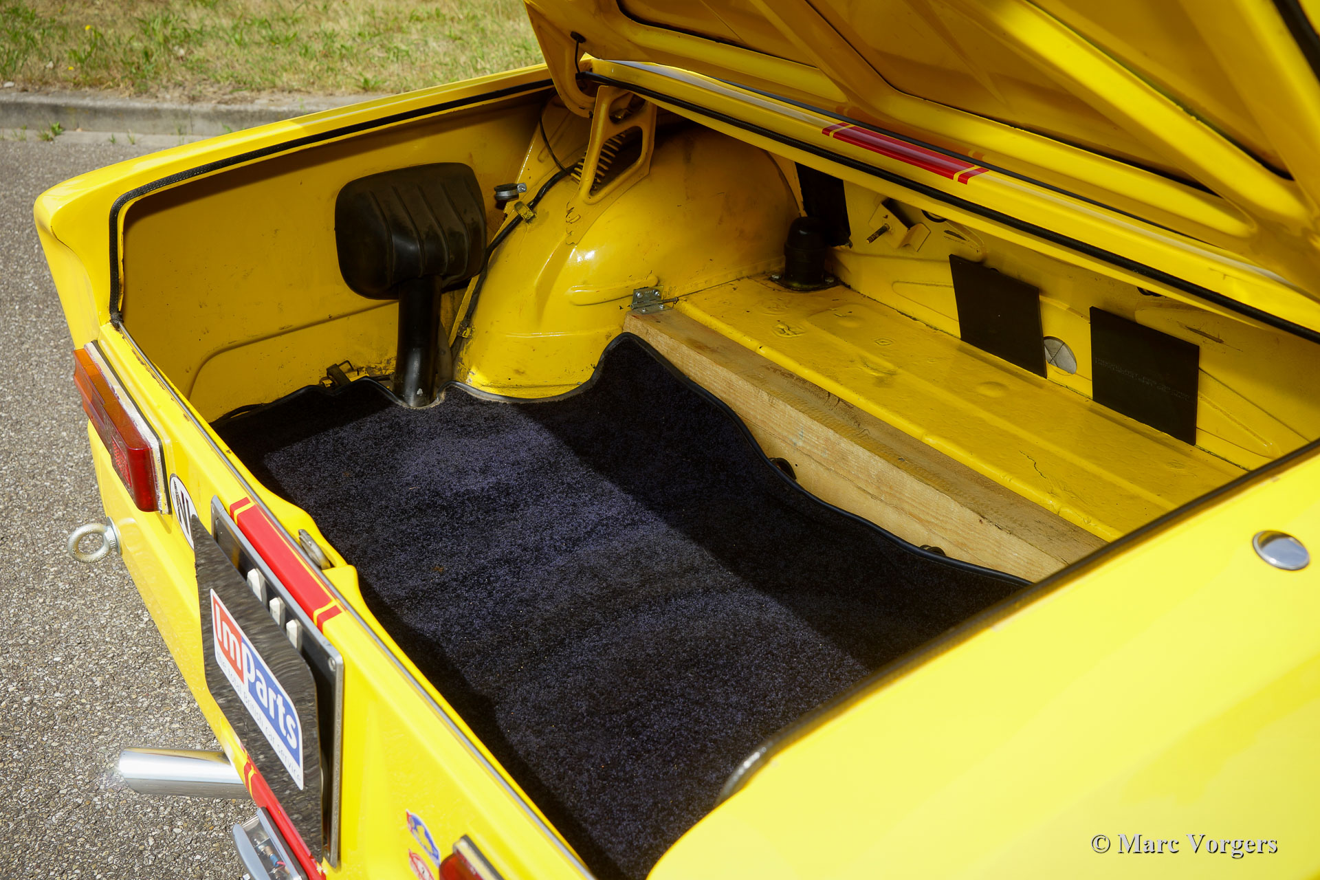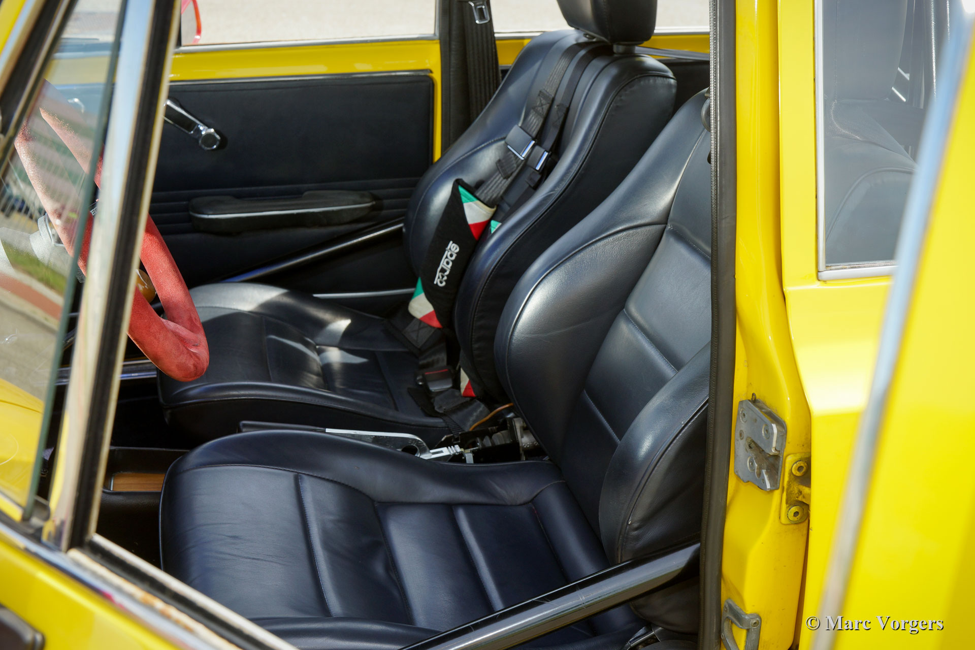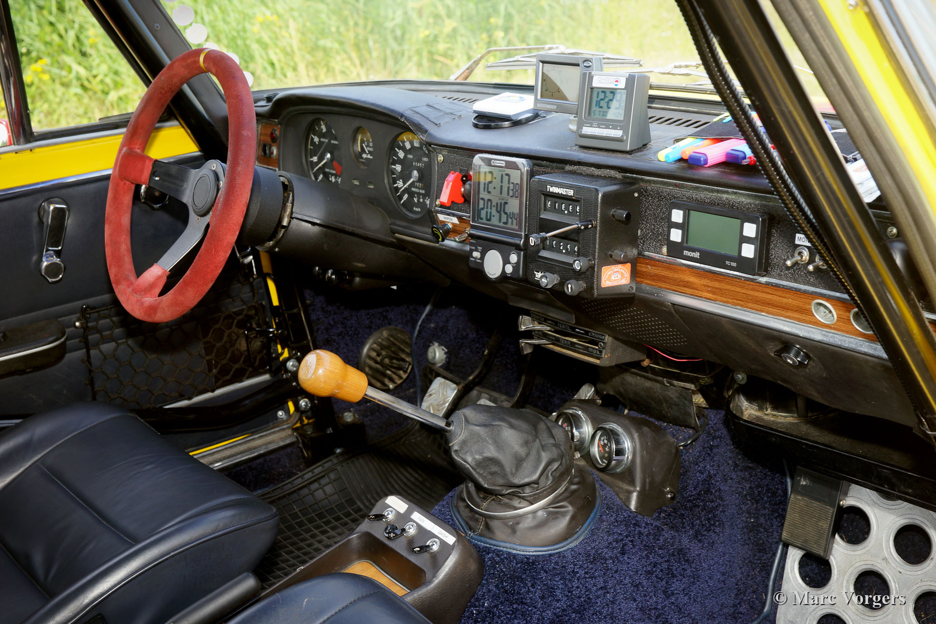 La voiture dispose d'un moteur légèrement accordé de 1962 cc avec des arbres à cames Colombo & Bariani (140 ch et 180 Nm de couple). Le moteur est équipé d'un système d'allumage électronique 123, de bobines d'allumage jumelées (un de secours) et d'un système d'échappement modifié. En outre, la voiture est équipée d'un différentiel à glissement limité, d'une cage de roulement complète de 6 points, de ceintures de sécurité standard et de quatre points de sécurité, d'un frein à main hydraulique avec mécanisme de verrouillage spécial, volant sportif, bouton de démarrage / arrêt sur le tableau de bord , Halda Twinmaster, Twinmaster numérique Monit G100 avec interrupteur à main et à pied, chronomètre numérique Big Digit, compas Wayfinder, lumière de lecture de carte flexible et gradable, 2 prises x 12V sur le tableau de bord, interrupteur d'essuie-glace à pied supplémentaire sur le sol + position d'intervalle, Support pied OMP pour le navigateur, hotte d'air supplémentaire, extincteur de 2 kg et interrupteur principal à l'intérieur. A l’extérieur vous trouverez 2 lampes Cibië sur une barre accessoire en acier inoxydable, une lampe Hella supplémentaire à l'arrière et des pattes de remorquage à l'avant et à l'arrière. Suspension, freins et roues : équipées de jantes alliage Campagnolo de 14 pouces avec pneus Continental (taille 175/70 R14 avec 90% de profil), freins modifiés et améliorés avec plaquettes de freins SBS carbone / céramique, suspension modifiée avec un stabilisateur plus rigide, amortisseurs de choc Bilstein, ressorts hélicoïdaux plus rigides et une protection de carter-huile du moteur. Extra : quatre pneus d'hiver sur jantes originales avec 100% de profil. Des pièces détachées différentes sont présentes comme une carte d'identité FIVA.