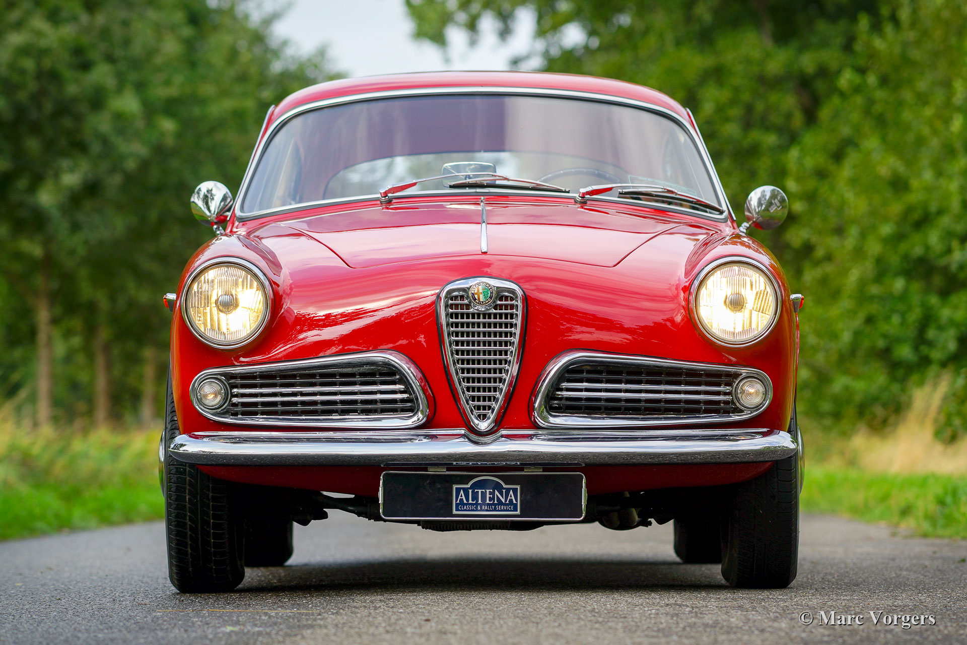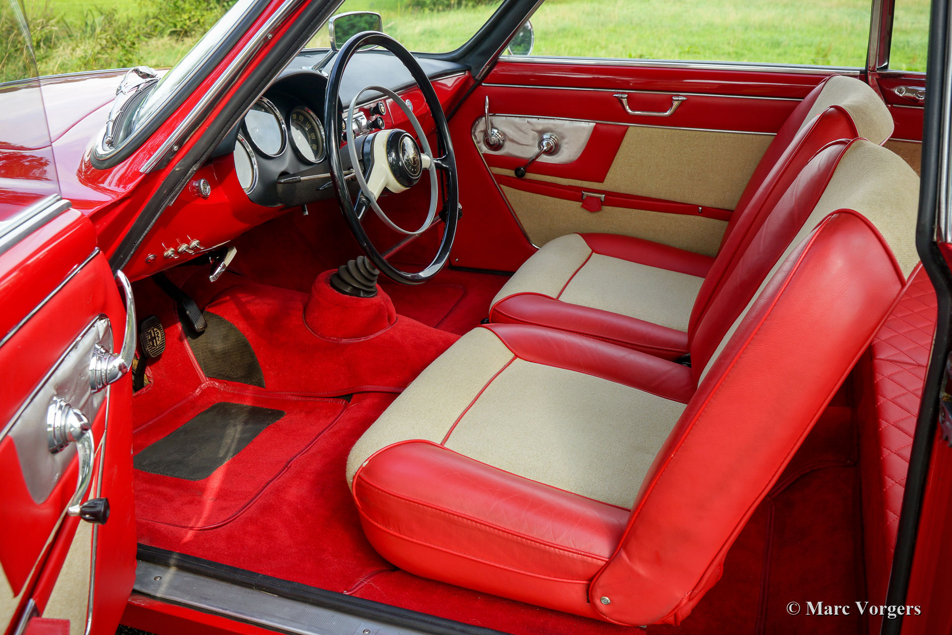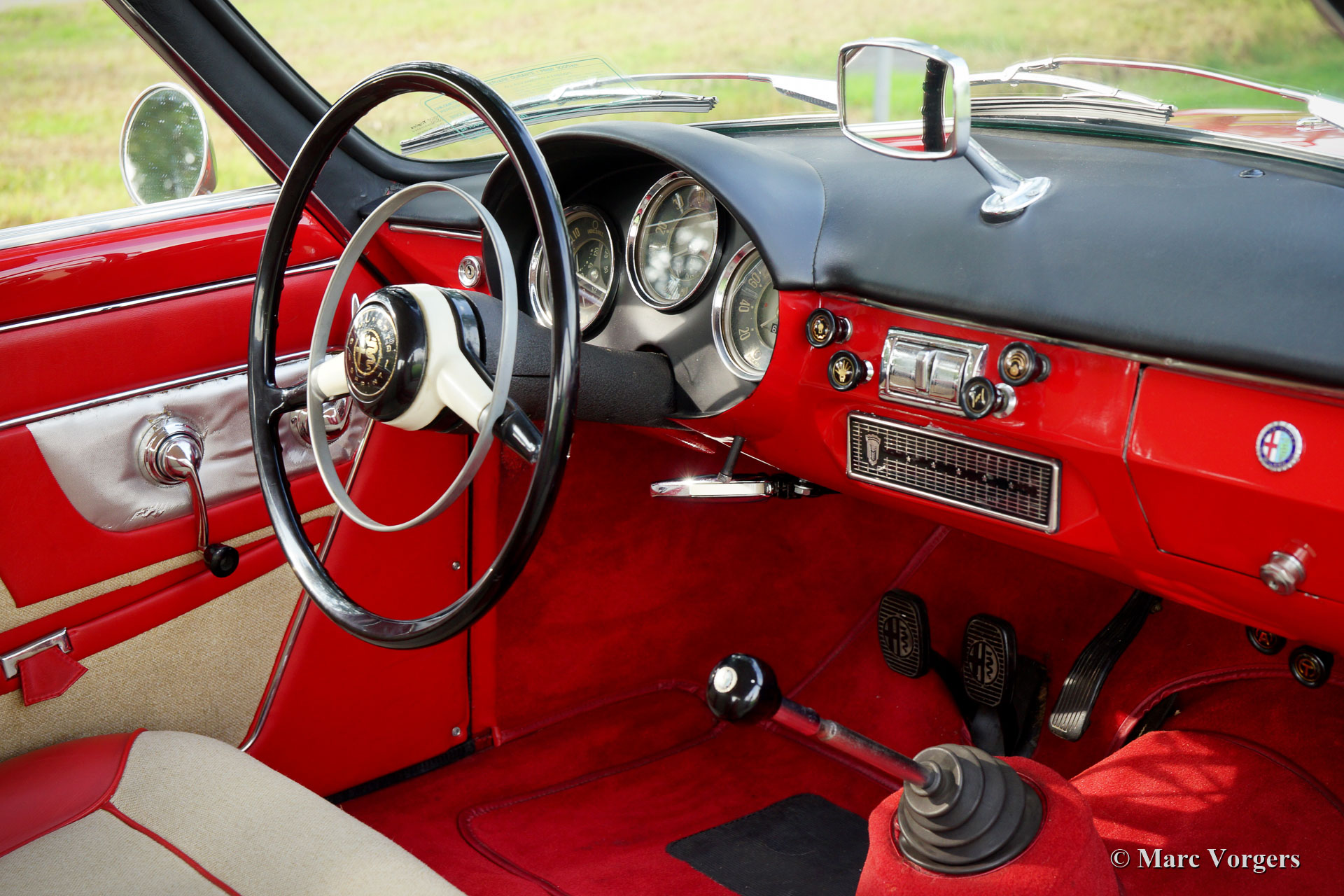 Alfa Romeo Giulietta 1300 Sprint, année 1962. Couleur rouge avec un intérieur rouge / crème. Cette magnifique Alfa Romeo Giulietta Sprint fut restauré détaillée et professionnellement dans les années 1990. Le prix d'achat et le coût total de la restauration ont dépassé les 120 000 vieux florins néerlandais à cette époque ! Un reportage photo de la restauration et de toutes les factures sont présent. Cette Alfa Romeo Giulietta Sprint est en excellent état et la voiture roule parfaitement ! L'historique complet de la voiture est connu et documenté. En 2007, la voiture était équipée d'une boîte de vitesses à 5 rapports dérivée d'une Giulietta SS. De plus, la voiture est équipée d'un allumage électronique et d'un système antidémarrage. Au cours des dernières années, l'automobile fut ponctuellement entretenue dans les ateliers du Altena Classic Service. La voiture est livrée avec les livrets des propriétaires originaux dans leur dossier en cuir d'origine ! Un GT italien très désirable !