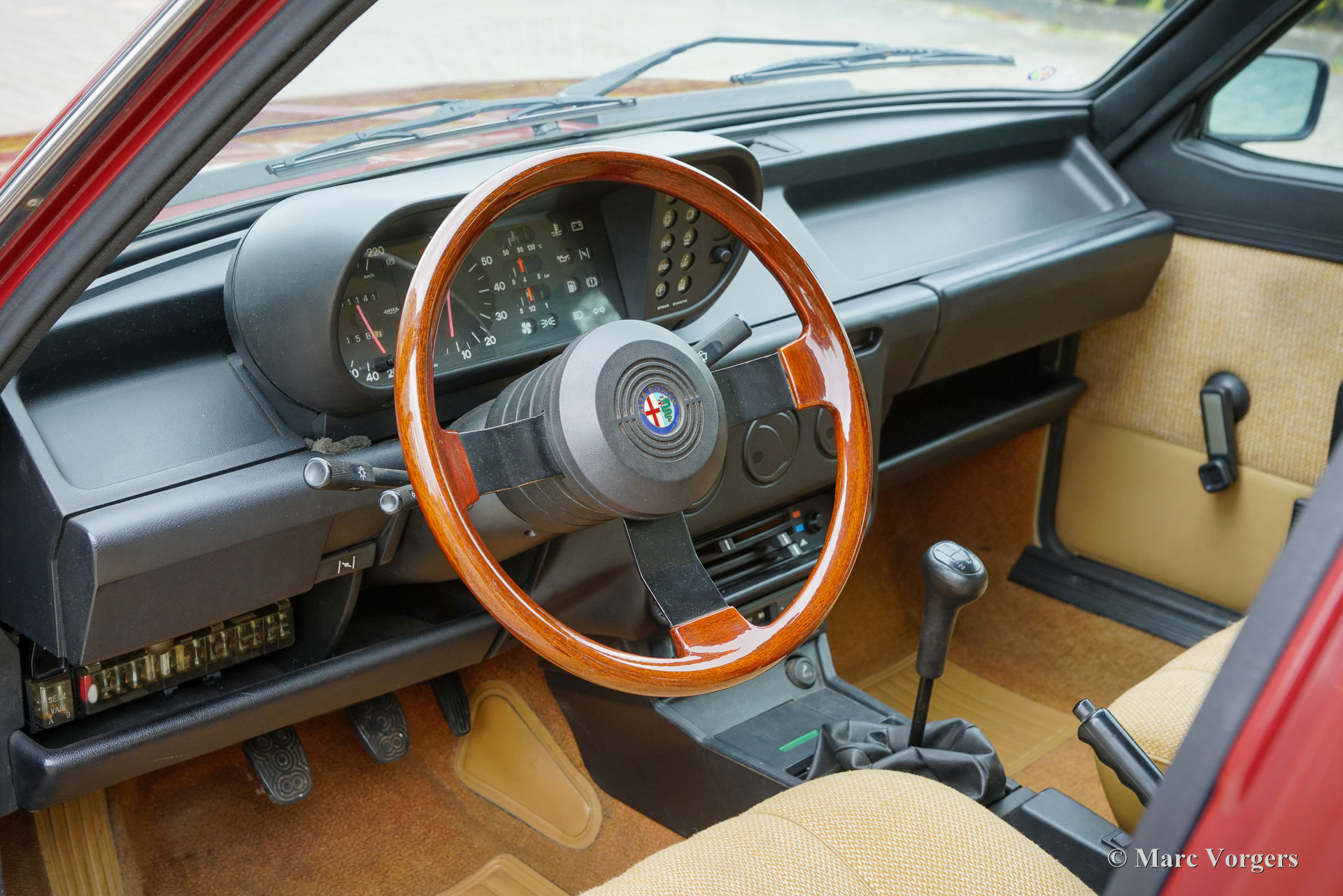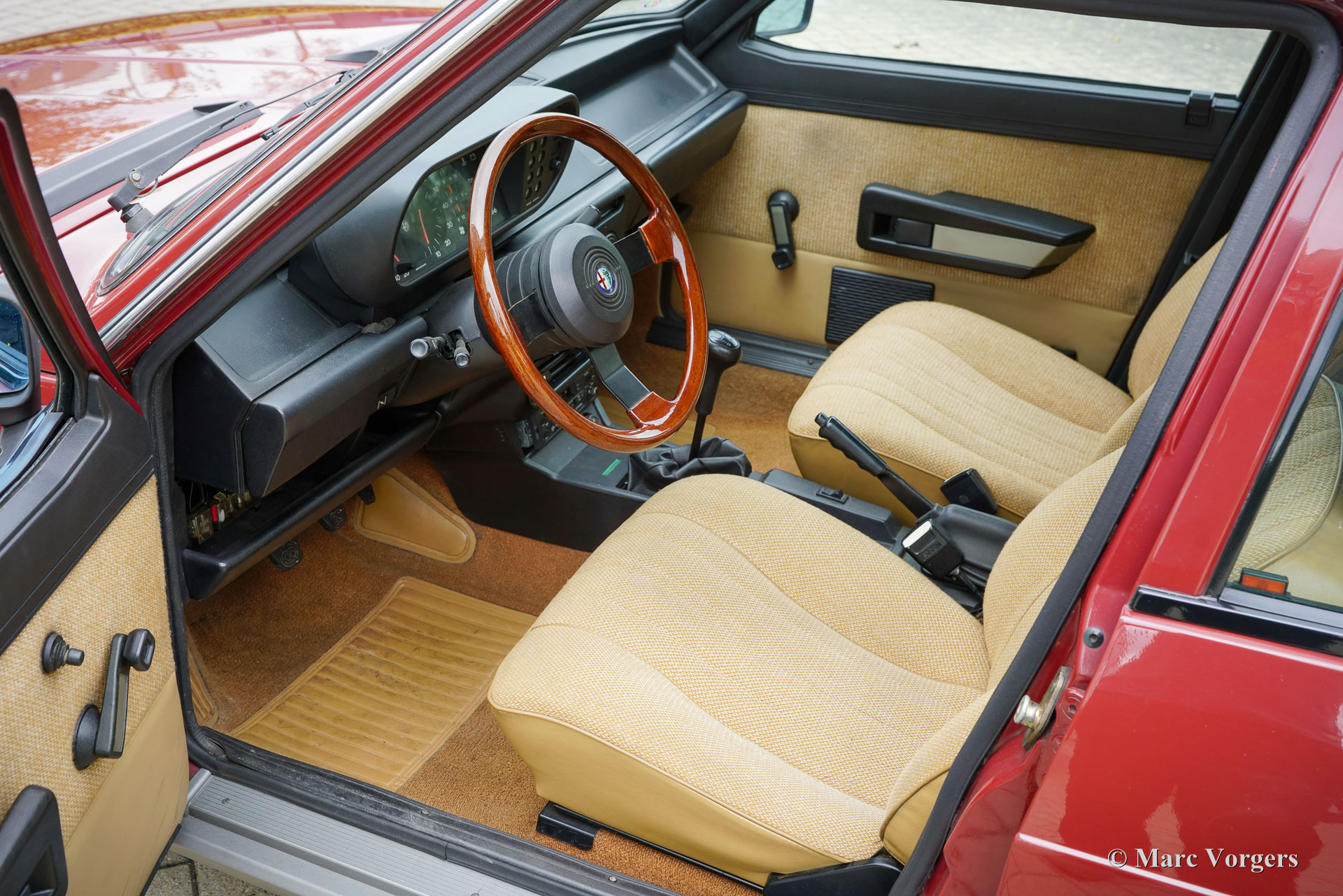 Alfa Romeo Giulietta 1600, année 1984. Première immatriculation le 24 juillet 1984. Numéro de châssis ZAR11650000184154, numéro de moteur AR*01600-398700*. Couleur rouge foncé (Rosso Veneziano, code couleur AR AR 537), associée à un intérieur en tissu beige garni d'une moquette marron clair. Cette belle Alfa Romeo « Nuova » Giulietta fut vendue neuve aux Pays-Bas où la voiture n’a connu que trois propriétaires attentionnés. Depuis l'origine, la voiture a roulé 151 142 km depuis l'origine et la voiture fut très bien entretenue. Cette Giulietta 1600 est dans un état d'origine très bon à excellent ! La carrosserie est tout à fait saine, la peinture est très bonne et l'intérieur ne présente que des signes minimes d'utilisation antérieure. Cette Giulietta est une véritable capsule temporelle ! L'Alfa Romeo « Nuova » Giulietta fut présentée en 1977 pour succéder à la Giulia, qui était alors en production depuis quinze ans. Techniquement, la Giulietta était basée sur l'Alfetta, légèrement plus grande. La Giulietta est une berline sportive, très convoitée par les amateurs de voitures sportives et stylées de l'époque. Avec un moteur à double arbre à cames, des freins à disque, une boîte de vitesses « transaxle » à 5 vitesses installée juste devant la suspension arrière donnant une répartition du poids proche de 50-50 et l'essieu arrière De-Dion, la Giulietta a une configuration de voiture de sport. Cet exemple est une trouvaille formidable pour le collectionneur et passionné d'Alfa Romeo, la voiture montre tous les détails d'origine et elle roule parfaitement.