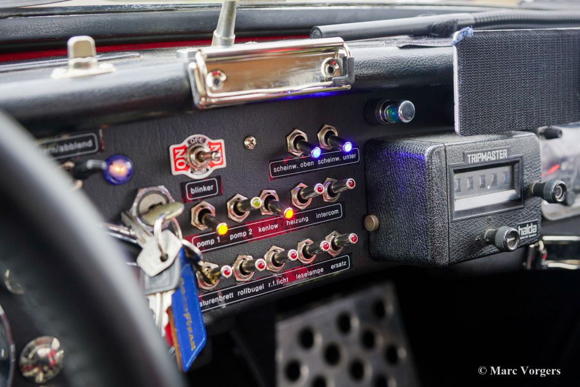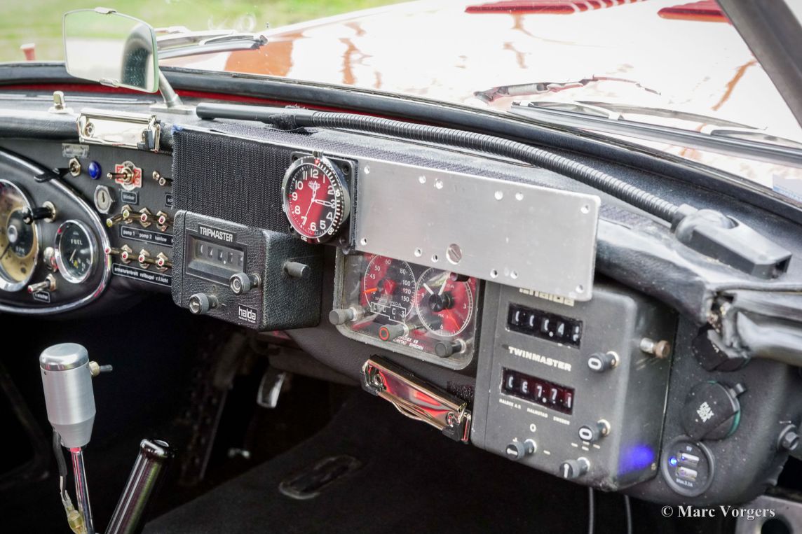Austin Healey 100/6, année 1958. Couleur rouge avec un toit rigide blanc crème et un intérieur rallye noir/anthracite. Cette fantastique voiture de rallye Austin Healey fut entièrement et magnifiquement préparée pour le rallye par un spécialiste aux Pays-Bas. Les coûts et les efforts n'ont pas été épargnés pour créer une voiture de rallye idéale. Le moteur fut amélioré en interne, trois carburateurs furent installés, la suspension fut améliorée, le système électrique fut amélioré, des instruments de navigation furent installés, une multitude de feux de projecteur et de virage furent ajoutés à l'avant et un feu de recul à l'arrière. De plus, des roues Minilite peintes en noir sont installées et des pneus Vredestein Sprint Classic. L'Austin Healey a toujours été une voiture de course et de rallye compétitive. Ce magnifique exemplaire est très puissant, sonne superbement grâce à l'échappement latéral spécial et roule de manière impressionnante. Le nouveau propriétaire sera impressionné par les qualités sportives de cette voiture de rallye « Big Healey ». L'automobile est dans un très bon état et la voiture est prête à être appréciée par un pilote (de rallye) et un navigateur passionné. Cette voiture de rallye Austin Healey peut être engagée dans toutes les épreuves européennes de régularité (rallye) appropriées.