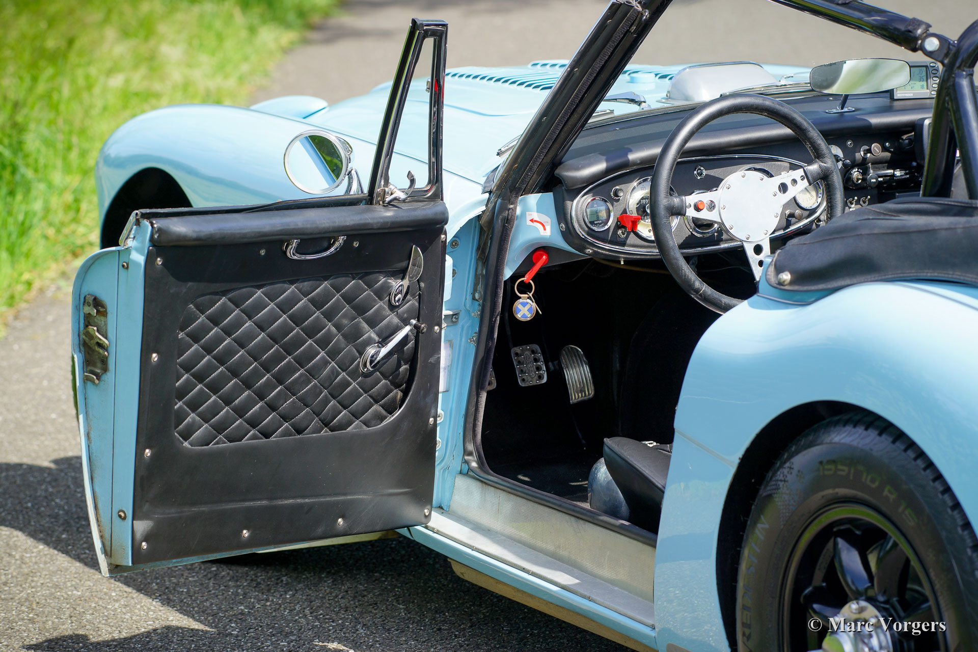 The former Healey models were more Spartan and featured fully detachable soft tops with separate side screens which could be stowed away in the booth.