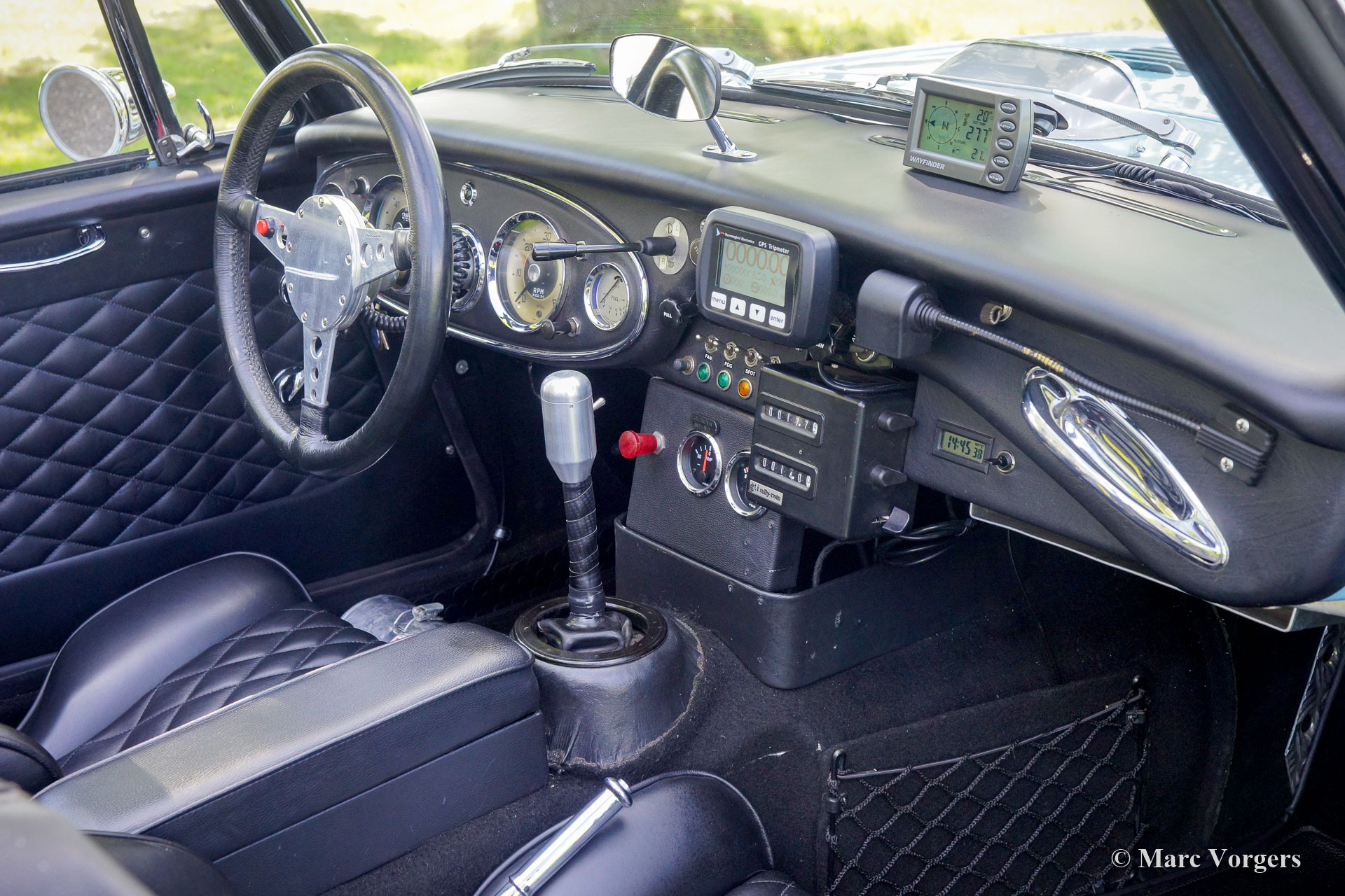 La voiture est (entre autres) équipée des options, modifications et améliorations suivantes : Un châssis et une carrosserie entièrement renforcés, un arceau de sécurité à quatre montants de grade A, un couvercle de coffre spécial, des persiennes de refroidissement dans les ailes avant et dans le capot, quatre lampes supplémentaires à longue portée et antibrouillard à l'avant, des instruments de rallye et une liseuse carte sur le tableau de bord, échappement latéral spécialement fabriqué (donnant une bande sonore fantastique!), sièges en cuir spéciaux, harnais de sécurité à quatre points, jantes en alliage d’aluminium laqué noir, pneus Vredestein à forte adhérence, faisceau de câblage modifié, suspension améliorée et renforcée (coussinets en polyuréthane), moteur réglé (van Giersbergen, Pays-Bas), système de refroidissement amélioré, ventilateur électrique, grand réservoir à essence en aluminium, système de freinage à double circuit, supports de moteur pour poids lourds, tubulure d'admission modifiée , collecteur d’échappement à écoulement libre, système d’extinction d’incendie, etc. C’est une voiture de rallye très désirable et spectaculaire Austin Healey 3000 !