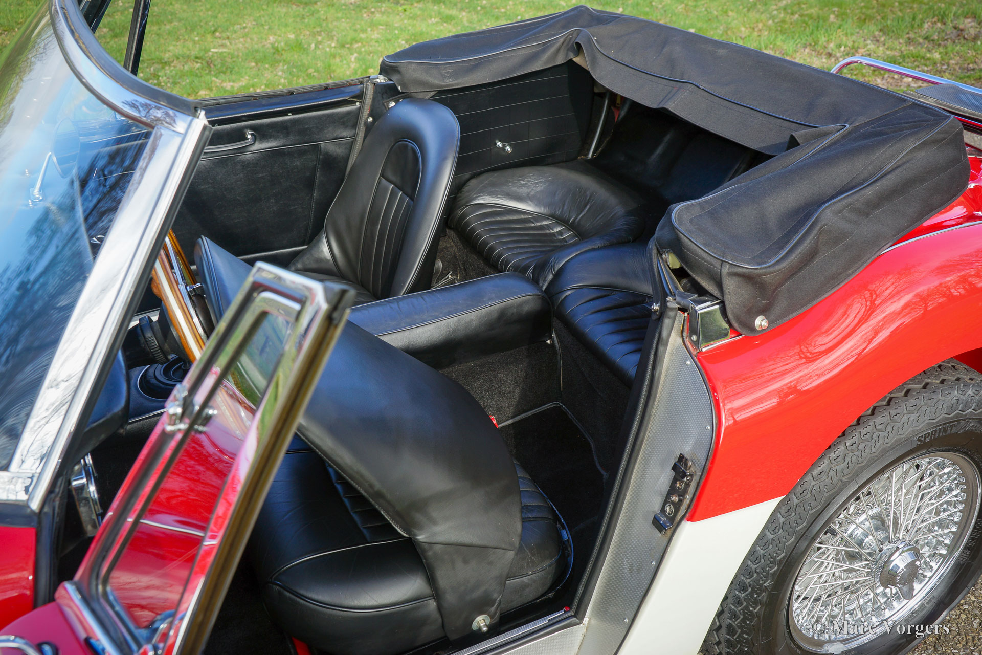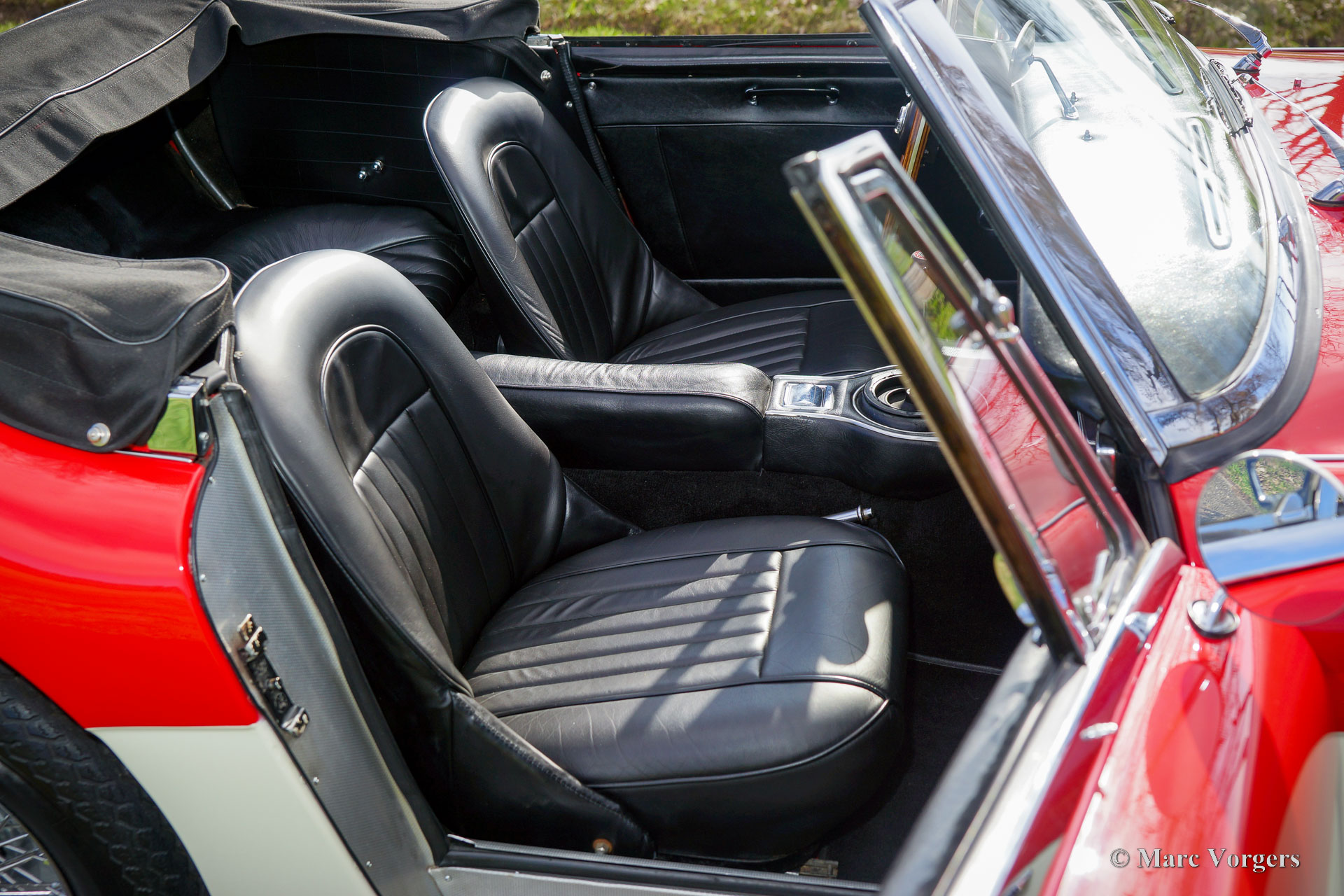 The former Healey models were more Spartan and featured fully detachable soft tops with separate side screens which could be stowed away in the booth.