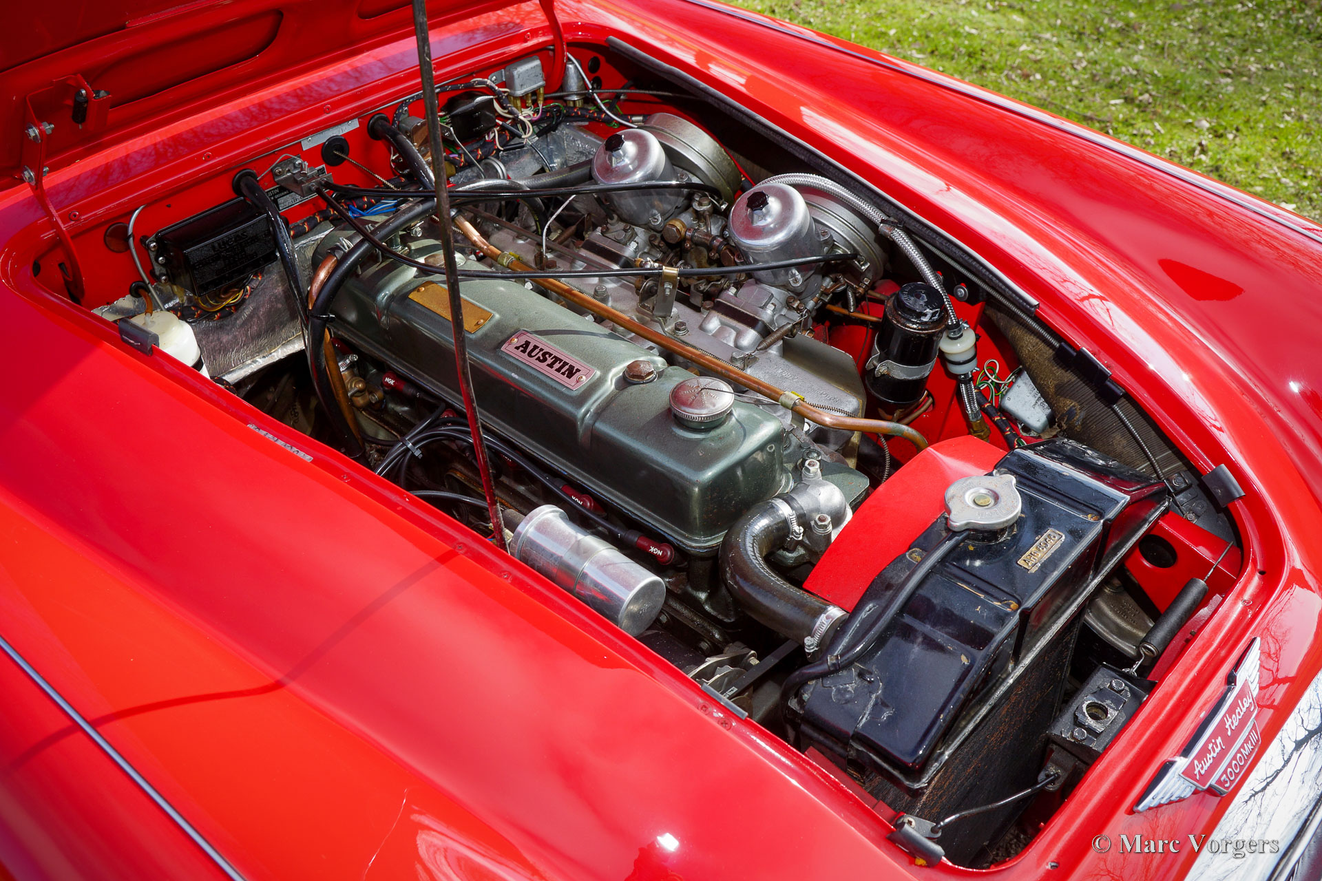 3000 is also known as the "Big Healey". The 3000 is a evolution of the 100/6 model. The engine was given a larger cylinder capacity of 2912 cc. and the 3000 was fitted with disc brakes at the front wheels. This first Austin Healey 3000 is currently known as the 3000 MK I model.