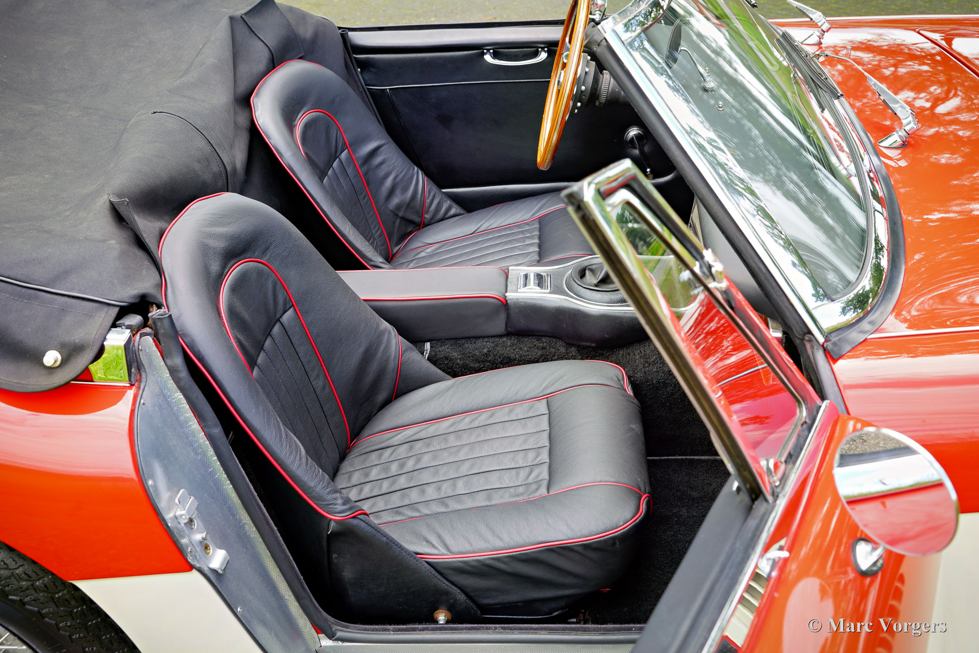 The former Healey models were more Spartan and featured fully detachable soft tops with separate side screens which could be stowed away in the booth.
