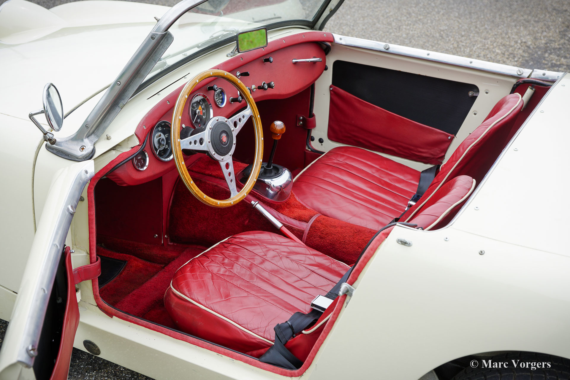 The former Healey models were more Spartan and featured fully detachable soft tops with separate side screens which could be stowed away in the booth.