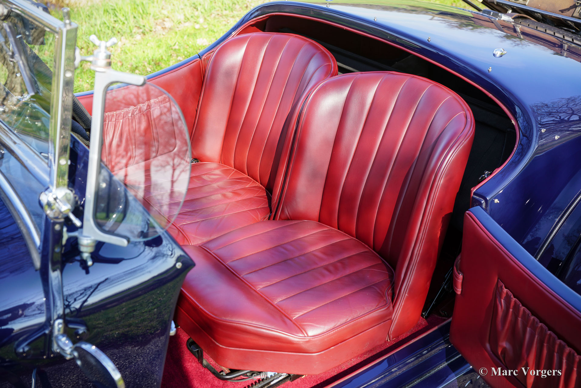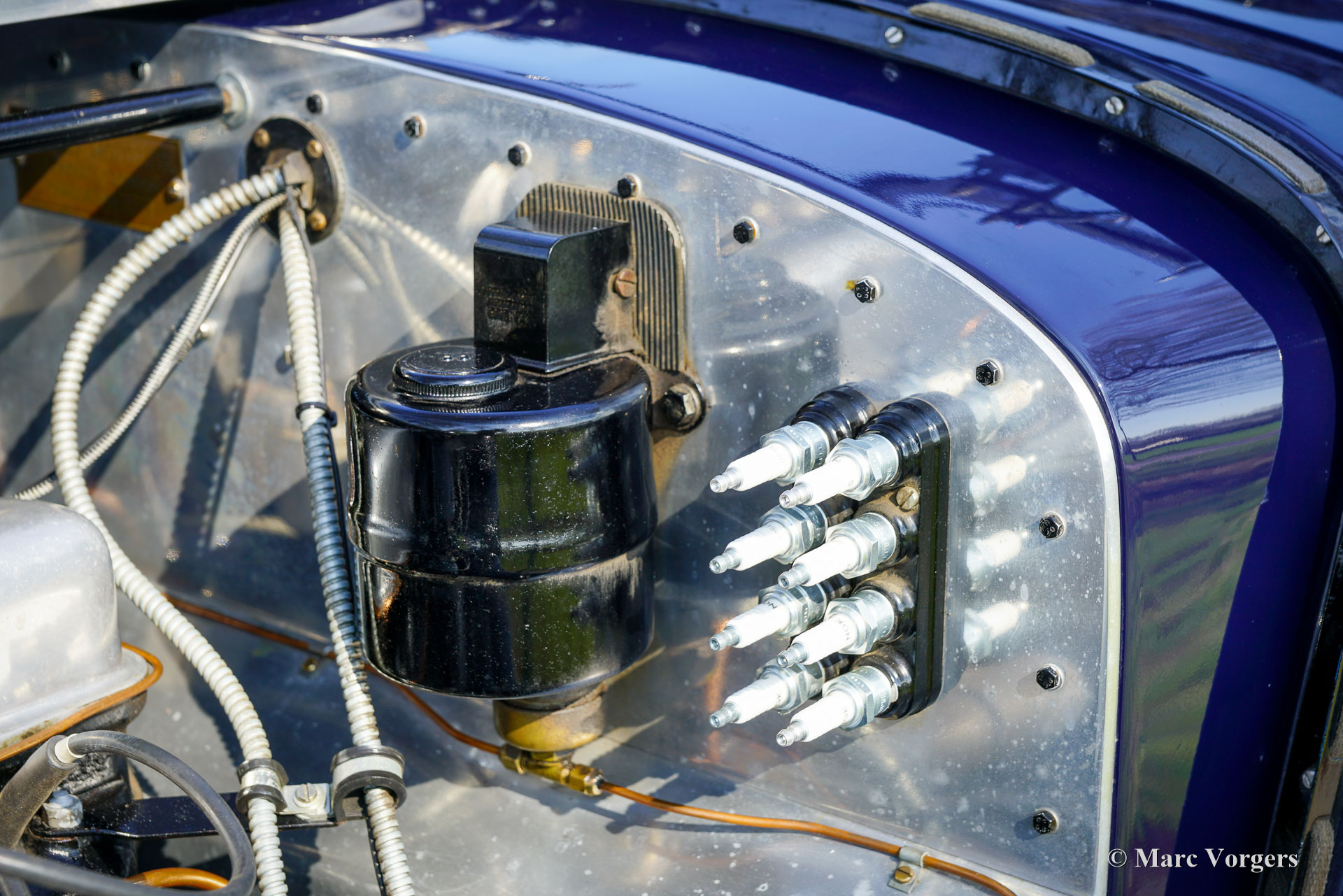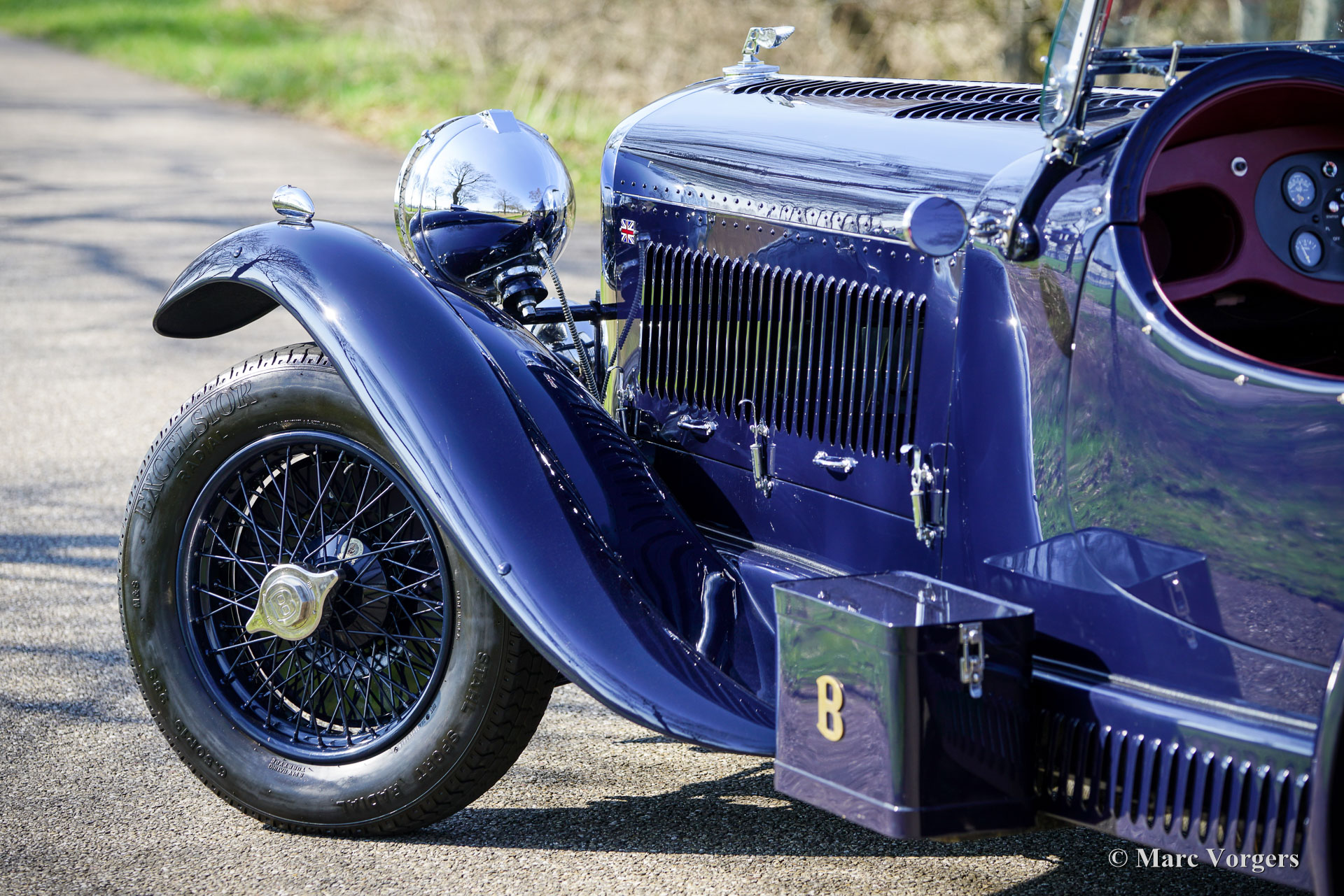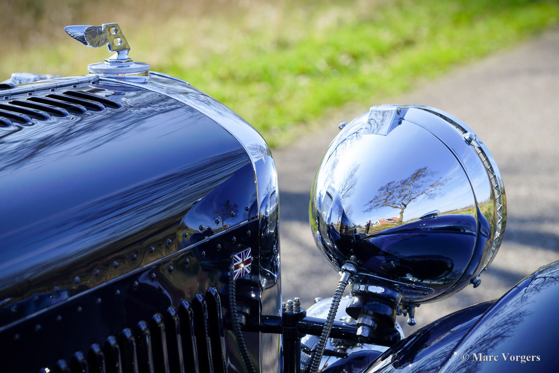 The Bentley 3 Litre was W.O. Bentley’s first design. The car was presented in 1919 but the first cars were sold in 1921. The four cylinder cars of rugged construction where in a class of their own for they combined the size and comfort of the big tourers and saloons with the road holding, and speed of the smaller sports- and racing cars. The Bentley was a true owner-driver car for the sporting motorist and connoisseur. The Bentley car could be had in three different types which were designated with three different radiator badges*. Red badge: short chassis speed model, Blue badge: the early short and then long chassis type for bespoke bodywork, Green badge: very rare and used for about eighteen 100 mph. These Green badge car won at Le Mans in 1924 and 1927 (Old Number Seven.) The 3-Litre was built from 1919 until 1929.