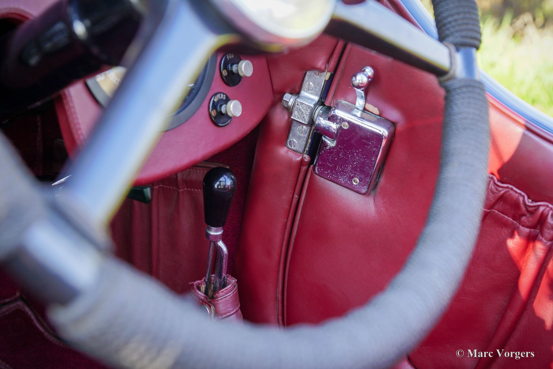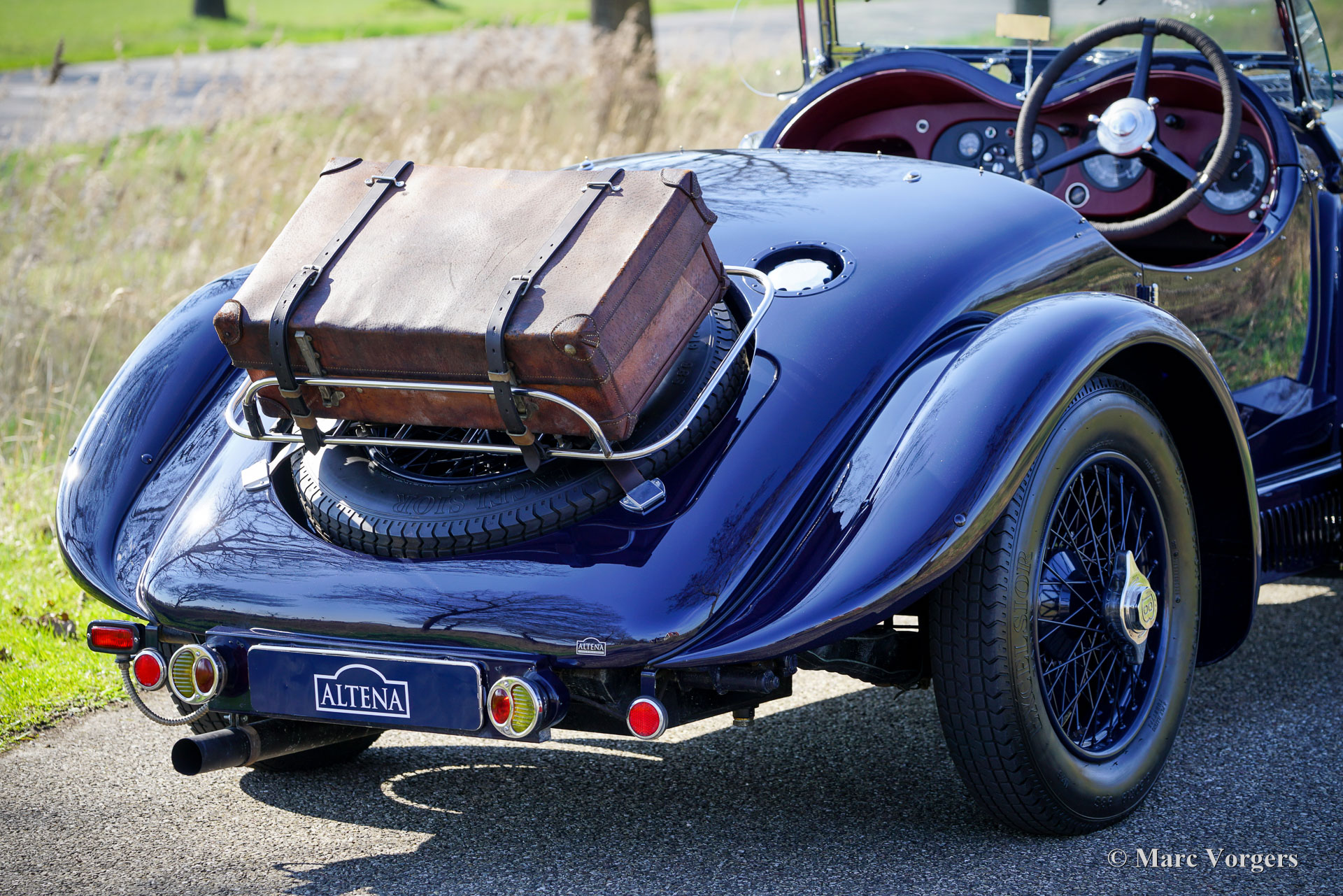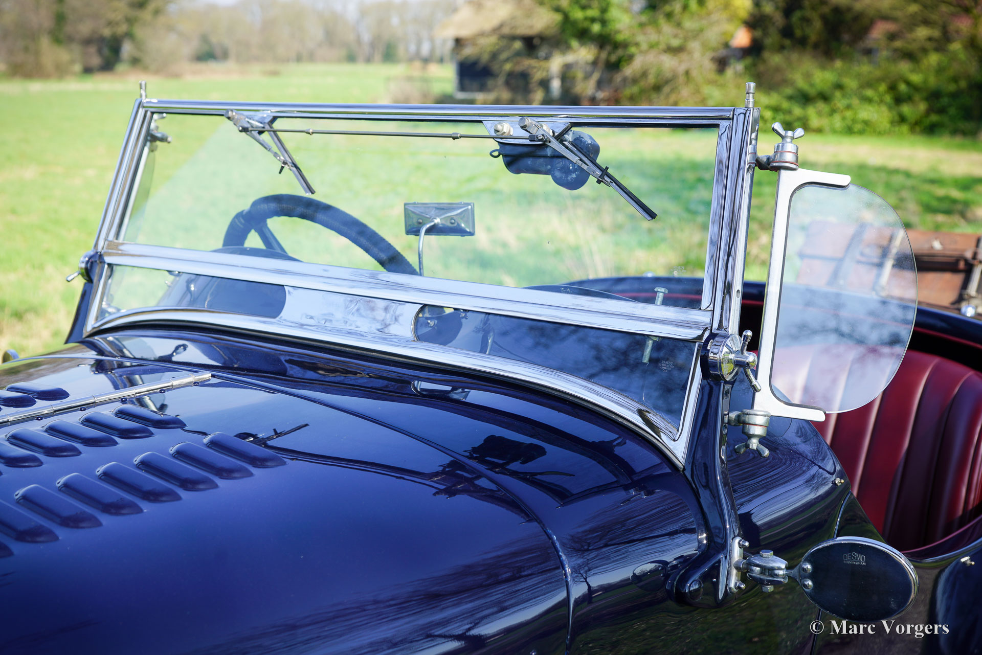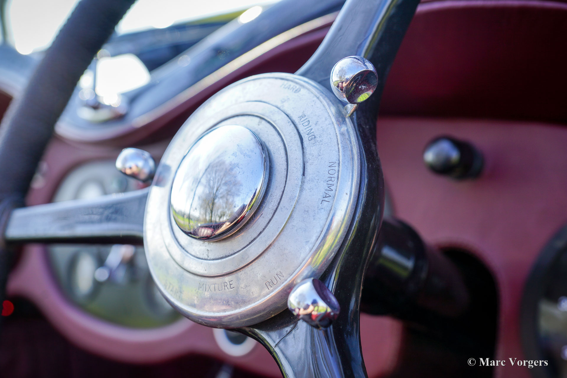 The Bentley 3 Litre was W.O. Bentley’s first design. The car was presented in 1919 but the first cars were sold in 1921. The four cylinder cars of rugged construction where in a class of their own for they combined the size and comfort of the big tourers and saloons with the road holding, and speed of the smaller sports- and racing cars. The Bentley was a true owner-driver car for the sporting motorist and connoisseur. The Bentley car could be had in three different types which were designated with three different radiator badges*. Red badge: short chassis speed model, Blue badge: the early short and then long chassis type for bespoke bodywork, Green badge: very rare and used for about eighteen 100 mph. These Green badge car won at Le Mans in 1924 and 1927 (Old Number Seven.) The 3-Litre was built from 1919 until 1929.