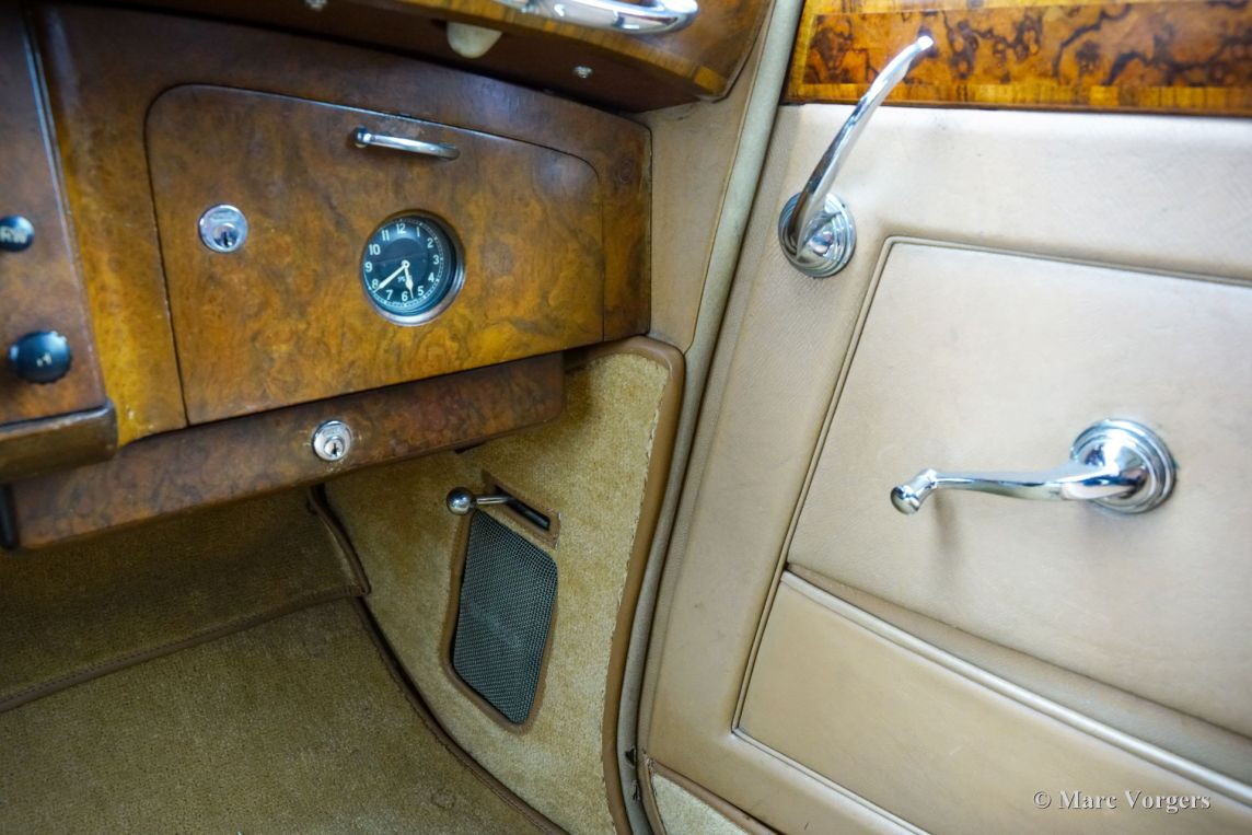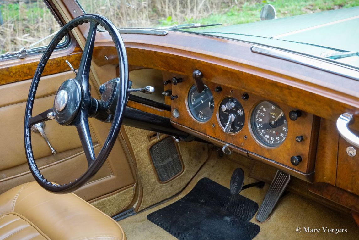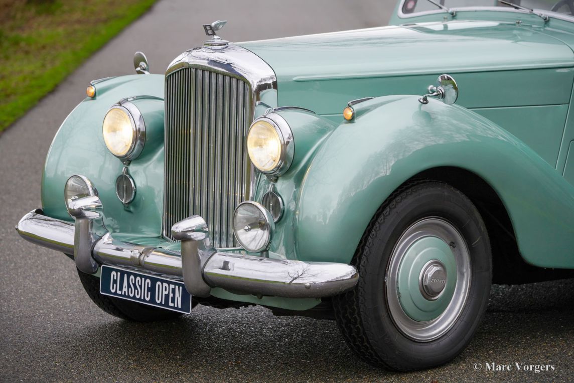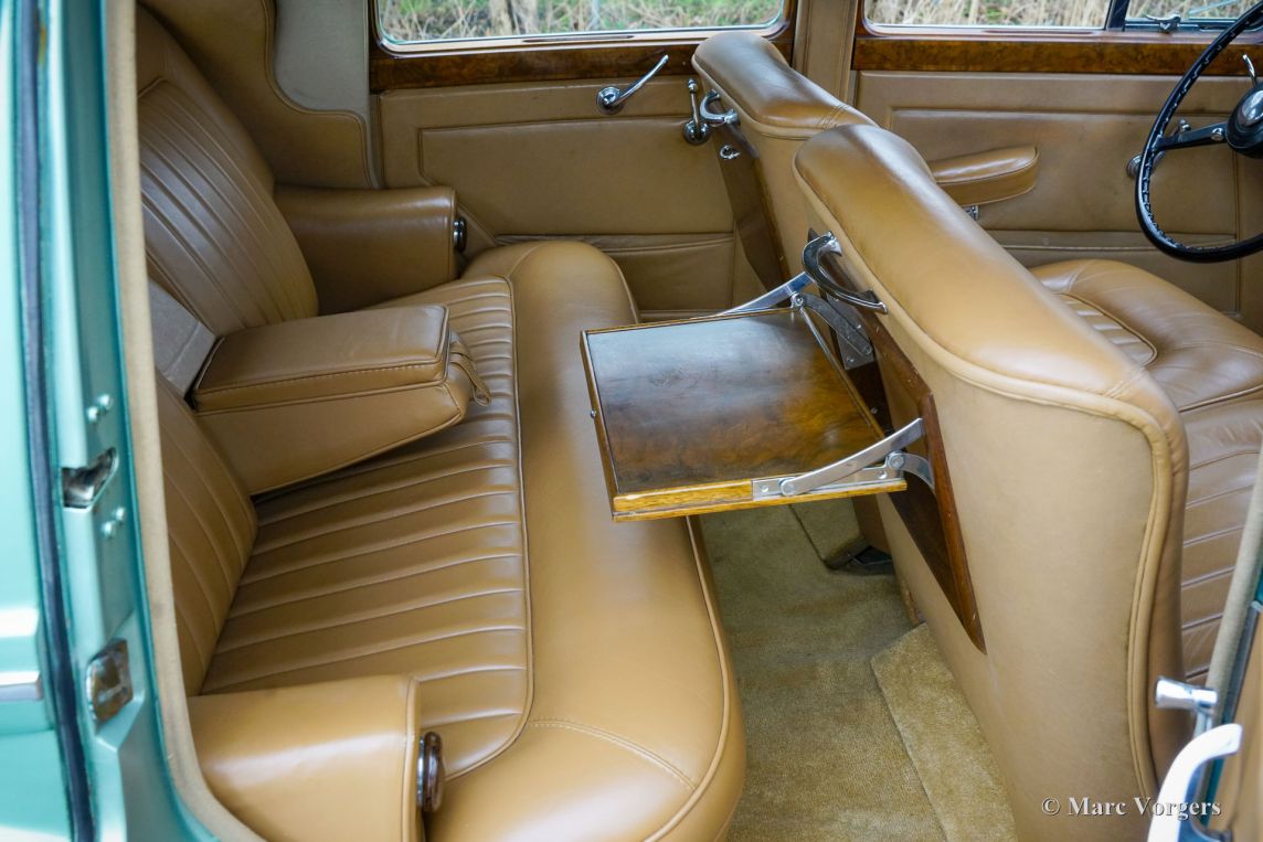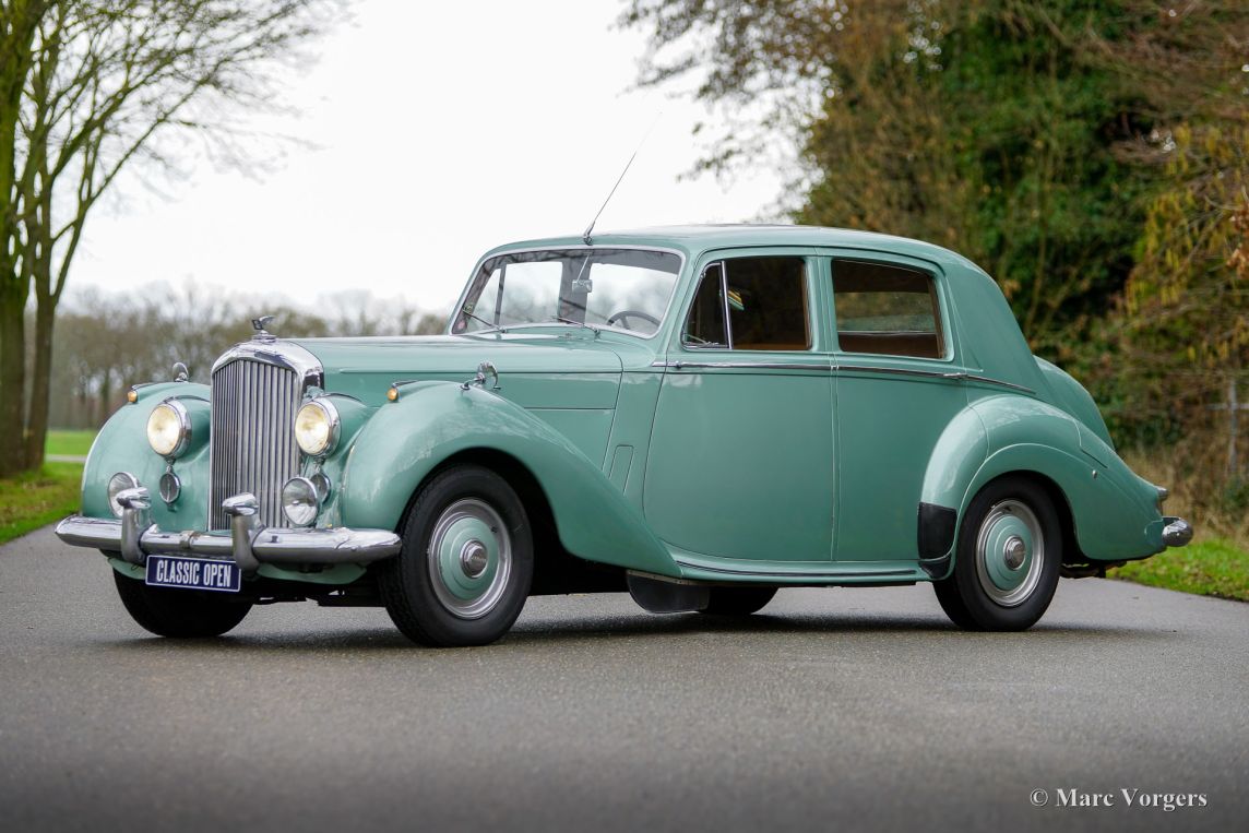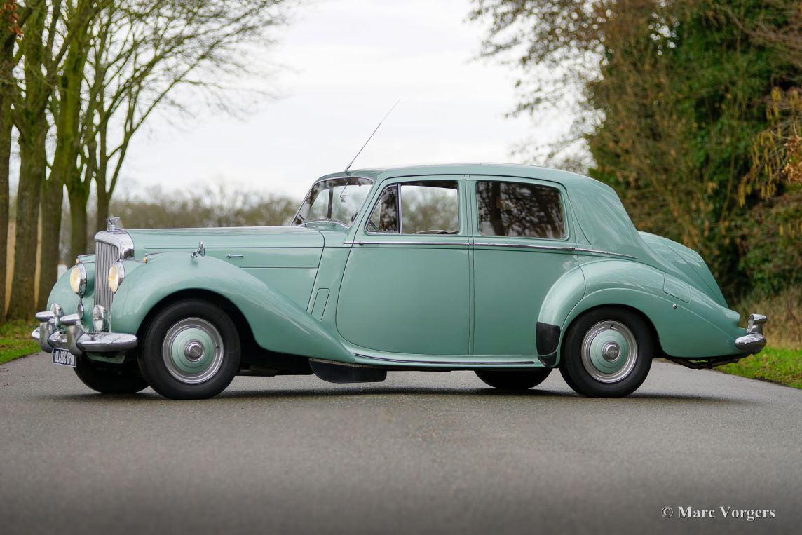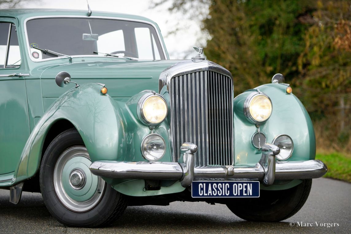 Bentley R-Type, année 1953. Numéro de châssis B-23LSP, numéro de moteur B-261-S. Couleur extérieure vert pâle métallisé (Pacific Green) associée à un intérieur en cuir beige. En février 1953, cette magnifique Bentley R-Type fut vendue neuve aux États-Unis, où elle fut choyée par quatre propriétaires successifs jusqu'en 2017. Elle fut ensuite exportée aux Pays-Bas, où elle a appartenu à un seul propriétaire depuis lors. Cette Bentley R-Type est dans un état d'origine exceptionnel. Elle présente tous ses détails d'origine et sa carrosserie a été repeinte dans sa couleur d'origine aux États-Unis. Soigneusement entretenue, elle offre une conduite et une tenue de route irréprochables, et sa boîte de vitesses automatique fonctionne parfaitement. Son moteur six cylindres en ligne de 4,6 litres tourne avec une grande douceur et développe une puissance suffisante pour propulser la R-Type à des vitesses impressionnantes. L'intérieur en cuir est luxueux et raffiné, évoquant l'atmosphère feutrée d'un club anglais huppé. La Bentley Type R succède à la Mk VI (6). Lors de son développement, Bentley l'a désignée en interne « Mark VII » (7), mais une fois la série de châssis finalisée, la marque a adopté l'appellation « Type R », basée sur la nouvelle numérotation des châssis avec le préfixe RT. Ce modèle est doté d'une carrosserie berline Standard Steel en très bon état ! Le châssis est également impeccable et exempt de rouille. Cette Bentley est équipée de pare-chocs Pyrene spécifiques et de phares additionnels Lucas SLR700. Saisissez cette opportunité unique d'acquérir une magnifique Bentley Type R avec conduite à gauche ! Ce véhicule d'origine exceptionnelle peut être exporté et immatriculé dans le monde entier.