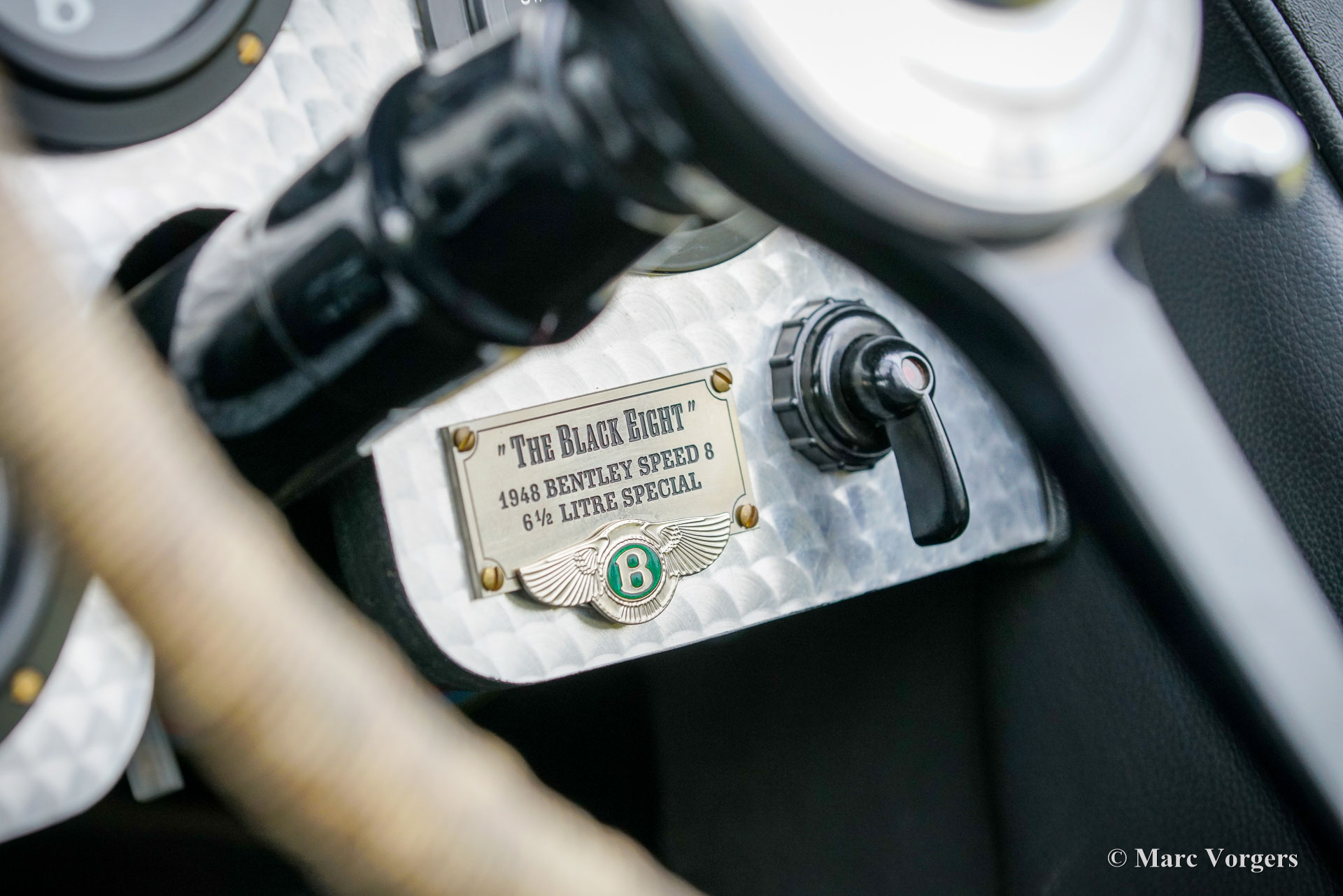 The coachwork of the Speed 8 follows the construction of the original Le Mans cars with an ash frame panelled with aluminium and fabric covered to the chosen colour of the car. A new aluminium instrument panel is fitted incorporating high quality reproductions of the original instruments. The interior is finished in Connelly leather and leather bound carpets. The fold flat windscreen has aero screens of the type that can be used in the normal scuttle position or as draught deflectors alongside the windscreen. It is fitted with hood tonneau cover and hood bag.