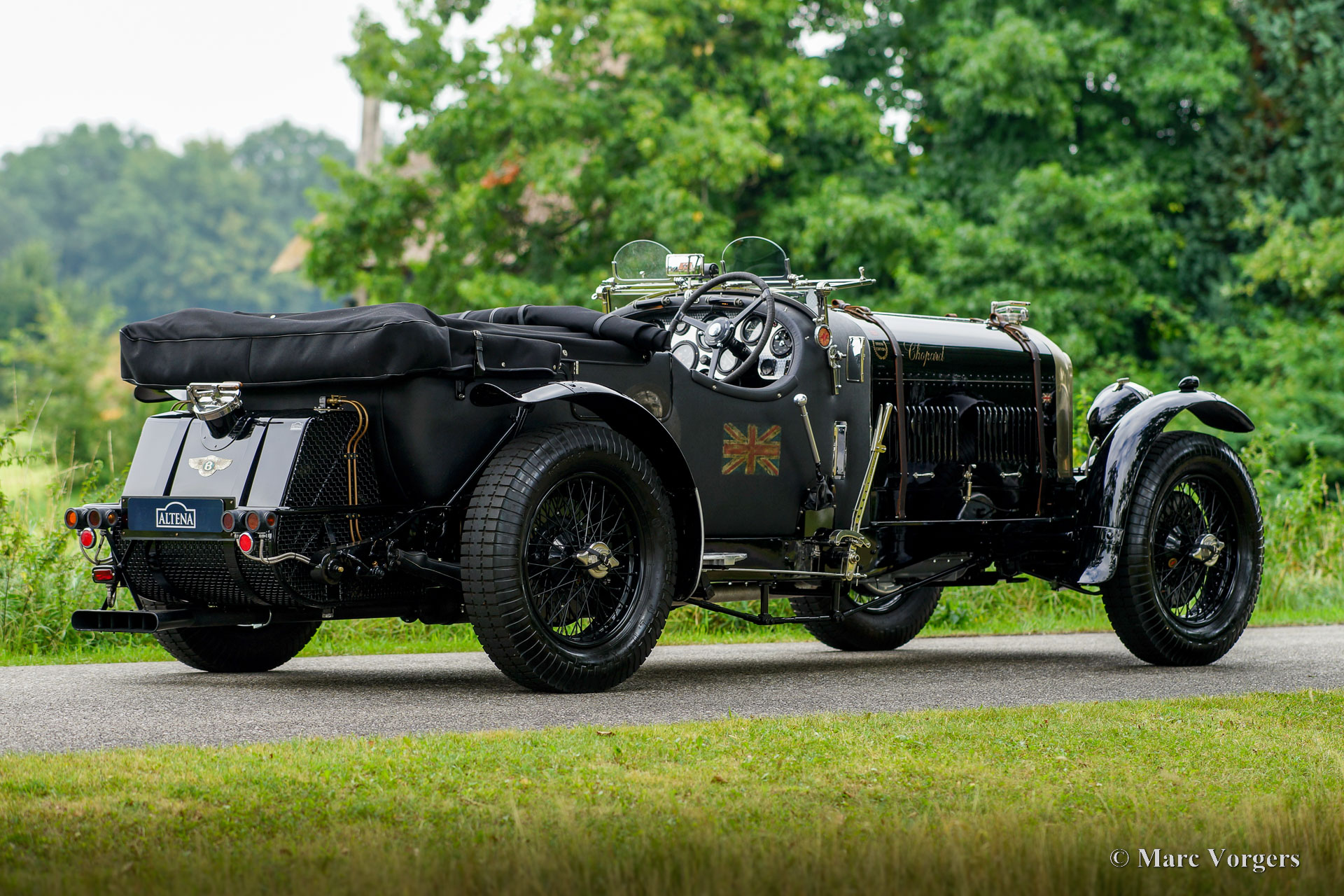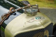 The Bentley 3 Litre was W.O. Bentley’s first design. The car was presented in 1919 but the first cars were sold in 1921. The four cylinder cars of rugged construction where in a class of their own for they combined the size and comfort of the big tourers and saloons with the road holding, and speed of the smaller sports- and racing cars. The Bentley was a true owner-driver car for the sporting motorist and connoisseur. The Bentley car could be had in three different types which were designated with three different radiator badges*. Red badge: short chassis speed model, Blue badge: the early short and then long chassis type for bespoke bodywork, Green badge: very rare and used for about eighteen 100 mph. These Green badge car won at Le Mans in 1924 and 1927 (Old Number Seven.) The 3-Litre was built from 1919 until 1929.