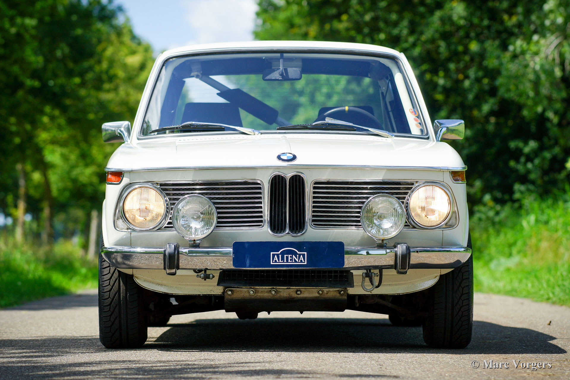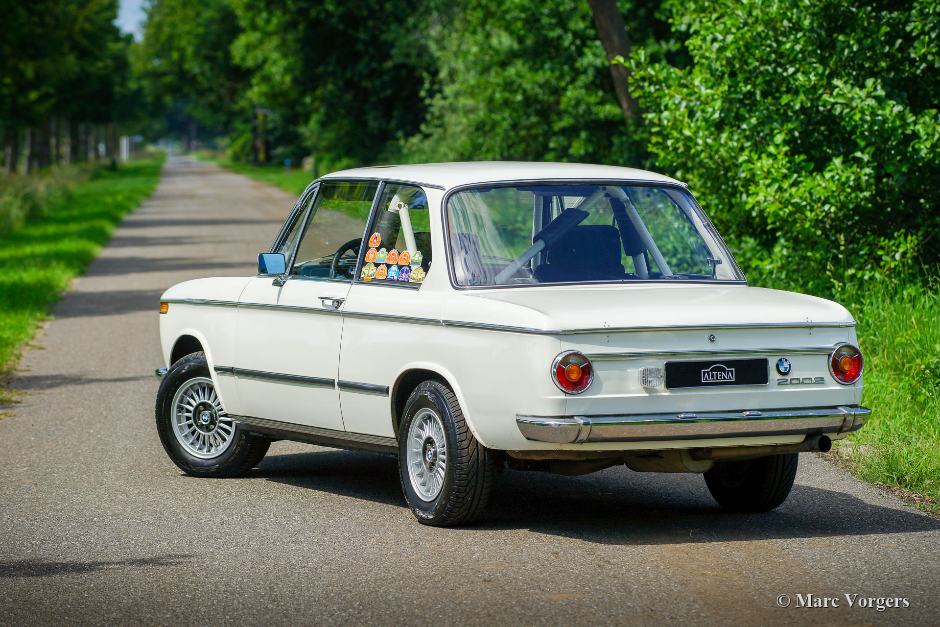 BMW 2002 (E10) voiture de rallye, année 1969. Numéro de châssis (VIN) 164100X, numéro de moteur 336008X. couleur blanc Chamonix combiné avec un intérieur rallye bleu foncé / noir. Cette fantastique BMW 2002 est issue de la première et la plus recherchée des séries E10 avec les pare-chocs chromés fins, les boutons de tableau de bord cannelés et les lampes rondes à l'avant et à l'arrière. Ce 2002 est équipé d'un toit ouvrant coulissant d'origine ! Cette BMW 2002 a été largement préparée pour des conditions de conduite compétitives et difficiles en rallye historique. La voiture a participé à de nombreux rallyes comme le montrent les autocollants trophées sur la vitre latérale ! La voiture a été largement entretenue après chaque rallye. L'automobile est en très bon état et la carrosserie est très saine !