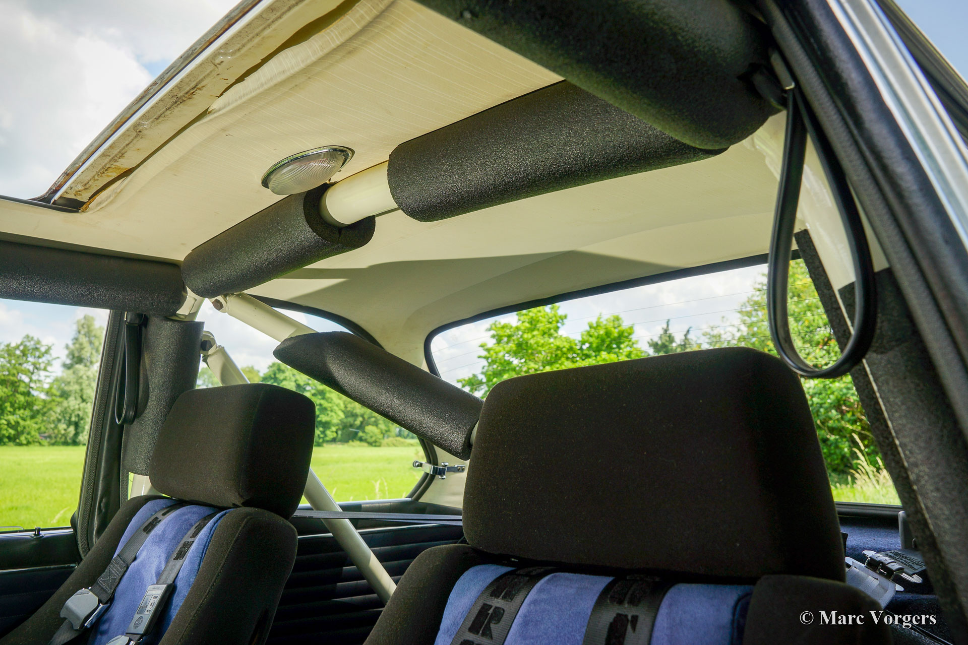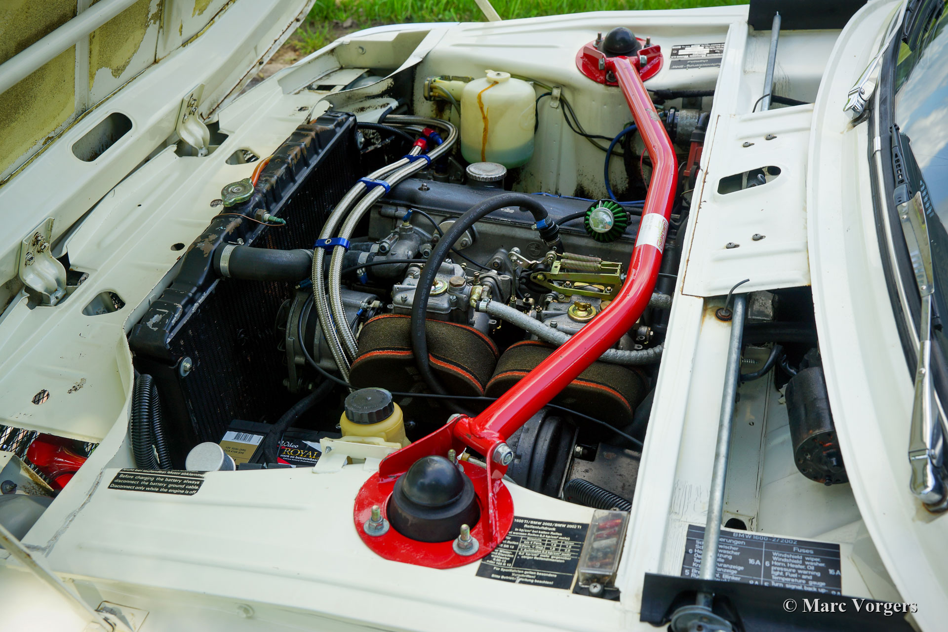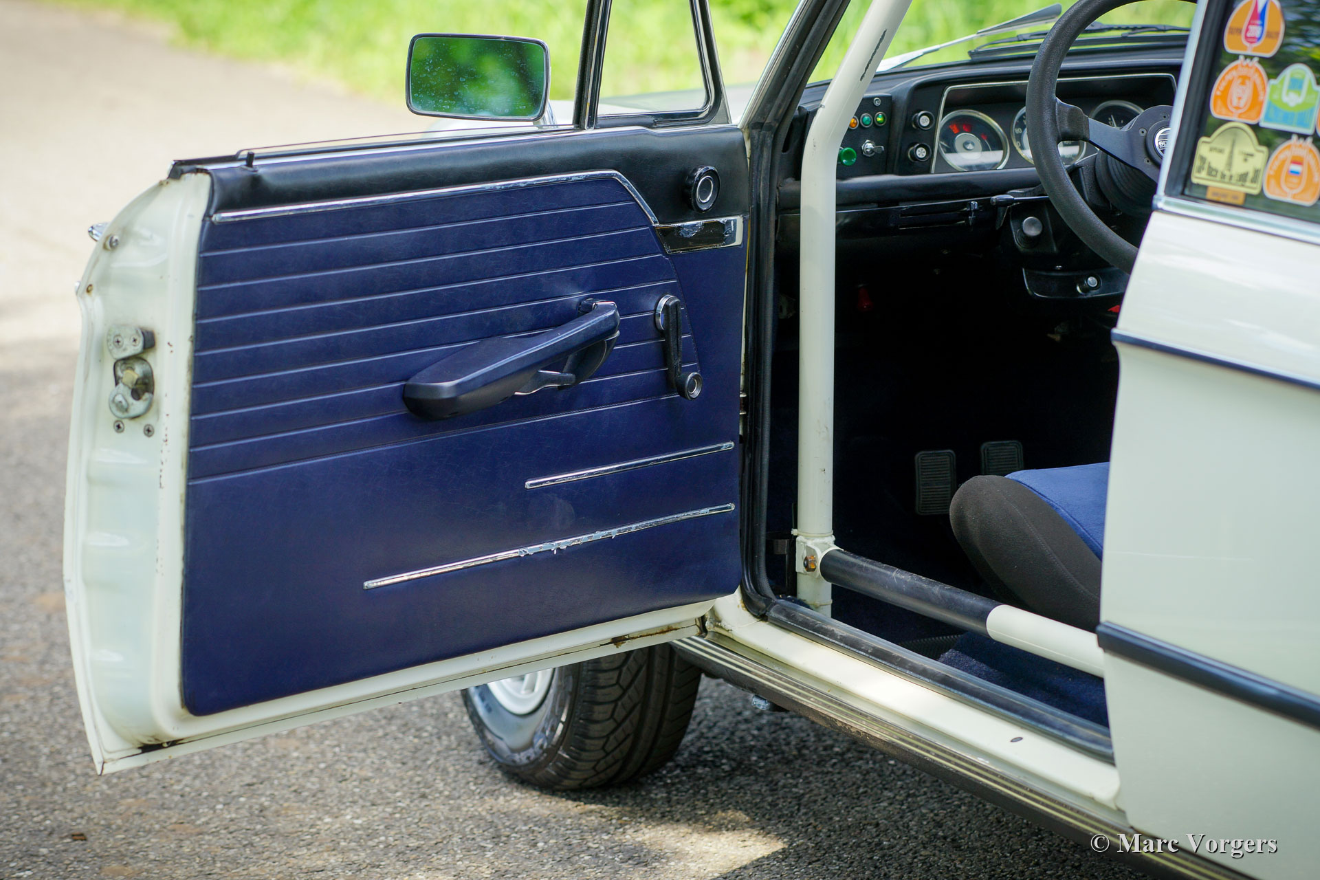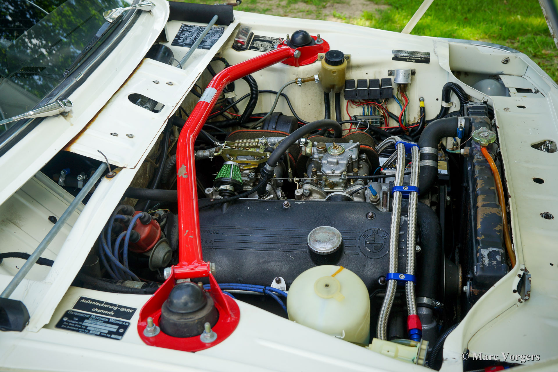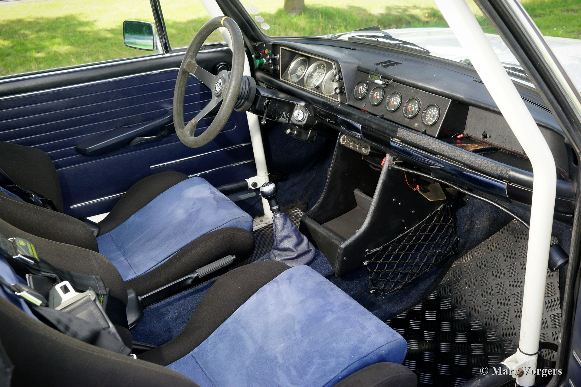 Arceau, jambes de force avant renforcées, renfort transversal de jambe de force à l'avant et à l'arrière, une cloison arrière modifiée dans le coffre pour accueillir deux roues de secours au-dessus des roues arrière, deux réservoirs de carburant, deux pompes et deux filtres à carburant, amortisseurs Intrax autour, freins à disque avec étriers de frein à 4 pistons à l'avant, différentiel à glissement limité, échappement en acier inoxydable sur mesure, plaque de protection de puisard, radiateur haute capacité, feux de route auxiliaires à l'avant, sièges sport spéciaux avec appuie-tête, harnais de sécurité à 4 points, jauges supplémentaires et très fiables, ventilateur de refroidissement électrique et un compteur kilométrique rallye. Le moteur était également surclassé et équipé d'un arbre à cames Schrick « plus rapide », d'un collecteur d'échappement à écoulement libre, de deux carburateurs « twin choke », de boulons de culasse en acier et d'écrous et d'un collecteur d'admission poli intérieurement. La boîte de vitesses est une unité de sport « dog leg » à 5 vitesses.