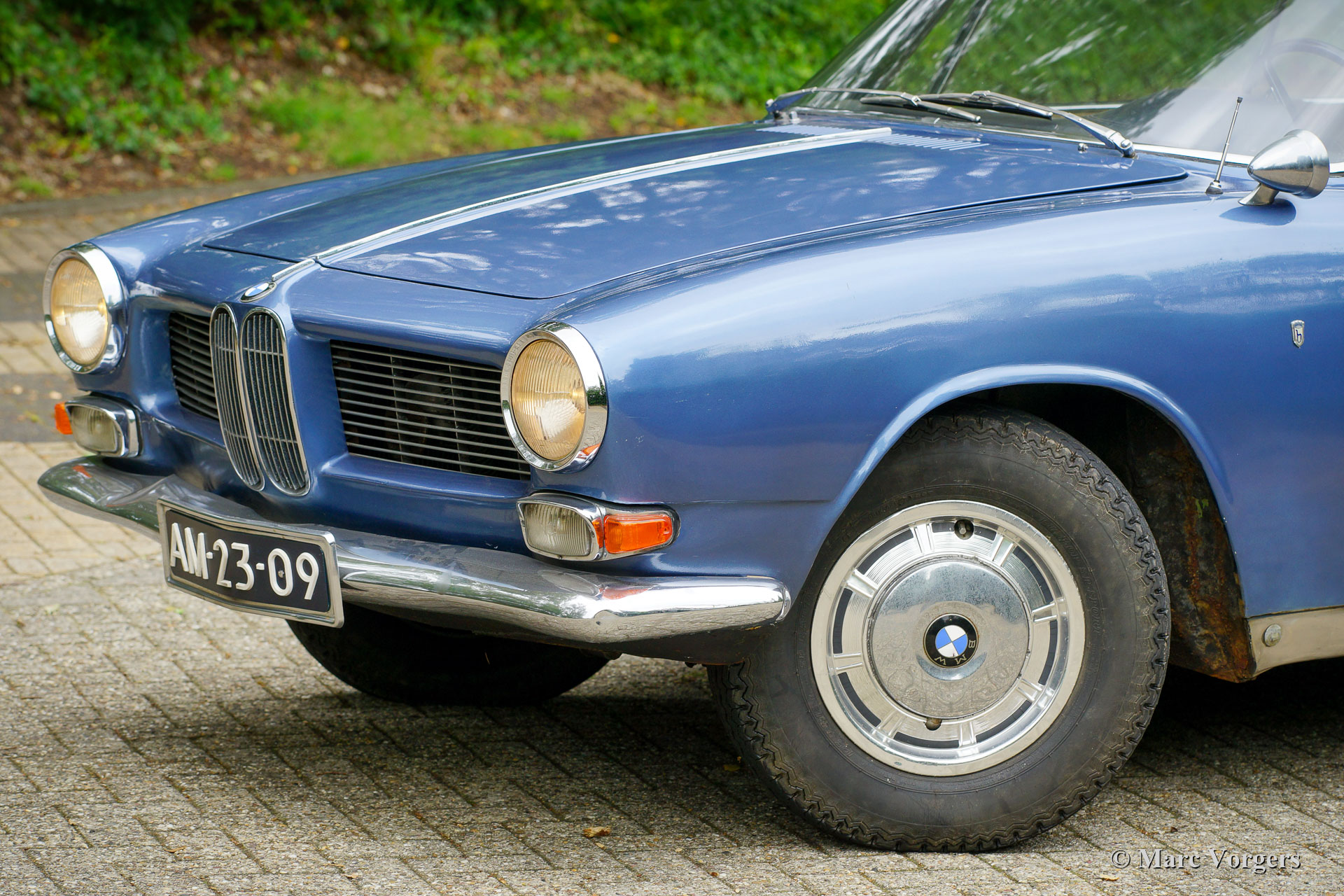 BMW 3200 CS Bertone, année 1964. Couleur bleu métallisé combinée avec un intérieur en tissu beige et un tapis Girloon beige. Cette magnifique BMW 3200 CS Bertone en état de « trouvaille de grange » a été vendue neuve en mars 1964 à la firme Baumgarte à Brackwede, en Allemagne. En 2006, l'automobile fut exportée aux Pays-Bas où elle fut garée pendant de nombreuses années dans un environnement sec. Récemment, la voiture fut retirée du stockage et remis en service. Nous avons conduit la voiture pendant environ 5 miles, et c'est incroyable à quel point elle roule, change de vitesse, freine et gère toujours bien. Les vitres électriques fonctionnent parfaitement ; Qualité allemande des années 60 ! Cette BMW 3200 CS peut être conduite « telle quelle » en tant que « survivante » avec quelques reparations supplémentaires, de nouveaux pneus et un nouveau CT. Cette automobile à l'état de « trouvaille de grange » est une base solide et complète pour une restauration complète aux normes du concours. Seuls 603 exemplaires furent construits de septembre 1961 à septembre 1965, seules 125 voitures sont connues pour survivre dans le monde. Cet exemple montre tous les détails d'origine, mais il fut mal repeint en bleu métallisé il y a des décennies. Cette BMW 3200 CS Bertone fut livrée neuve dans la couleur rouge fonce (velours rot) combinée avec l'intérieur beige actuel. La voiture était livrée en usine avec un toit ouvrant coulissant et un autoradio haut de gamme Blaupunkt Köln avec fonction de recherche automatique des chaînes. La voiture est livrée complète avec le cric d'origine, la clé pour écrou de roue et le sac à outils. De plus, la voiture est vendue avec un jeu de cinq nouveaux enjoliveurs rares en aluminium, un jeu complet de caoutchoucs de carrosserie (également pour le pare-brise et la lunette arrière), deux nouveaux emblèmes Bertone et un jeu de quatre nouveaux caches caoutchouc de cric. C'est une occasion unique d'acheter une BMW 3200 CS Bertone dans un état solide, complet et en état de marche. La voiture est immatriculée aux Pays-Bas et peut être exportée dans n'importe quel pays du monde. La voiture est vendue « en l'état ».