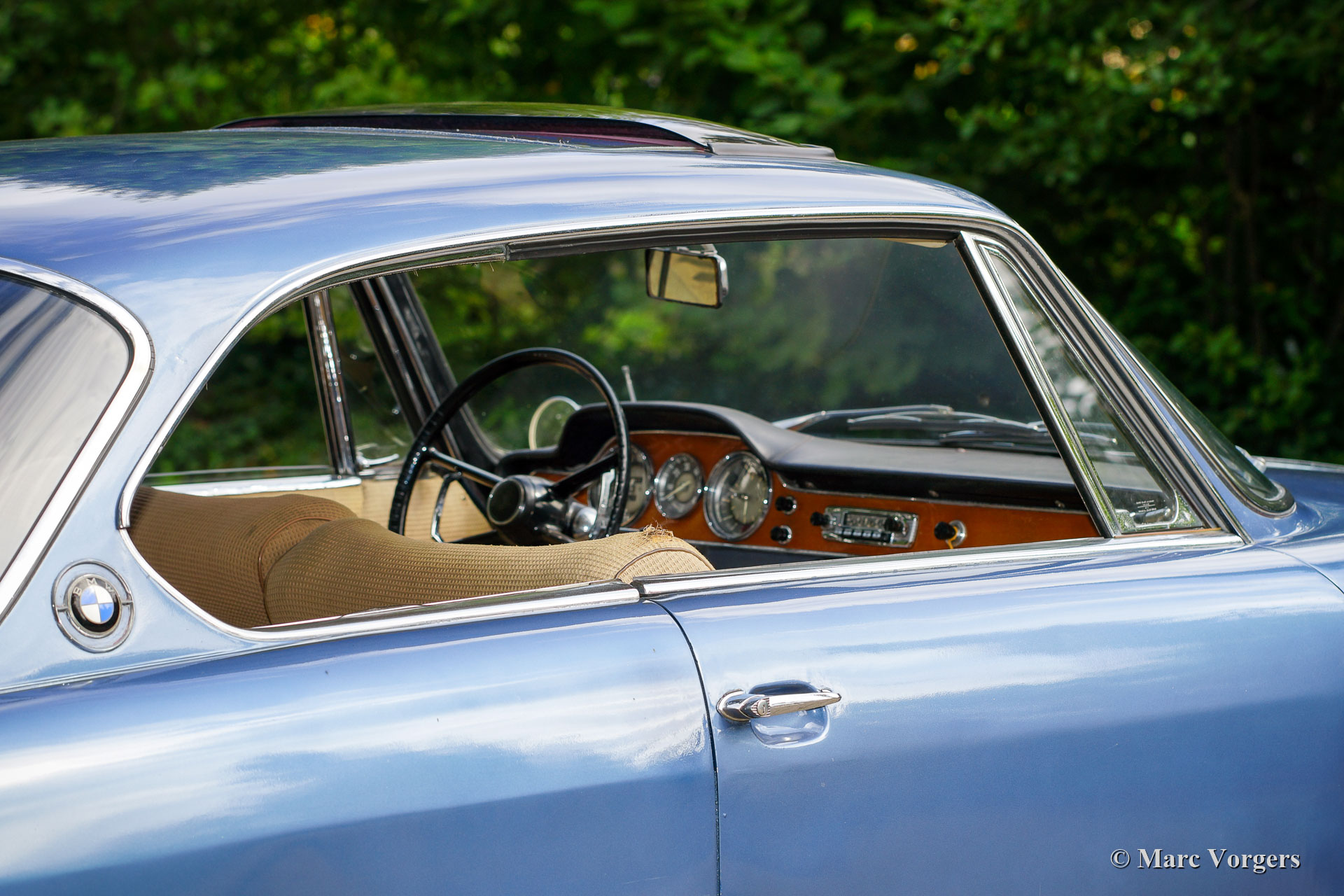 The BMW 3200 CS Bertone was officially shown by BMW at the Frankfurter Automobil-Ausstellung in September 1961. The car has been in production from September 1961 to September 1965. 603 examples were built, including 1 Cabriolet version for major shareholder Quandt. It is estimated that about 125 copies are still “alive” (most of them in Germany). The Bertone was built in two series, the first up to chassis number 76175, from 76176 the second series with the gearbox directly coupled to the engine and with floor-gear-shifter. At the Frankfurter Automobil-Ausstellung, the Bertone was somewhat in the shadow of the BMW 1500 Neue Klasse, which was also introduced there and especially afterwards it was questionable why BMW still dared to introduce an expensive V8 Coupé as a successor to the 503. It was probably a prestige thing. The body was designed and built by Bertone in Italy. The bodies were transported to BMW and further assembled there. The Bertone was the first BMW with the legendary 'Hofmeister kink' and we see the roofline and hardtop window construction in the later BMW E9 Coupés such as the 2000 CS and the later 3.0 CS(I) models. The Bertone was a very expensive car: In Germany the price in 1962 was DM 29,850 (which could go up to DM 35,000 if all options were applied). In the sparse road tests of its time, the Bertone was judged to be very elegant and comfortable automobile with exceptionally good driving and handling capabilities, as well as praised for its powerful, smooth V8 engine which could accelerate from 30 km/h to 200 km/h in top gear.