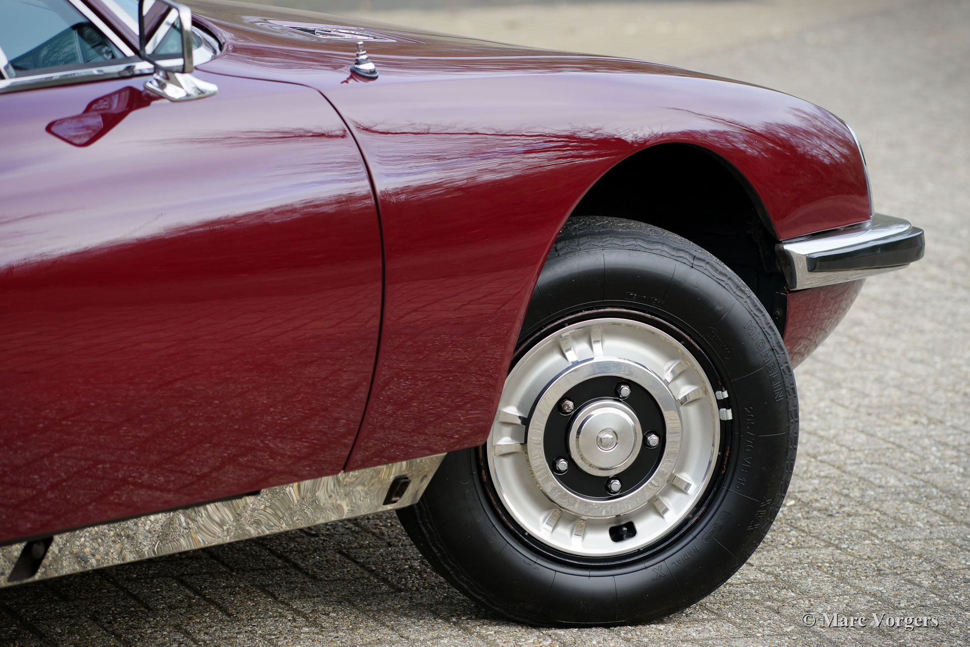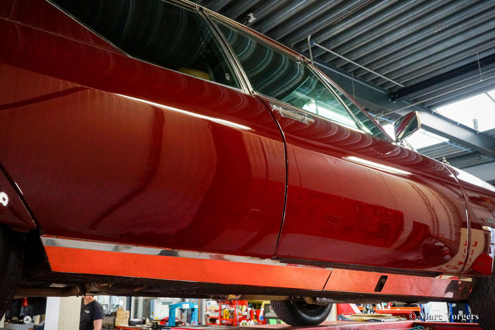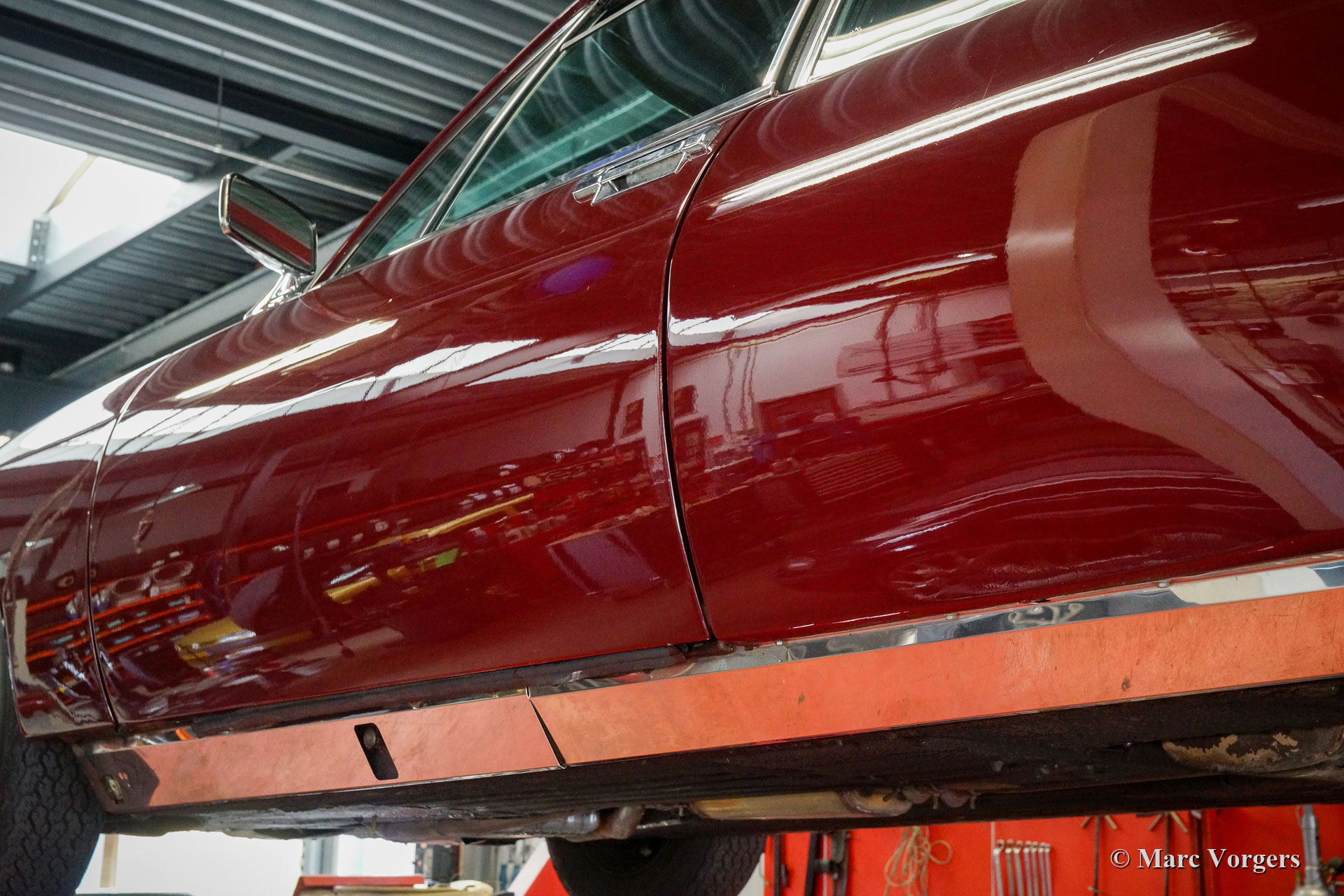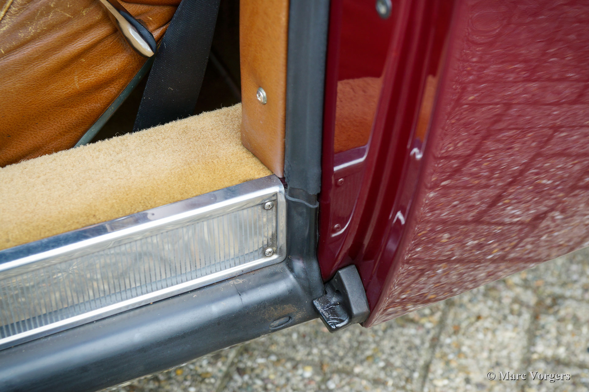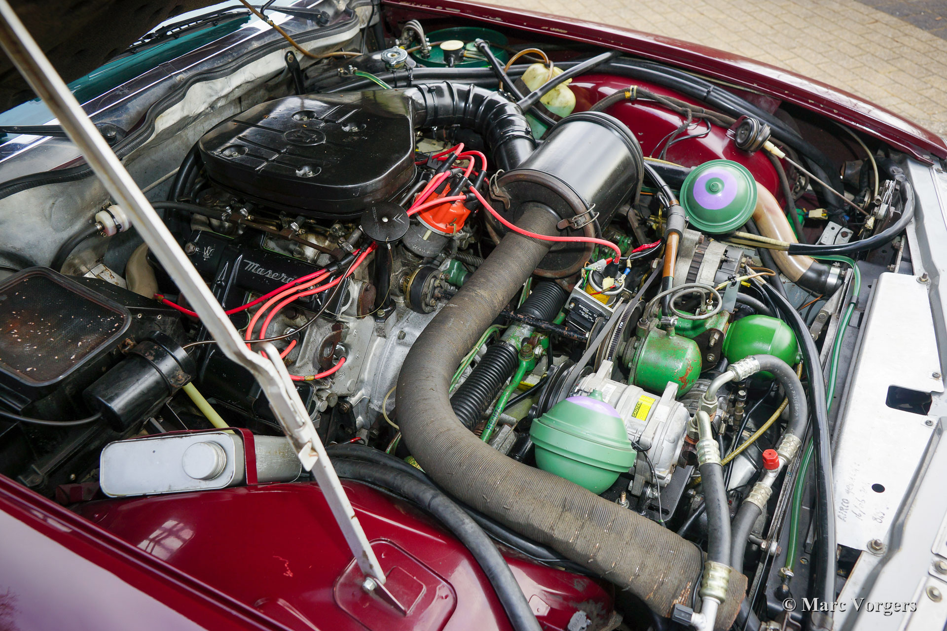 Citroën SM, année 1972. Couleur rouge bordeaux associée à un intérieur en cuir marron et à une moquette assortie. Cette magnifique Citroën SM fut vendue neuve aux États-Unis d'Amérique (US). En 1990, la voiture fut importée aux Pays-Bas. Le dernier propriétaire chérit la voiture depuis 2003, cette année-là, la voiture était déjà en service dans notre atelier. À un moment donné, le système d'injection d'origine fut remplacé par trois carburateurs Weber à double étranglement, ce qui était également une option d'origine. En 2003, le propriétaire a décidé d'améliorer la voiture. Le moteur fut reconstruit avec toutes les améliorations importantes telles que des soupapes améliorées, de meilleurs guides de chaîne de distribution et une pompe à huile améliorée. En 2004, la voiture a reçu une nouvelle peinture parfaite. La peinture crème terne d'origine fut remplacée par le magnifique bordeaux qui orne maintenant la voiture. De plus, la façade américaine fut remplacée par la magnifique façade en verre de style européen avec des projecteurs pivotants ! Nous pouvons regarder en arrière en janvier 2009 dans l'histoire de l'entretien, la voiture a reçu des améliorations et des services pour plus de 21 000 € et la voiture a parcouru 22 500 kilomètres depuis. Cette Citroën SM est en très bon état ! L'intérieur en cuir brun naturel et le tapis montrant des signes d'usure. La voiture est équipée de la radio Continental Edison d'origine, une option très recherchée. La suspension hydropneumatique fonctionne parfaitement, le moteur Maserati V6 fonctionne à merveille, la boîte de vitesses manuelle à 5 rapports se déplace parfaitement et les freins hydrauliques fonctionnent parfaitement. En raison de son apparence impressionnante, de la superbe suspension hydropneumatique et du puissant moteur Maserati V6, la Citroën SM est surnommée « Sa Majestée » en France. En regardant ce merveilleux SM, et en particulier lors de la conduite et de l'expérience, ce nom prouve qu'il est bien choisi.