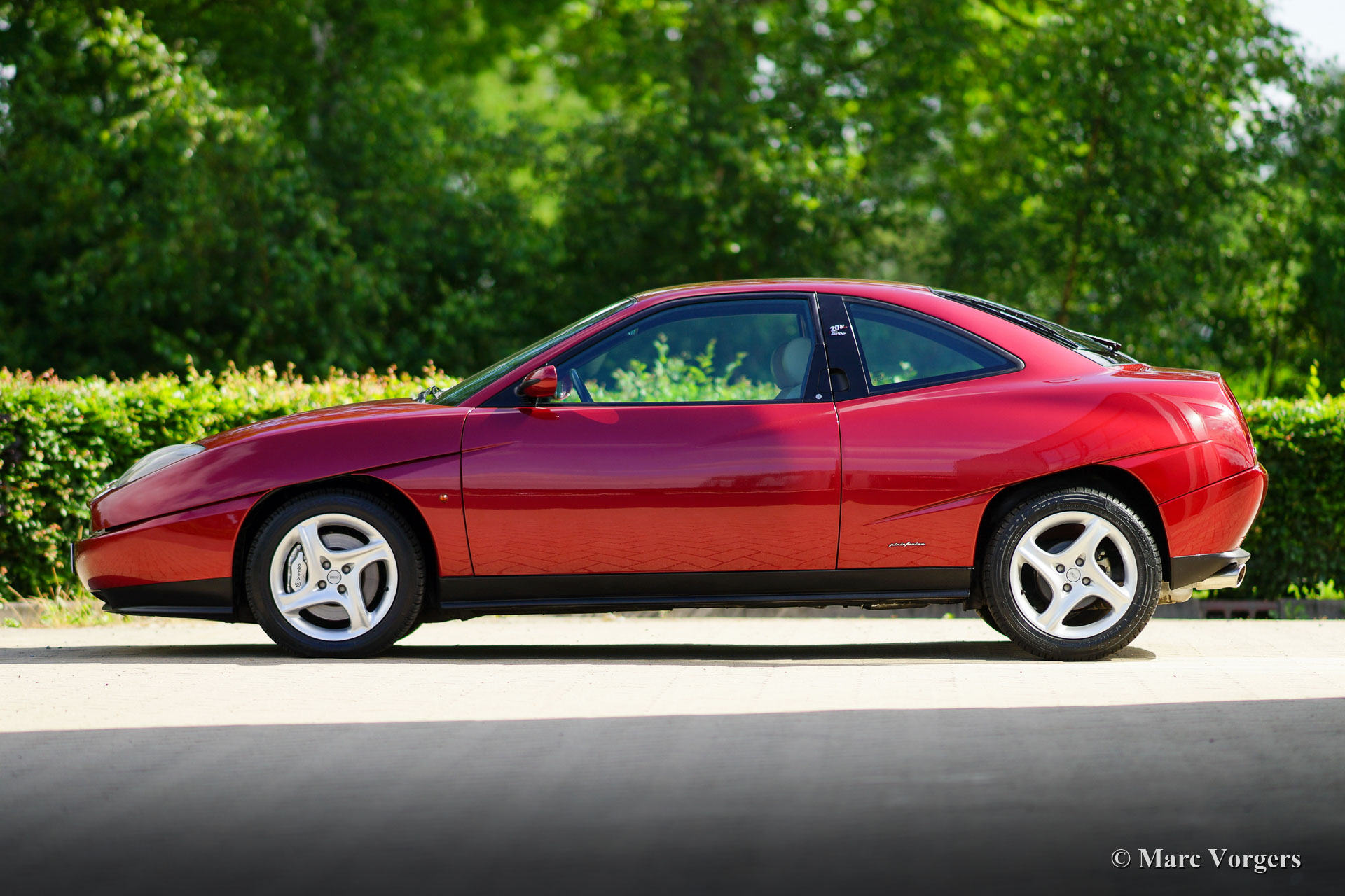 In 1993 Fiat again entered a sector of the car market in which they once were world famous: the class of sports cars based on mass production models. The Coupé Fiat was built on the Tipo 2 platform which was also used for the Fiat Tipo, Tempra, Lancia Dedra, and Alfa Romeo 155. The design was made by Fiat Centro Style and the car was manufactured by Pininfarina. The wonderful design was inspired by competition cars with details like the faired head lamps, slashed wheel arches, the exposed aluminium fuel filler, the small rear lights and the dashboard panel in body colour. The introduction model was the top spec 190 HP 2.0 i.e. Turbo 16V with ABS and a Viscodrive differential as standard equipment. In 1996 the revised model saw the light of day. The modifications were only to be found in the mechanical department. Now the Coupé fiat featured a two litre, five-cylinder, 20 valve engine in naturally aspirated or turbocharged form. The maximum, power was increased to a stunning 220 HP. The car was also given a high tech Brembo brake system with aluminium callipers. In 1998 a ‘Limited Edition’ model was introduced which was fitted with a 6-speed close-ratio gearbox. In March 1999, the Limited Edition was replaced by the Turbo Plus model.