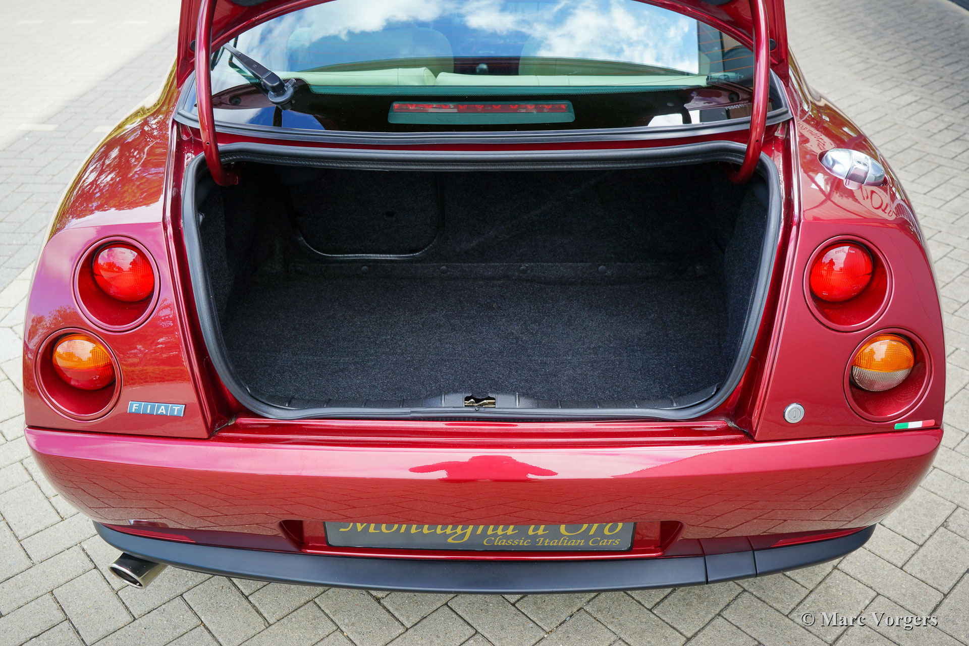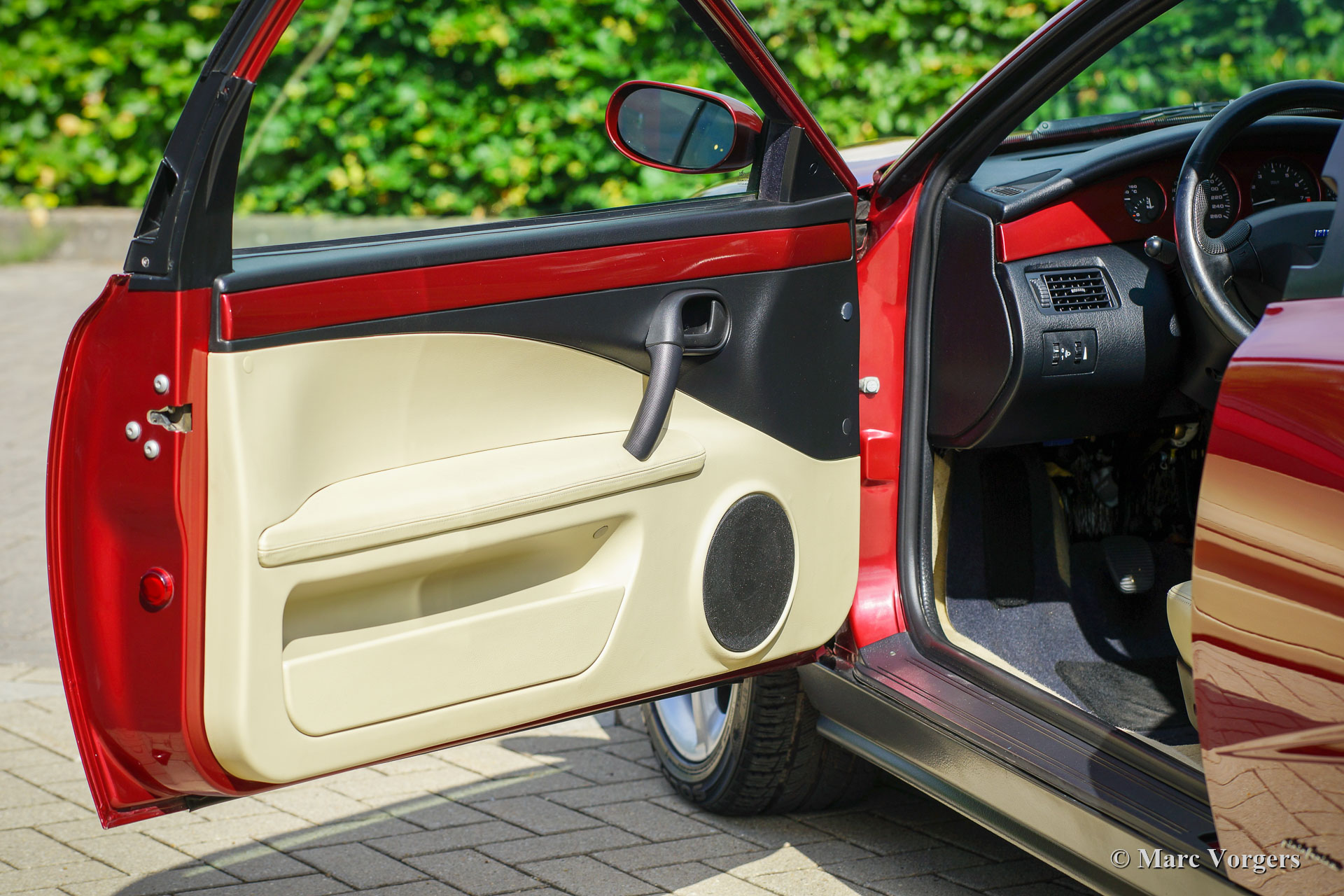Coupé Fiat 2.0 20V Turbo, année 1997 (28-3-1997). Couleur rouge foncé métallisé combinée à un intérieur en cuir beige, tapis beige et des tapis de protection noirs. Ce magnifique Coupé Fiat 20V Turbo a été vendu neuf en Italie. Notre contact italien a acheté cette beauté du 1er propriétaire, m. Compasso de Frattomaggione. Ce magnifique Coupé Fiat n'a parcouru que 38 792 kilomètres depuis l'origine ! Au km 35,342, la voiture fut révisée par un concessionnaire Fiat italien et la courroie de distribution fut renouvelée. En décembre 2021, à 35 794 km, la voiture a atteint un état technique et optique optimal aux Pays-Bas : plus de 8 000 € fut investis pour atteindre la perfection. Les intervalles d'entretien sont consignés dans le carnet d'entretien et les factures d'entretien sont présentes. Ce Coupé Fiat 2.0 20V Turbo est dans un état magnifique et comme neuf ! Vous ne retrouverez que les moindres traces d'utilisation antérieure et la voiture roule, se sent et se comporte parfaitement. La voiture est livrée complète avec tous les livrets d'origine et trois clés d'origine. Il sera difficile de trouver un meilleur exemple de cette voiture de sport italienne hautement désirable.
