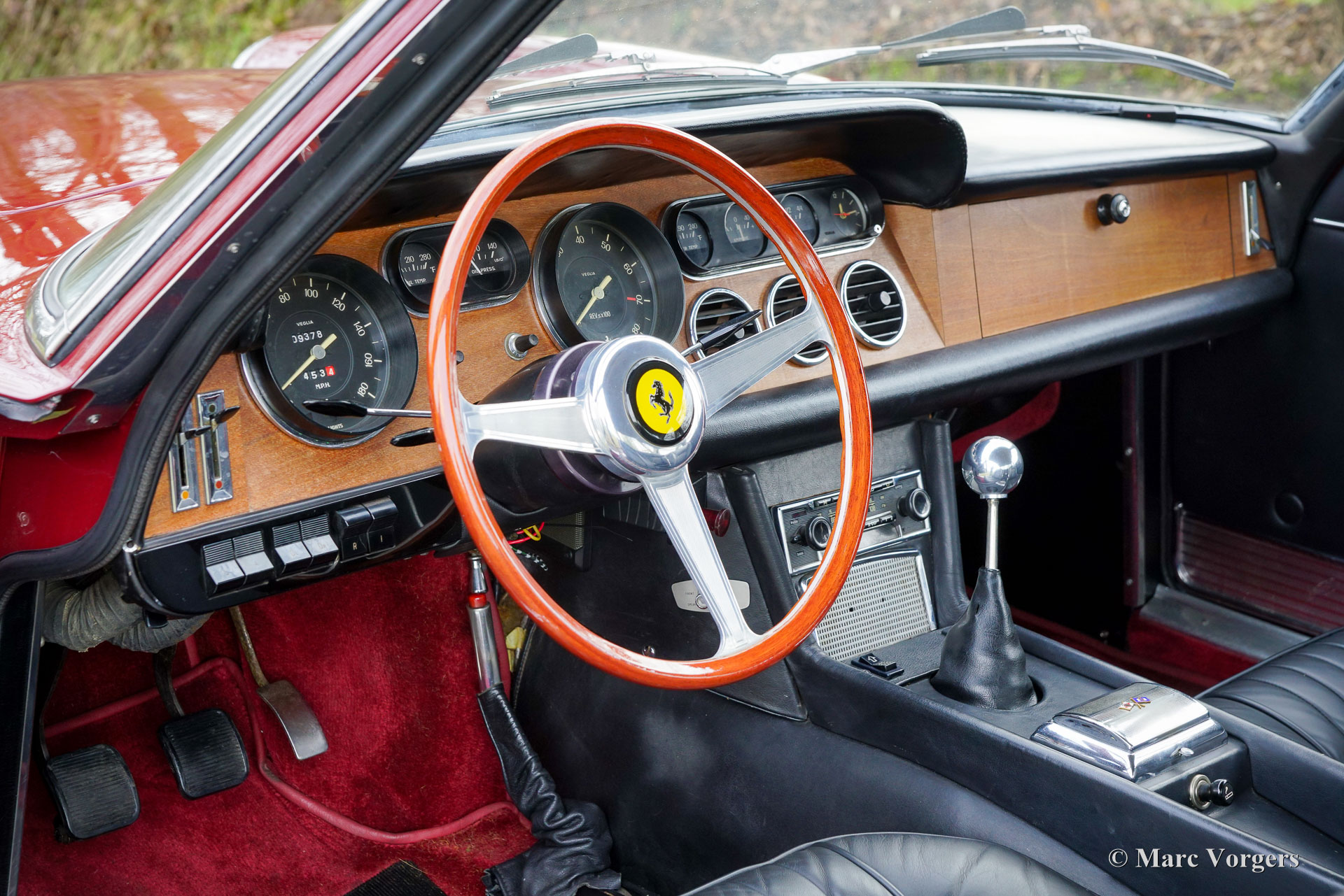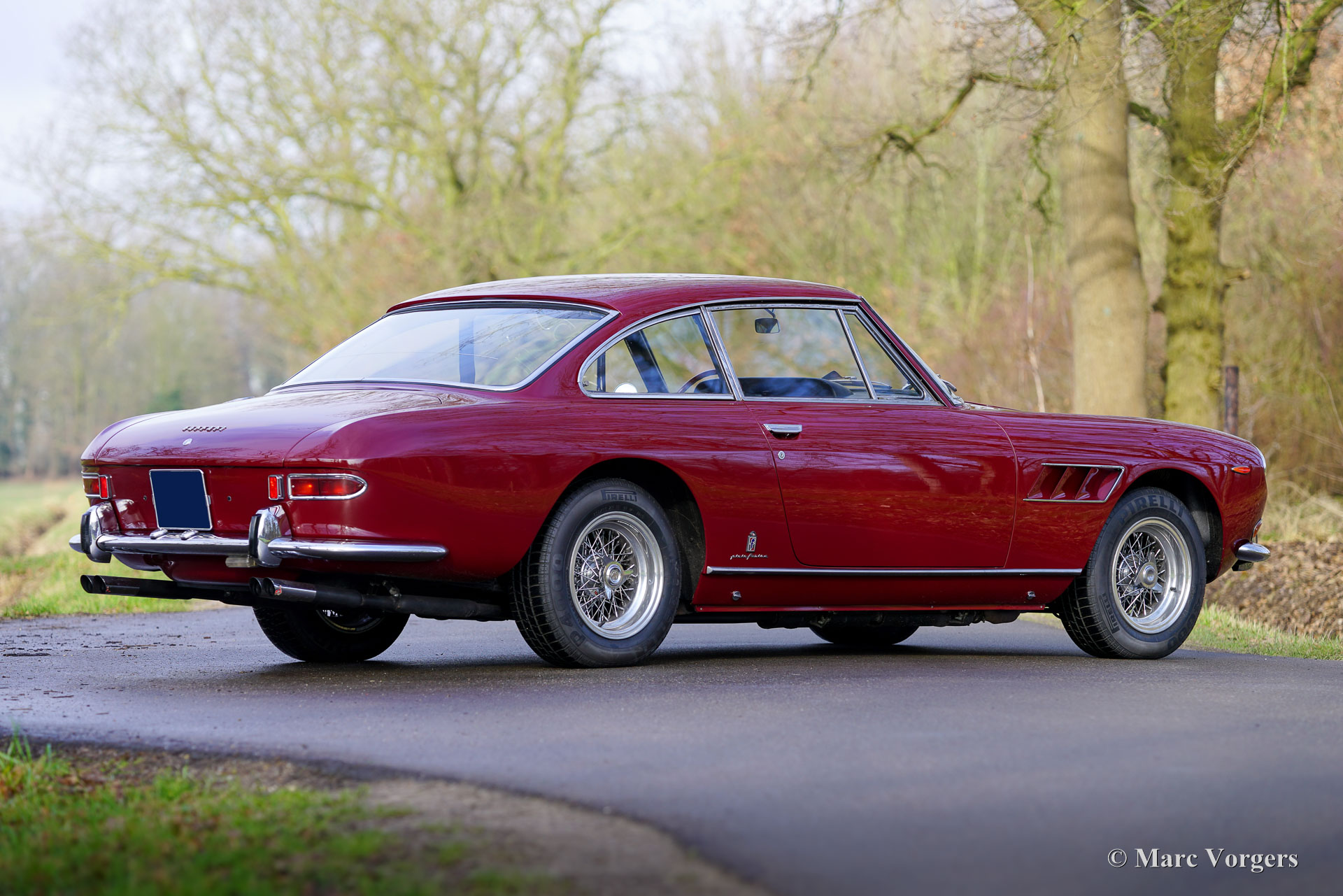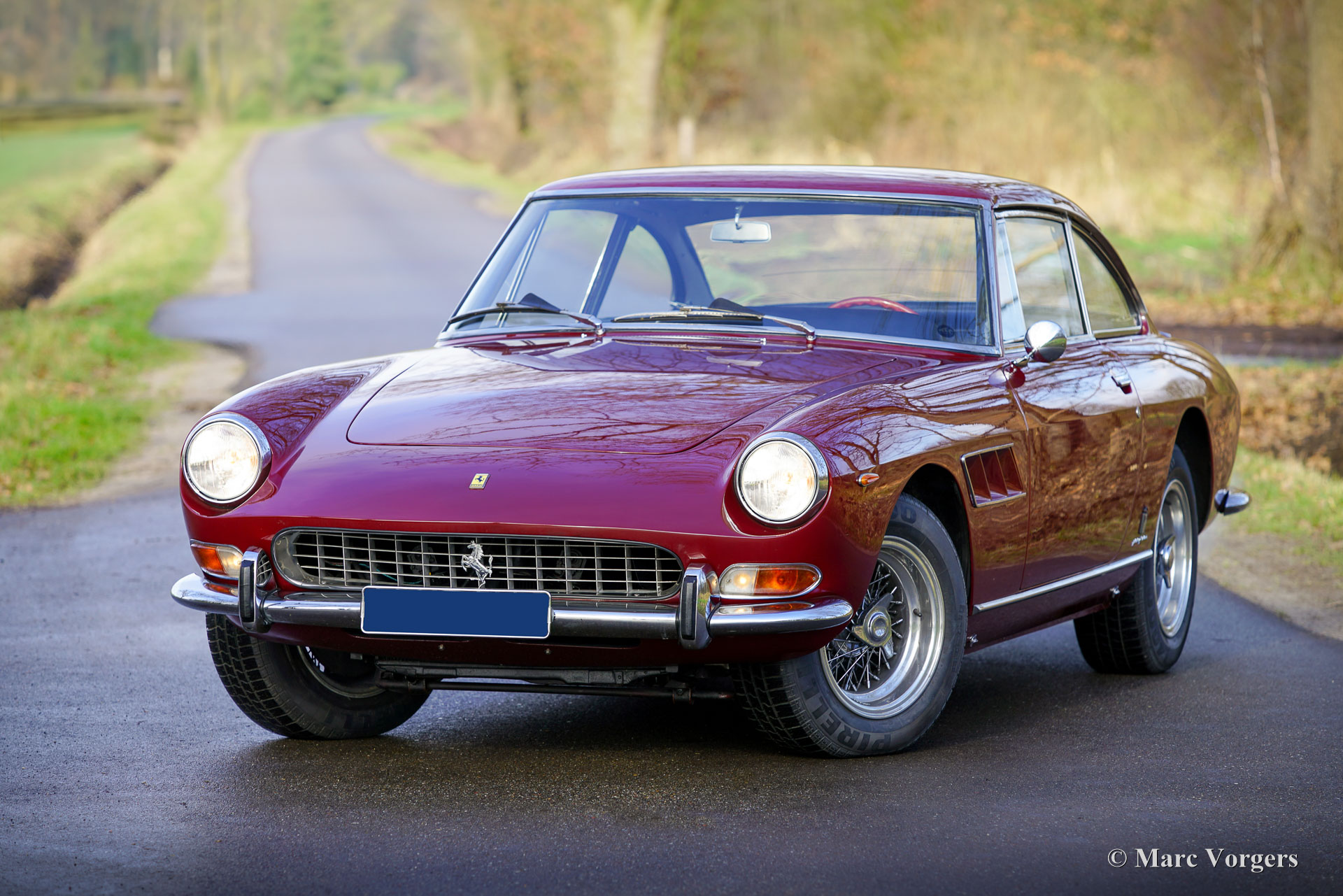 Ferrari 330GT 2+2 séries 2, année 1966. Couleur rouge foncé associée à un intérieur en cuir noir garni de moquette rouge foncé. Cette magnifique Ferrari 330 GT 2+2 série 2 fut vendue neuve en Italie avec une finition argent métallisé (Argento 2509A) associée à un intérieur en cuir beige (Beige Scuro VM846). De décembre 1988 à août 1995, la Ferrari était la propriété de M. N Cutrera vivant au Royaume-Uni. Ensuite, cette merveilleuse machine fut chérie pendant onze ans par M. K.F Sondermann qui vivait en Allemagne. Sondermann a participé à de nombreux événements avec la Ferrari tels que le Grand Prix Oldtimer du Nürburgring, les Ferrari Racing Days et le Michael Schumacher Fan-Day. En 2006, la voiture fut importée aux Pays-Bas. Actuellement, la voiture est entre les mains du deuxième propriétaire néerlandais qui profite de la 330 GT depuis juin 2013. Entre 2008 et 2013, la voiture fut repeinte et l'intérieur a été recouvert d'un cuir noir de la plus haute qualité. La Ferrari 330 GT 2+2 est l'une des Ferrari les plus recherchées des années 1960, équipée du légendaire moteur Colombo V12. Construite entre 1964 et 1967, environ 1 000 exemplaires de la 330 GT furent construits, dont seulement 455 exemplaires du modèle série 2 plus recherché, qui présente un look plus raffiné avec des phares doubles. Le moteur V12 de 4 litres produit environ 300 ch et la puissance est transmise aux roues arrière via une boîte de vitesses manuelle à 5 rapports. Cette magnifique Ferrari 330 GT 2+2 Série 2 est en excellent état et la voiture roule parfaitement. La voiture fut très bien entretenue par 2 Classic Cars au cours des dernières années et récemment, des travaux d'entretien mécanique ont été effectués pour tout remettre à jour. Cette magnifique Ferrari 330 GT 2+2 séries 2 est une voiture de collection recherchée et elle est livrée très bien documentée et complète avec les outils d'origine et une radio stéréo à cassette Becker Mexico. Cette Ferrari 330 GT 2+2 très recherchée peut être importée (et immatriculée) dans n'importe quel pays du monde.