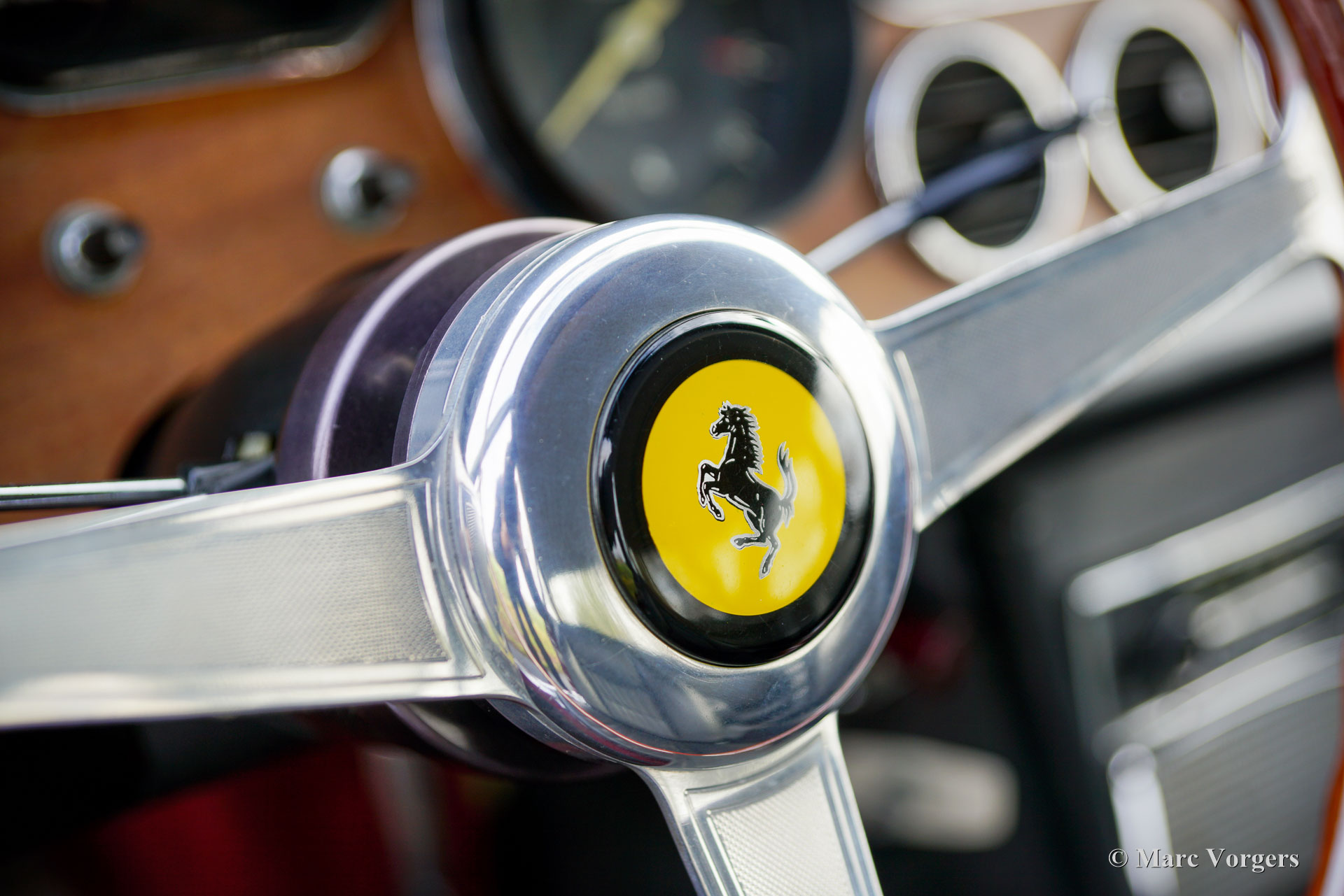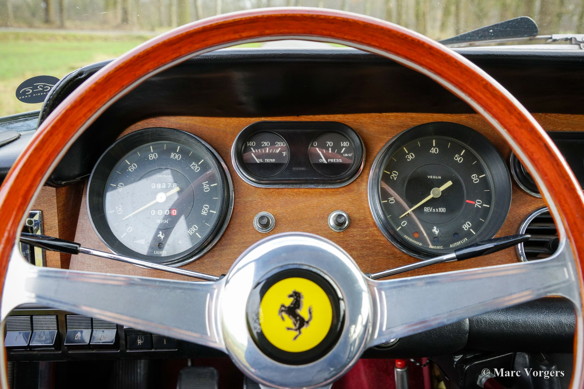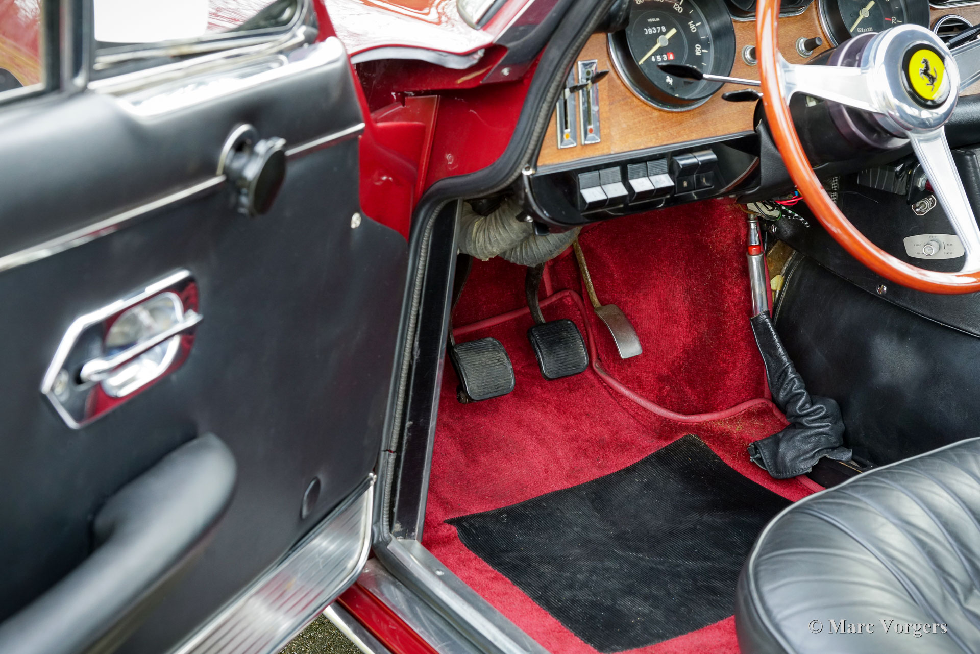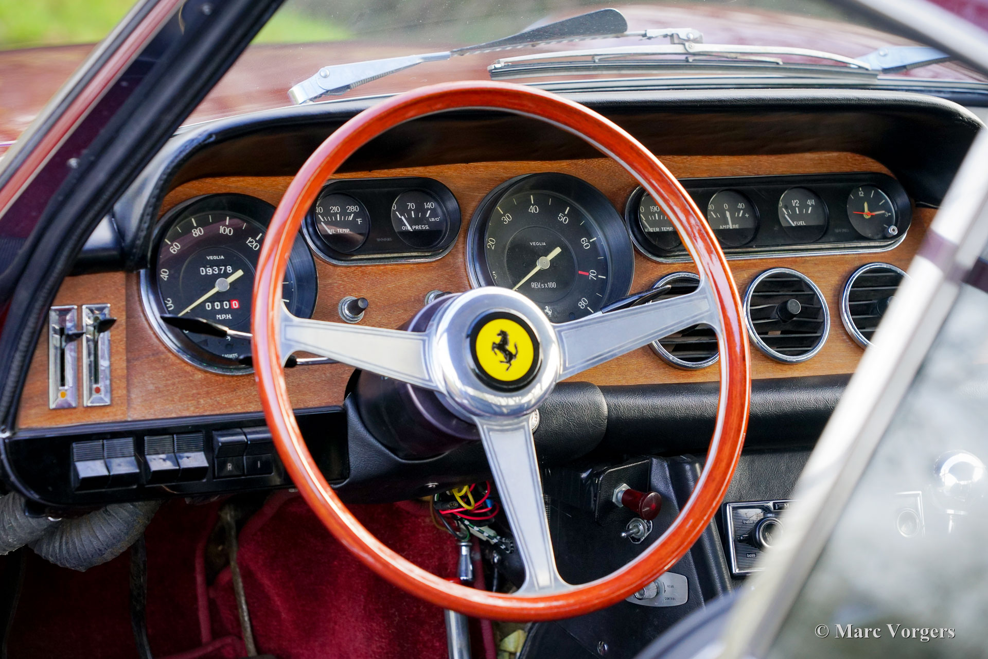 Ferrari 330GT 2+2 séries 2, année 1966. Couleur rouge foncé associée à un intérieur en cuir noir garni de moquette rouge foncé. Cette magnifique Ferrari 330 GT 2+2 série 2 fut vendue neuve en Italie avec une finition argent métallisé (Argento 2509A) associée à un intérieur en cuir beige (Beige Scuro VM846). De décembre 1988 à août 1995, la Ferrari était la propriété de M. N Cutrera vivant au Royaume-Uni. Ensuite, cette merveilleuse machine fut chérie pendant onze ans par M. K.F Sondermann qui vivait en Allemagne. Sondermann a participé à de nombreux événements avec la Ferrari tels que le Grand Prix Oldtimer du Nürburgring, les Ferrari Racing Days et le Michael Schumacher Fan-Day. En 2006, la voiture fut importée aux Pays-Bas. Actuellement, la voiture est entre les mains du deuxième propriétaire néerlandais qui profite de la 330 GT depuis juin 2013. Entre 2008 et 2013, la voiture fut repeinte et l'intérieur a été recouvert d'un cuir noir de la plus haute qualité. La Ferrari 330 GT 2+2 est l'une des Ferrari les plus recherchées des années 1960, équipée du légendaire moteur Colombo V12. Construite entre 1964 et 1967, environ 1 000 exemplaires de la 330 GT furent construits, dont seulement 455 exemplaires du modèle série 2 plus recherché, qui présente un look plus raffiné avec des phares doubles. Le moteur V12 de 4 litres produit environ 300 ch et la puissance est transmise aux roues arrière via une boîte de vitesses manuelle à 5 rapports. Cette magnifique Ferrari 330 GT 2+2 Série 2 est en excellent état et la voiture roule parfaitement. La voiture fut très bien entretenue par 2 Classic Cars au cours des dernières années et récemment, des travaux d'entretien mécanique ont été effectués pour tout remettre à jour. Cette magnifique Ferrari 330 GT 2+2 séries 2 est une voiture de collection recherchée et elle est livrée très bien documentée et complète avec les outils d'origine et une radio stéréo à cassette Becker Mexico. Cette Ferrari 330 GT 2+2 très recherchée peut être importée (et immatriculée) dans n'importe quel pays du monde.