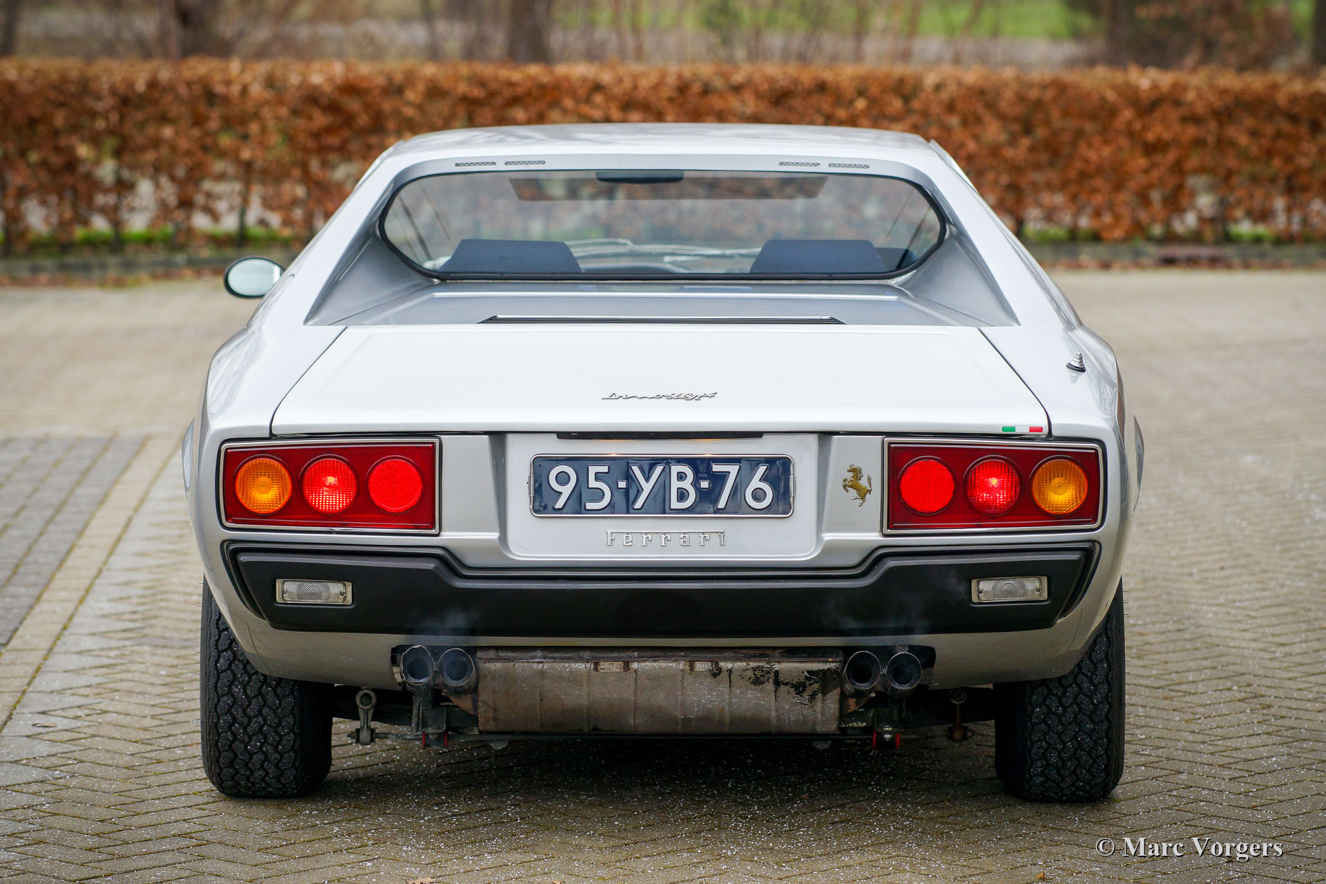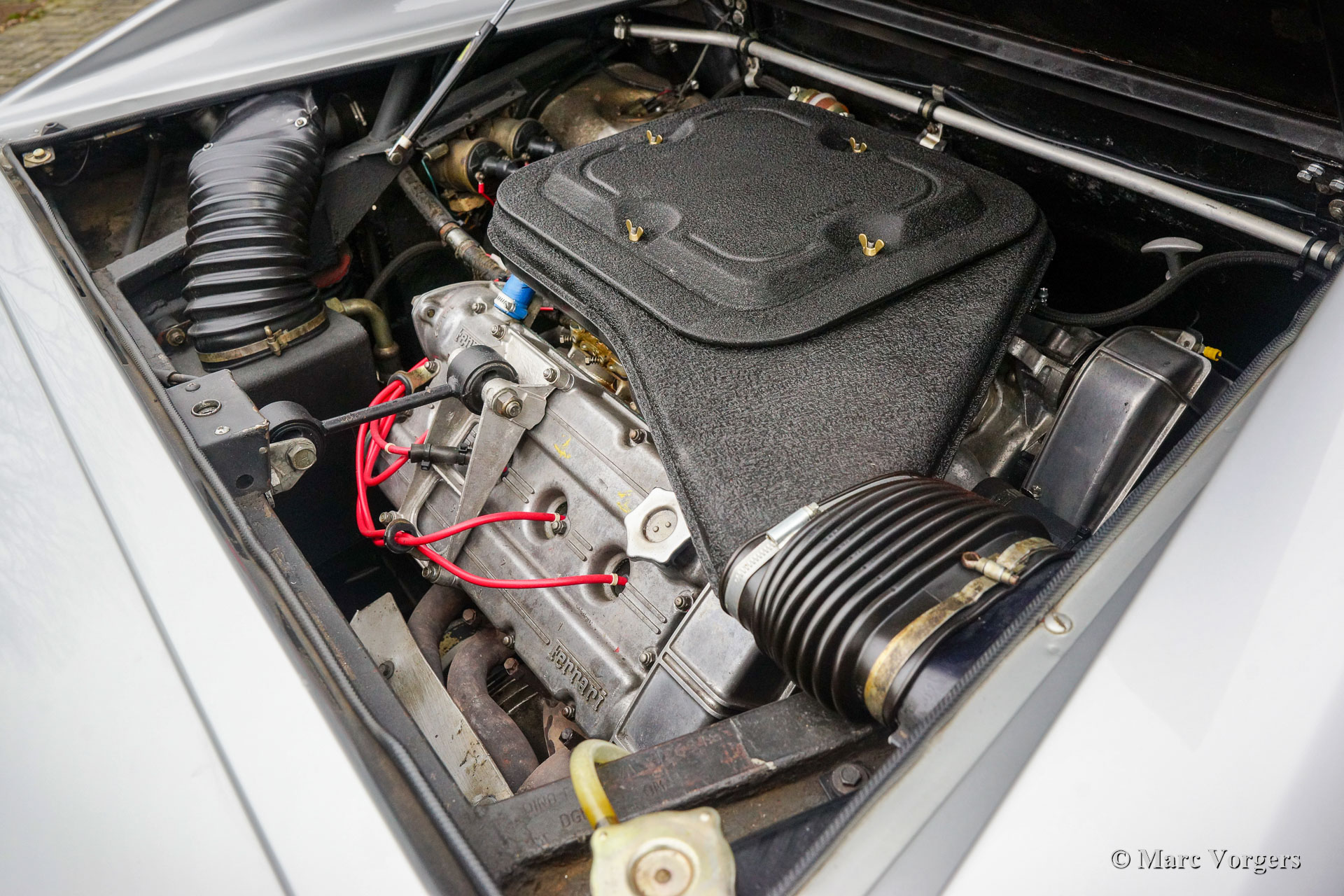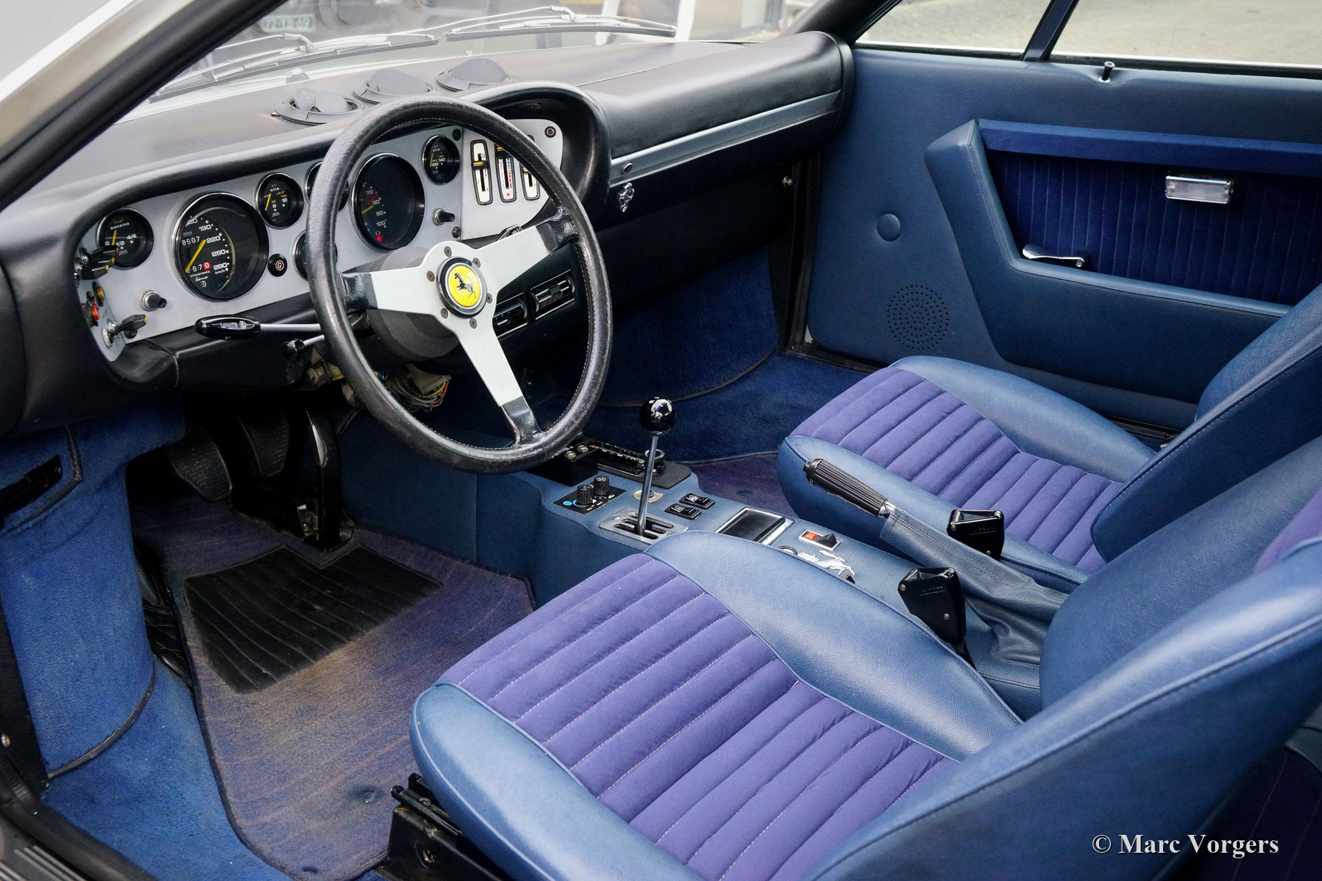 Ferrari Dino 308 GT4, année (août) 1976. Couleur argent métallisé combinée avec un intérieur en tissu / cuir bleu et un tapis bleu. Cette Ferrari Dino 308 GT4 est dans un état très bon à excellent. L'automobile à été importée aux Pays-Bas en 2013, et la voiture fut largement restaurée et révisée au cours des huit dernières années. Le compteur indique 48,507 kilomètres. Les améliorations (peinture, révision mécanique et restauration intérieure) furent réalisées selon des normes élevées, en respectant au maximum l'originalité. Vous pouvez voir qu'à l'intérieur, les sièges ont été nouvellement rembourrés avec le motif et les couleurs d'origine, et les tapis de protection d'origine (avec des soupirs d'âge) furent maintenus en place. Tous les travaux sont parfaitement documentés et la voiture est livrée avec un fichier historique complet. Le fichier contient les livrets, factures, documents et photos originaux. La seule pièce qui doit être renouvelée, si la voiture doit être conduite régulièrement, est le système d'échappement en acier d'origine. Cette Ferrari Dino 308 GTS4 montre tous les détails d'origine et est également livrée avec le jeu d'outils d'origine. En outre, la voiture est équipée d'un système radio / cassette Blaupunkt Stéréo haut de gamme correcte et de pneus Michelin XWX 205/70 de 14 pouces neufs. La Dino 308 GT4 est propulsée par le fantastique moteur V8 Ferrari monté transversalement qui délivre 255 ch et une vitesse de pointe de 248 km / h ! Seules 2826 voitures de ce type furent construites, il s'agit d'une Ferrari Dino 308 GT4 parfaitement documentée et super originale en magnifique état de collection !