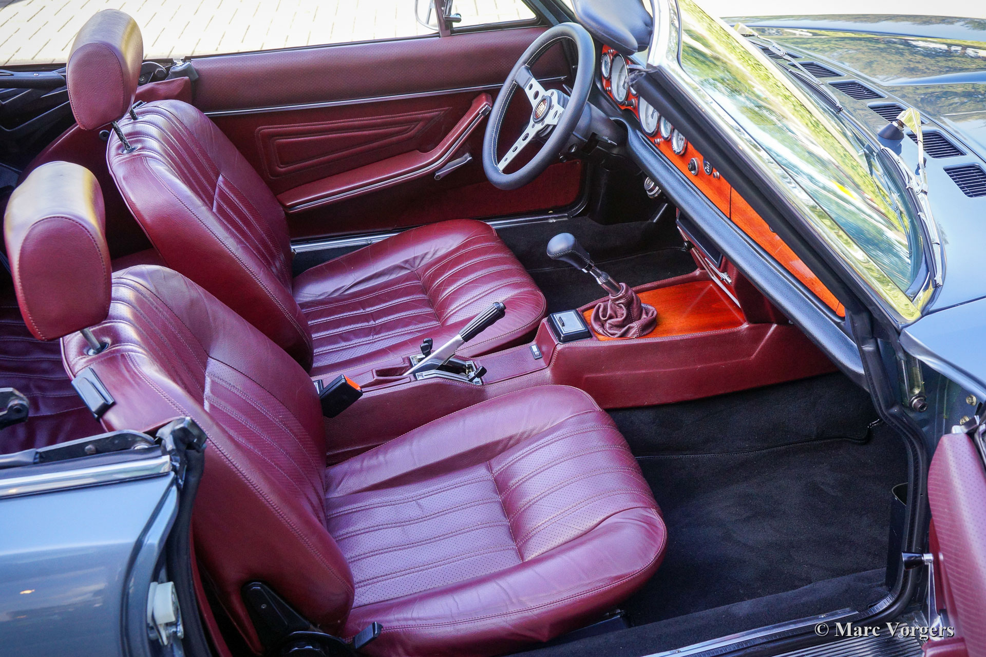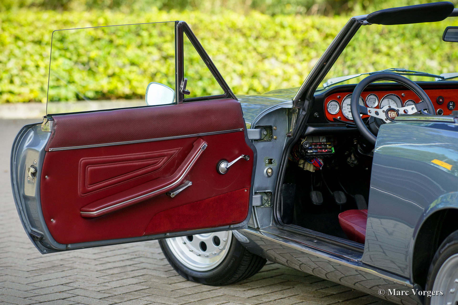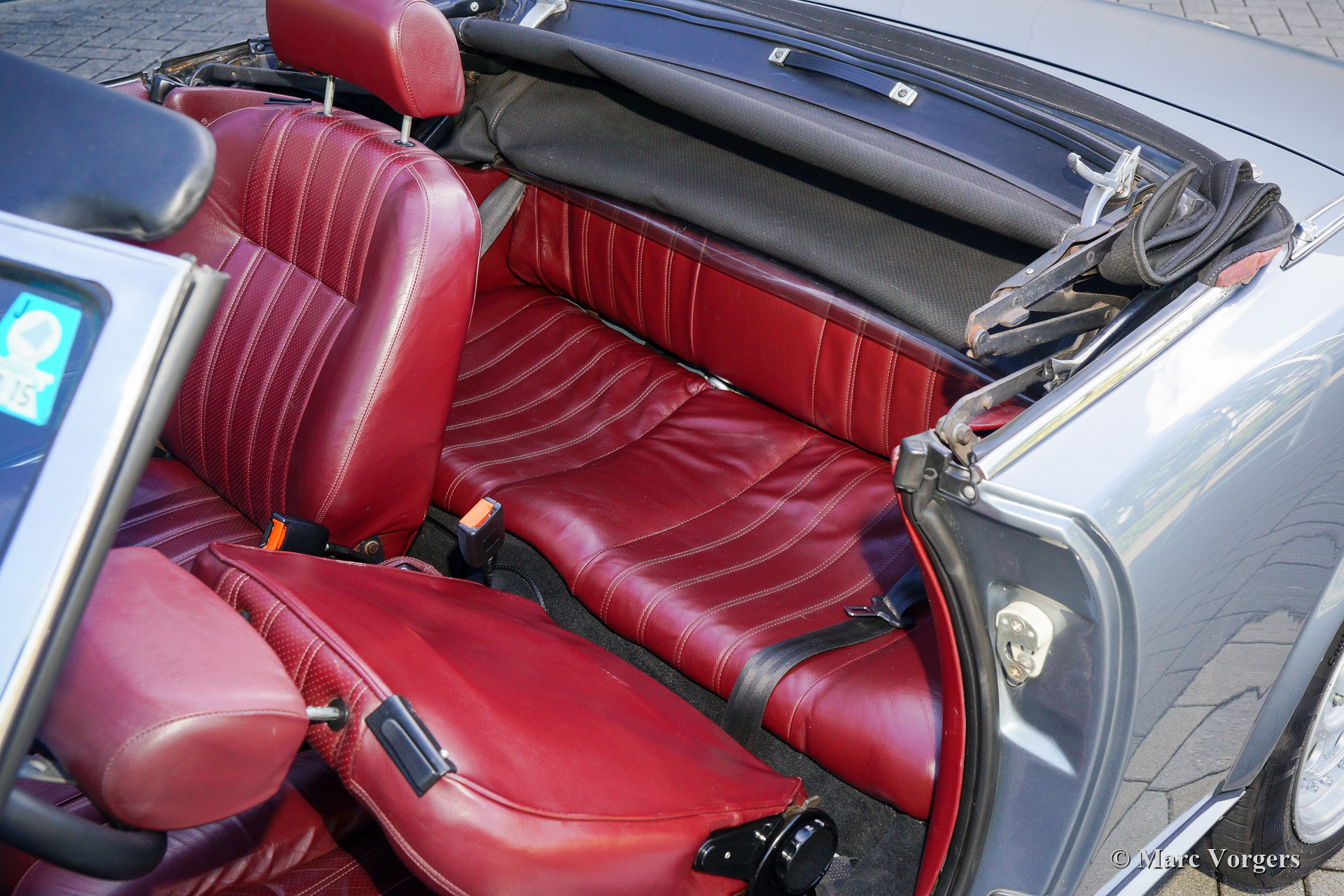 Fiat 124 Spider 2000 (CS2), année 1980. Couleur gris métallisé combinée à un intérieur en cuir rouge foncé garni de moquette noire. Capote en mohair noir. Cette magnifique Fiat 124 2000 Spider a été importée aux Pays-Bas en 2020. Début 2021, la voiture a reçu une très belle nouvelle peinture, le moteur et la boîte de vitesses furent révisés, les freins furent révisés et la suspension fut légèrement abaissée. De nouveaux carburateurs Weber IDF40 furent installés, qui ont été réglés avec précision sur un dynamomètre. De plus, les pare-chocs standard furent supprimés et remplacés par des pare-chocs de style Abarth, de nouvelles roues de style Abarth furent équipées de nouveaux pneus Continental 195/50 15 et un nouvel échappement en acier inoxydable fut installé. De plus, un nouveau tableau de bord fut installé, le système électrique fut remis aux spécifications d'origine et la carrosserie a reçu un traitement anti-corrosion Dinitrol. Beaucoup d'argent fut récemment investi pour mettre cette fantastique Fiat 124 2000 Spider en parfait état ! Tout est à jour et la voiture peut être appréciée au maximum par un nouveau propriétaire. La voiture roule, gère et sonne superbement ! Le compteur kilométrique affiche actuellement 74,166 kilomètres. La voiture est livrée complète avec des factures décrivant tous les travaux effectués et les pièces installées. Un document de test dyno est également présent. C'est une fantastique Fiat 124 Spider 2000 en parfait état !