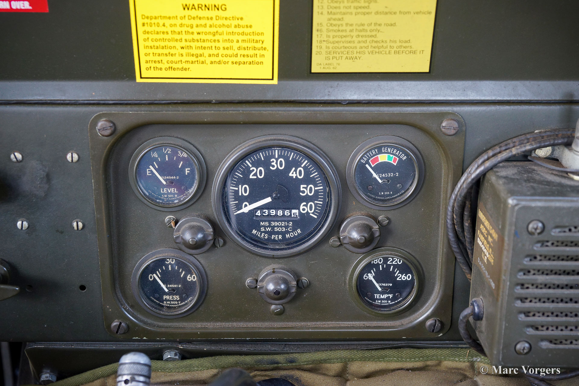 Ford MUTT M151 A2 ¼-Ton, 4×4 « JEEP », année 1970. Ce fantastique ford MUTT US Army « JEEP » est le successeur du légendaire Willy's M38 « JEEP », le M151 a été présenté en 1959. L'abréviation MUTT signifie pour « Military Utility Tactical Truck ». Ce magnifique exemple fut importé aux Pays-Bas en 1993, l'automobile a parcouru 44 000 milles depuis l'origine. Cette Ford « JEEP » fut parfaitement entretenue et révisée au fil des ans. Le propriétaire actuel a conduit la voiture très régulièrement, et presque quotidiennement dans des conditions estivales. Il a investi dans une meilleure insonorisation et dans une fiabilité accrue. Un dossier contenant les factures décrivant les travaux effectués sur la voiture est présent. Le Ford MUTT M151 A2 est doté d'une suspension indépendante qui offre beaucoup plus de confort que son prédécesseur M38. La M151 A2 est la version améliorée qui a été introduite en 1968. Cette Ford MUTT roule parfaitement, le puissant moteur à essence de 2300 cm3 (71 ch et 178 Nm de couple à 1800 tr/min) fonctionne en douceur et en silence, la boîte de vitesses passe superbement et les freins sont puissant. Cette Ford MUTT est livrée avec des options d'époque correctes comme un équipement météorologique vert parfait pour l'armée, une radio de communication de travail, des antennes, des lampes supplémentaires, une sirène de travail, une hache, une pelle et bien plus encore. Dans l'armée américaine, le Ford MUTT fut remplacé par le AM General HMMWV également connu sous le nom de « HUMVEE » en 1988. Ce Ford MUTT « JEEP » est un exemple très souhaitable pour les passionnés !