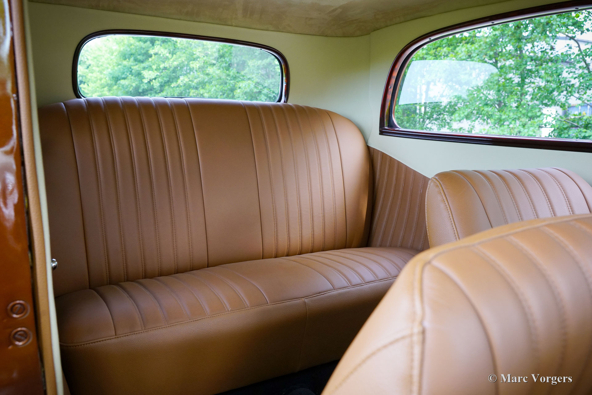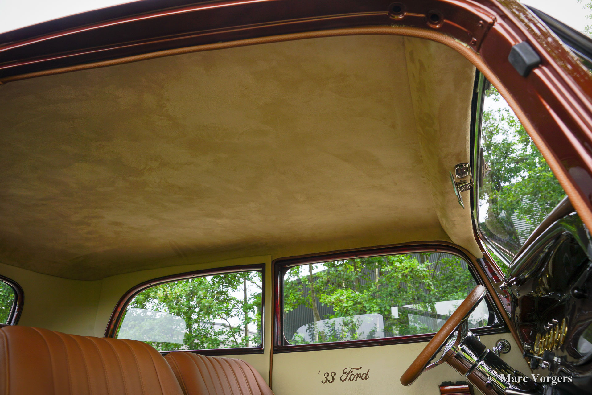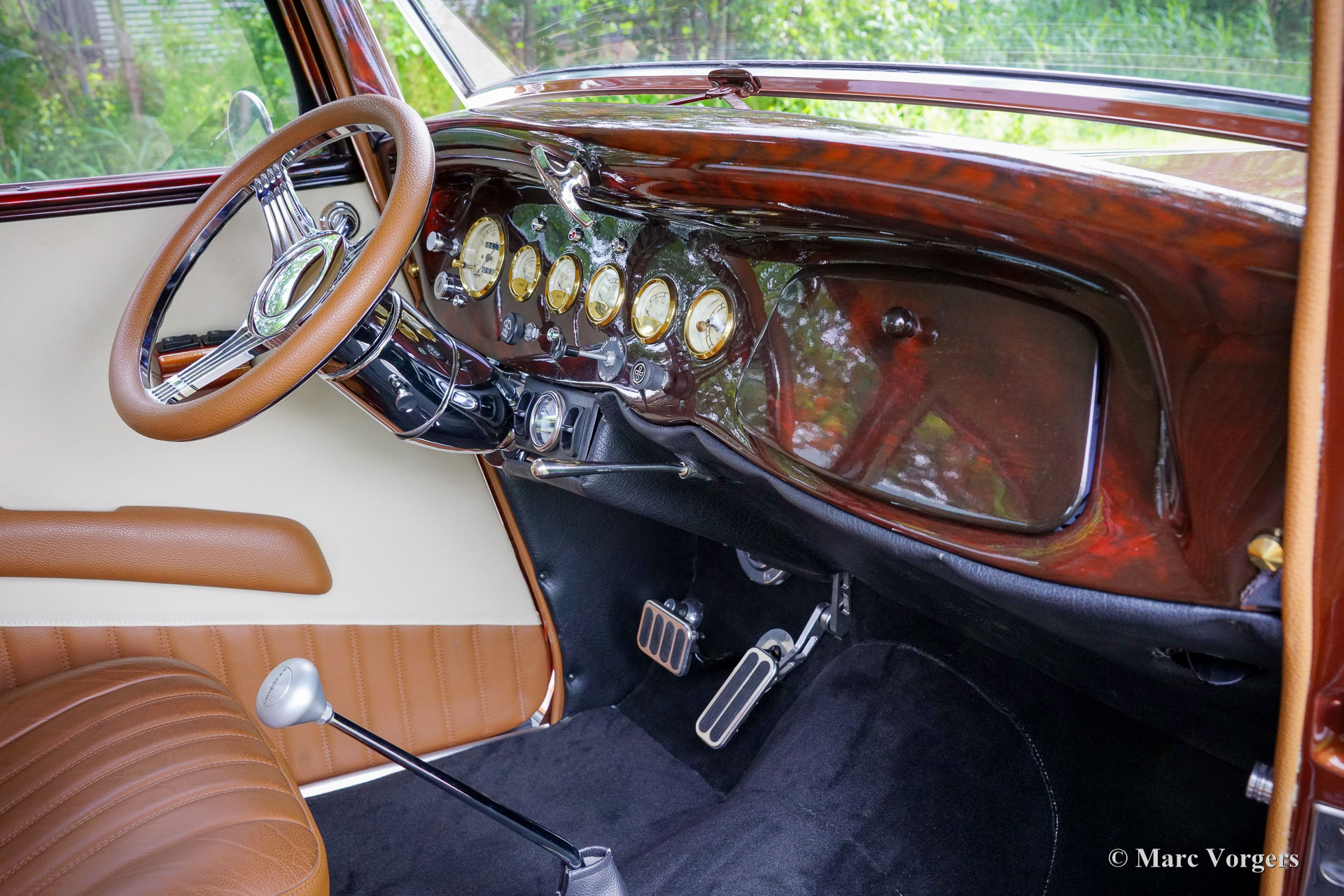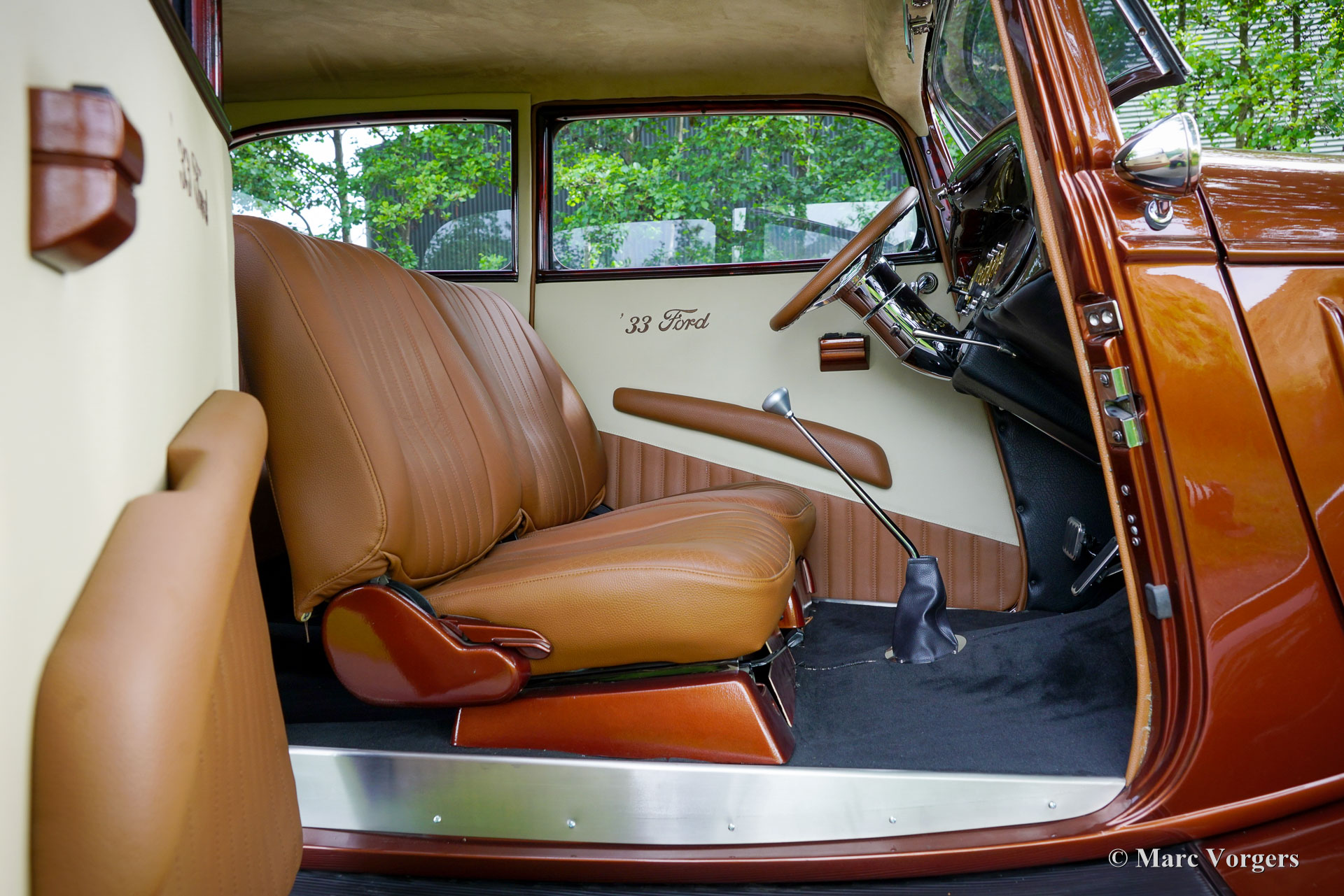 Ford Tudor V8 Street Rod, année 1933. Couleur : bronze métallisé associé à un intérieur en cuir marron cognac. Cette Ford Tudor a passé environ 30 ans dans un musée en Géorgie, aux États-Unis. En 2017, elle a été transférée aux Pays-Bas et les travaux de restauration ont débuté en 2018. Après quelques étapes, la restauration s'est achevée en 2023. Le résultat : une Ford Tudor V8 Street Rod de 1933 unique et extrêmement attrayante, réalisée avec le plus grand soin !