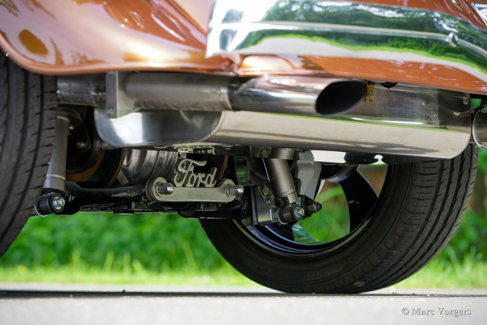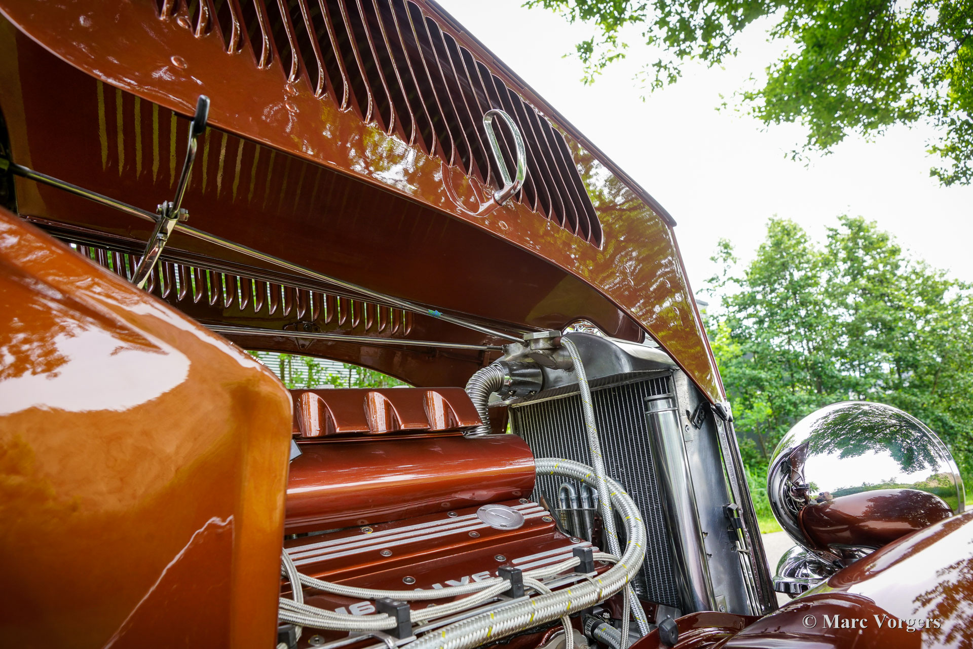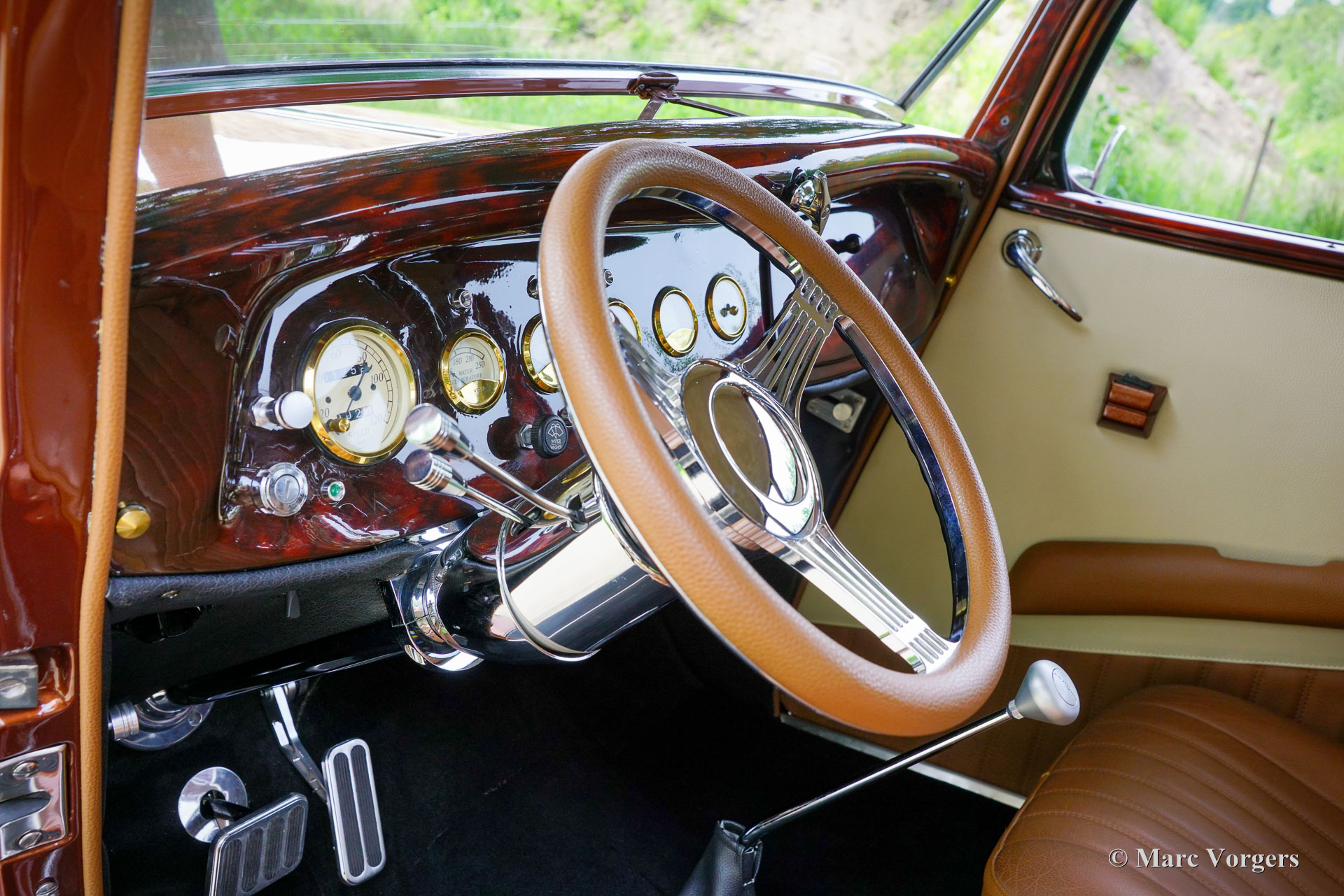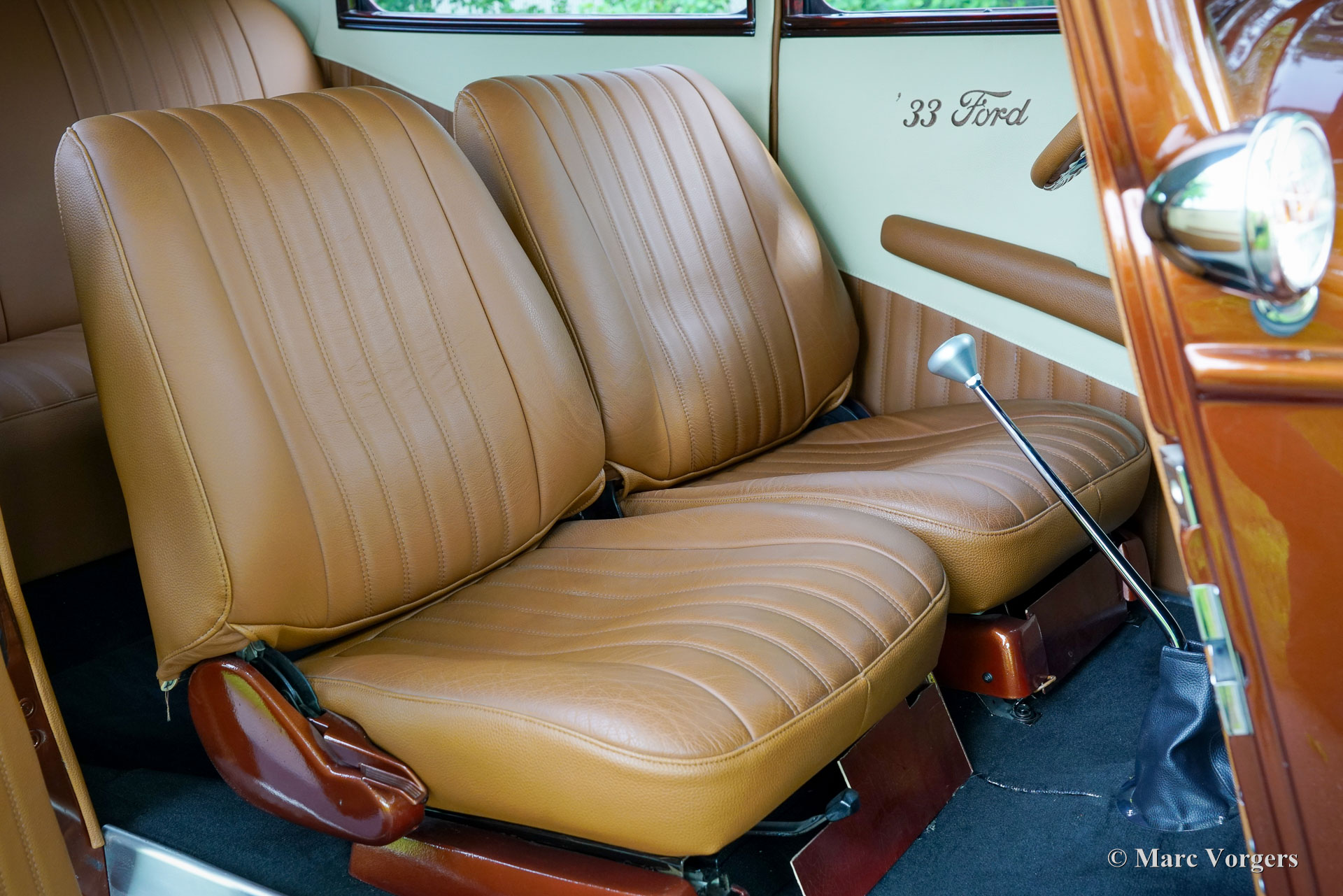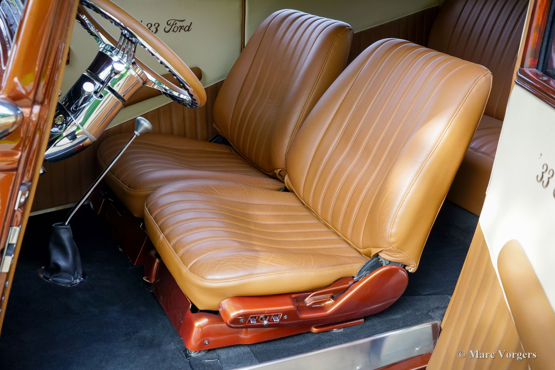 Ford Tudor V8 Street Rod, année 1933. Couleur : bronze métallisé associé à un intérieur en cuir marron cognac. Cette Ford Tudor a passé environ 30 ans dans un musée en Géorgie, aux États-Unis. En 2017, elle a été transférée aux Pays-Bas et les travaux de restauration ont débuté en 2018. Après quelques étapes, la restauration s'est achevée en 2023. Le résultat : une Ford Tudor V8 Street Rod de 1933 unique et extrêmement attrayante, réalisée avec le plus grand soin !