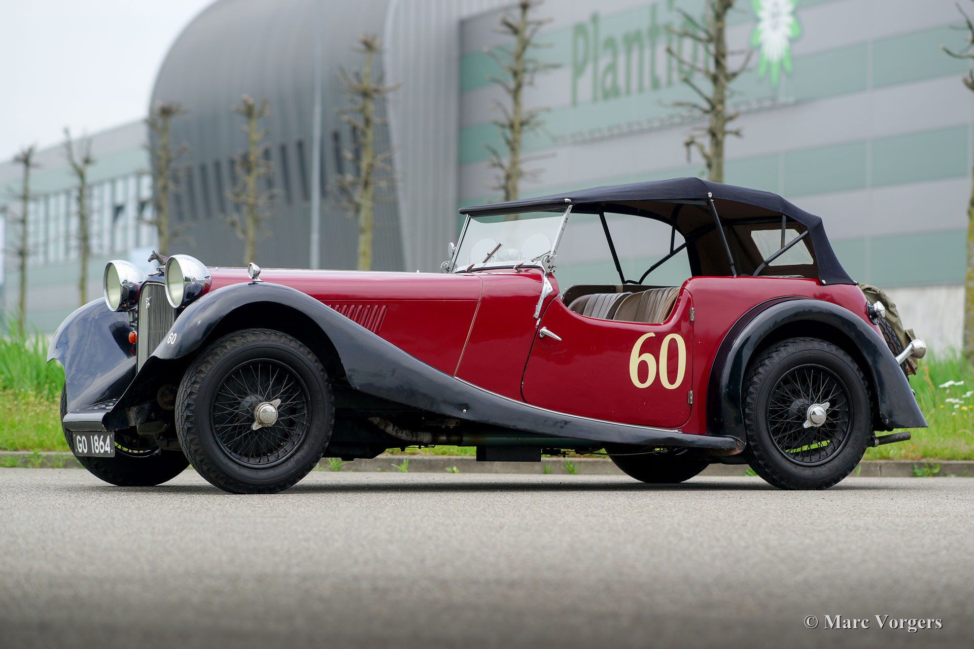 Herbert Engineering (H.E.) Nelson V8 « open tourer special », année 1931. Couleur rouge foncé (bordeaux) sur le noir combiné avec un intérieur en cuir beige et une capuche noire. Herbert Engineering est l'un des nombreux petits constructeurs automobiles britanniques pré-WW2 qui ont été oubliés depuis plusieurs décennies maintenant. Herbert Engineering fermé peu de temps après l'introduction de ce modèle. Les H.E. automobiles sont très, très rares et nous sommes fiers de vous présenter cette spéciale très intéressante. La voiture est livrée avec une histoire parfaitement documentée de plus de 85 ans ! Le plus intéressant est le fait que le second propriétaire, un M. Nelson, a échangé le moteur six cylindres en ligne original pour une moteur V8 américaine en 1934 ! Ce n'est pas la première voiture britannique dotée d'un moteur américain à huit cylindres, ce crédit revient au 1933 Railton Terraplane. Mais l'une des premières voitures britanniques (et spéciales) équipées d'un moteur V8 américain ! Le moteur est un V8 Ford à « flat-head » de 3,6 litres qui est monté très bas dans le châssis ! Ce châssis est déjà « underslung » à l'arrière (essieu monté sur le châssis). Le rapport final a également été revu à la hausse et les freins mécaniques à câble furent remplacés par un système hydraulique. Récemment, le moteur fut équipé de nouvelles culasses à haute compression et d'allumage électronique. Ce H.E. Nelson V8 spécial semble certainement utile, aussi avec le capot érigé ! Le capot forme presque la moitié de la longueur de la voiture ! C'est une spéciale très remarquable mais rude dans le détail. Un super projet pour l'amateur ! L'automobile est actuellement enregistrée en Royaume-Uni.