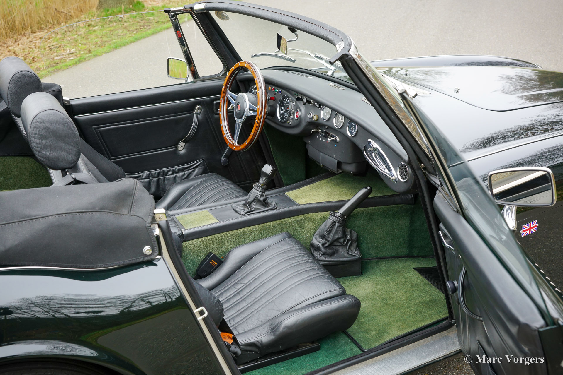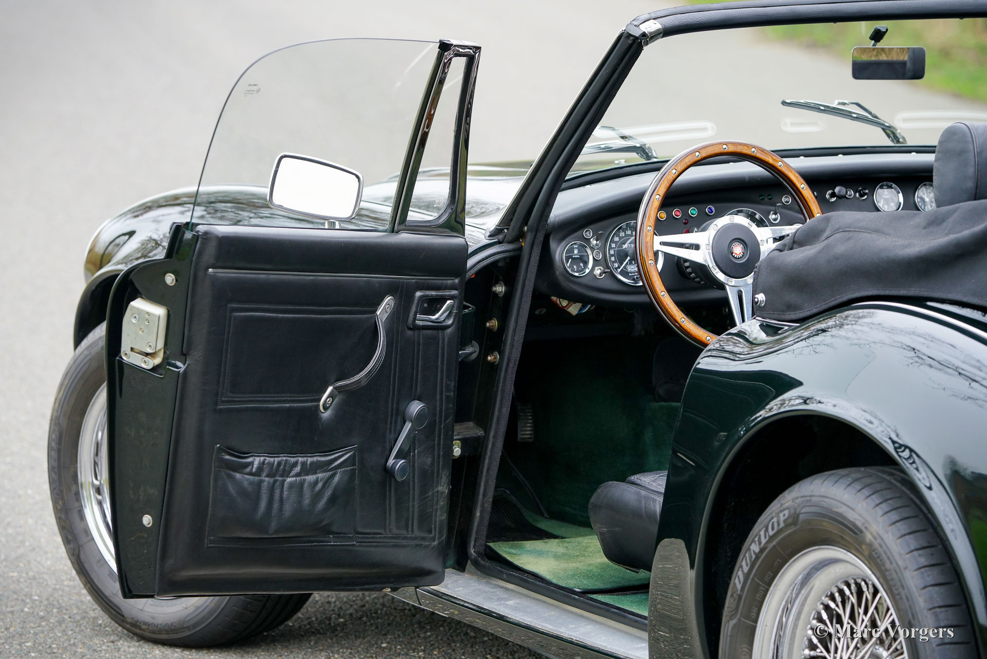 Cette magnifique HMC Mark IV de 1998, numéro de production 0128, numéro de châssis SA904943GWGLT0128 et numéro de moteur 47A08805B, provient de son premier propriétaire. Sa carrosserie est peinte en vert foncé « racing green » (BMW 289), assortie à un intérieur tout cuir noir et à une moquette verte. Le premier propriétaire a parcouru 58 750 kilomètres inoubliables à bord de cette fantastique voiture de sport. L'expérience de conduite est véritablement unique. Quiconque connaît l'Austin-Healey 3000 des années 1960 sera stupéfait : la HMC Mark IV est une véritable réincarnation moderne de cette icône classique. Une fois installé à bord, on remarque immédiatement le luxe sportif de l'intérieur tout cuir, y compris le tableau de bord et les panneaux de porte. Les sièges offrent un excellent maintien et la position de conduite représente une nette amélioration par rapport au modèle original des années 1960. Au démarrage, point de hurlement du six cylindres en ligne de 3 litres, mais le grondement d'un V8 de 3,9 litres développant 190 ch – le même bloc légendaire que celui utilisé dans la Morgan +8 et la TVR Série S. Avec un poids de 1 200 kg, la HMC Mark IV offre des performances impressionnantes. Son couple généreux de 305 Nm se fait particulièrement sentir lorsque la « grande main » propulse la voiture de 0 à 100 km/h en 6,1 secondes. Dotée d'une suspension indépendante sur les quatre roues et de freins à disque, elle offre une tenue de route et un freinage exceptionnel. Ce magnifique exemplaire fut soigneusement conservé à l'abri, entretenu et révisé, et ne présente que de légères traces d'utilisation. Il représente une rare opportunité d'acquérir une HMC Mark IV exclusive et remarquable.