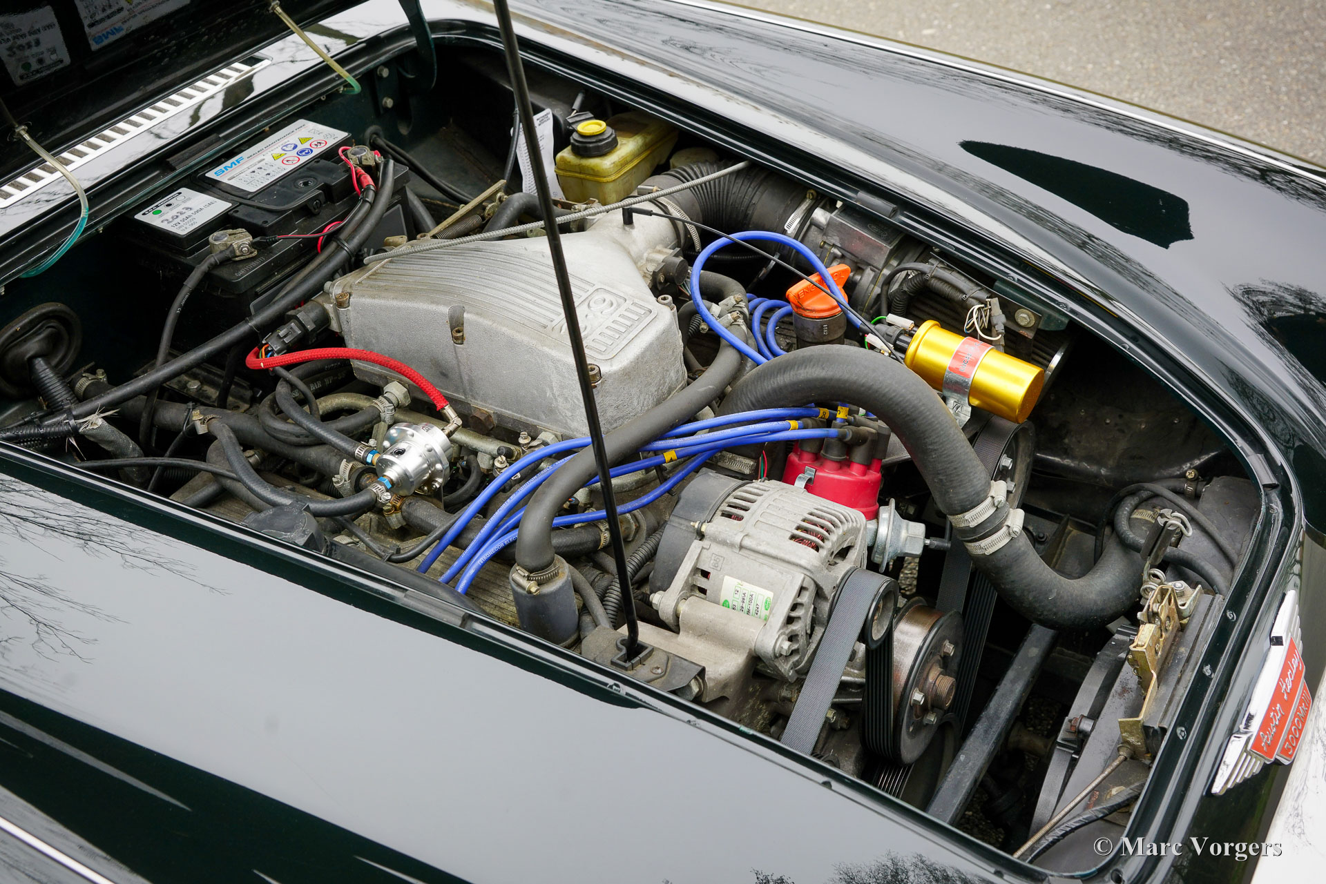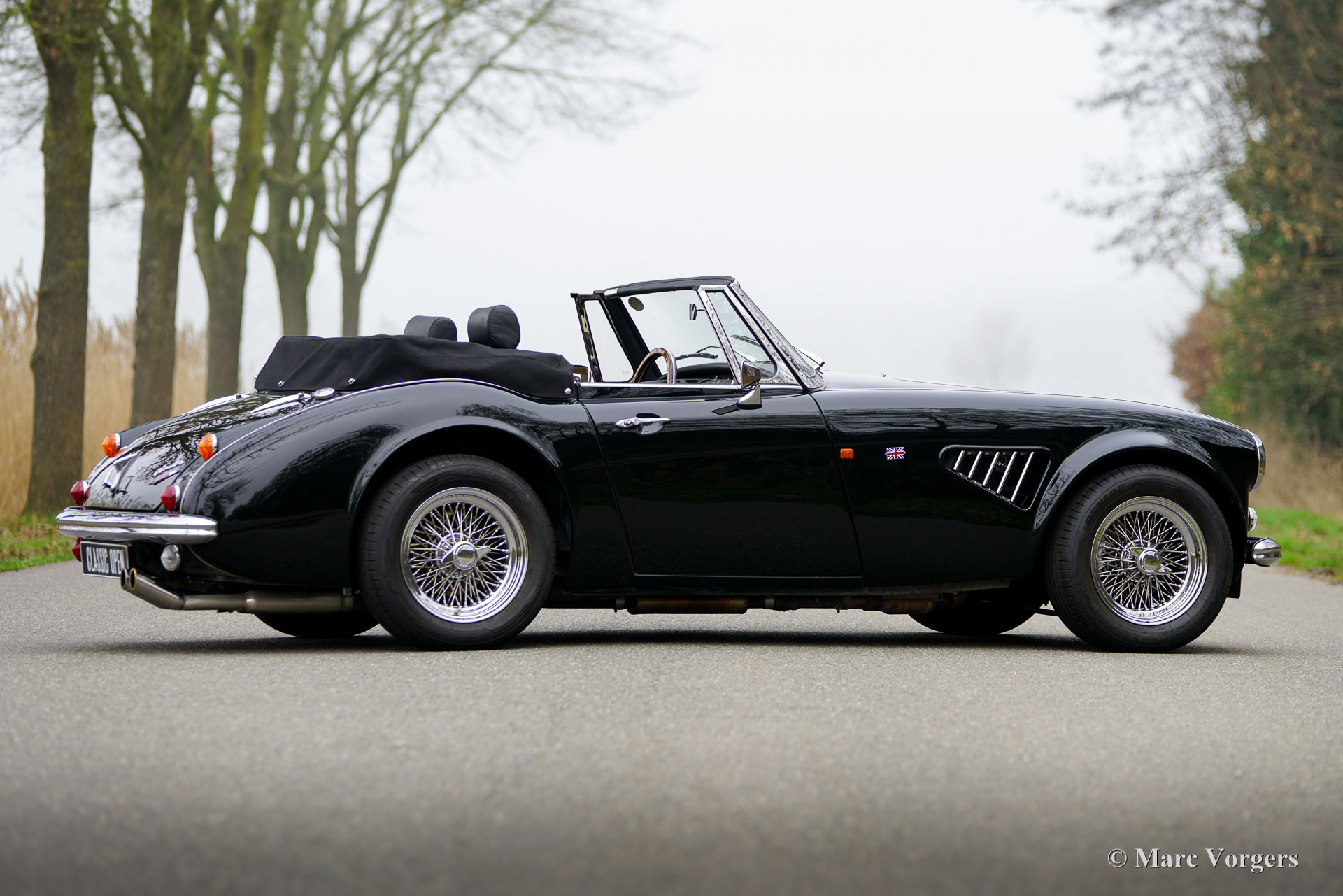La HMC Mark IV est un roadster britannique fabriqué à la main, inspiré de la classique Austin-Healey 3000 Mk III (BJ8). Elle est dotée d'un châssis tubulaire moderne et d'une transmission contemporaine, tout en conservant la silhouette et le caractère inimitables de la Big Healey d'origine. Son puissant moteur Rover V8 de 3,9 litres lui confère des performances exceptionnelles et une sonorité envoûtante. La carrosserie est réalisée en plastique renforcé de fibres de verre et de Kevlar, avec des panneaux extérieurs en composite polymérisé sous pression, alliant légèreté et robustesse. Des structures absorbant les chocs sont intégrées aux pare-chocs, aux montants de porte, aux bas de caisse et à la cloison pare-feu. À l'intérieur, la Mark IV conjugue savoir-faire traditionnel et ergonomie optimisée pour un confort accru. Seuls 170 exemplaires furent produits sur commande, garantissant ainsi l'unicité de chaque voiture et une exclusivité absolue.