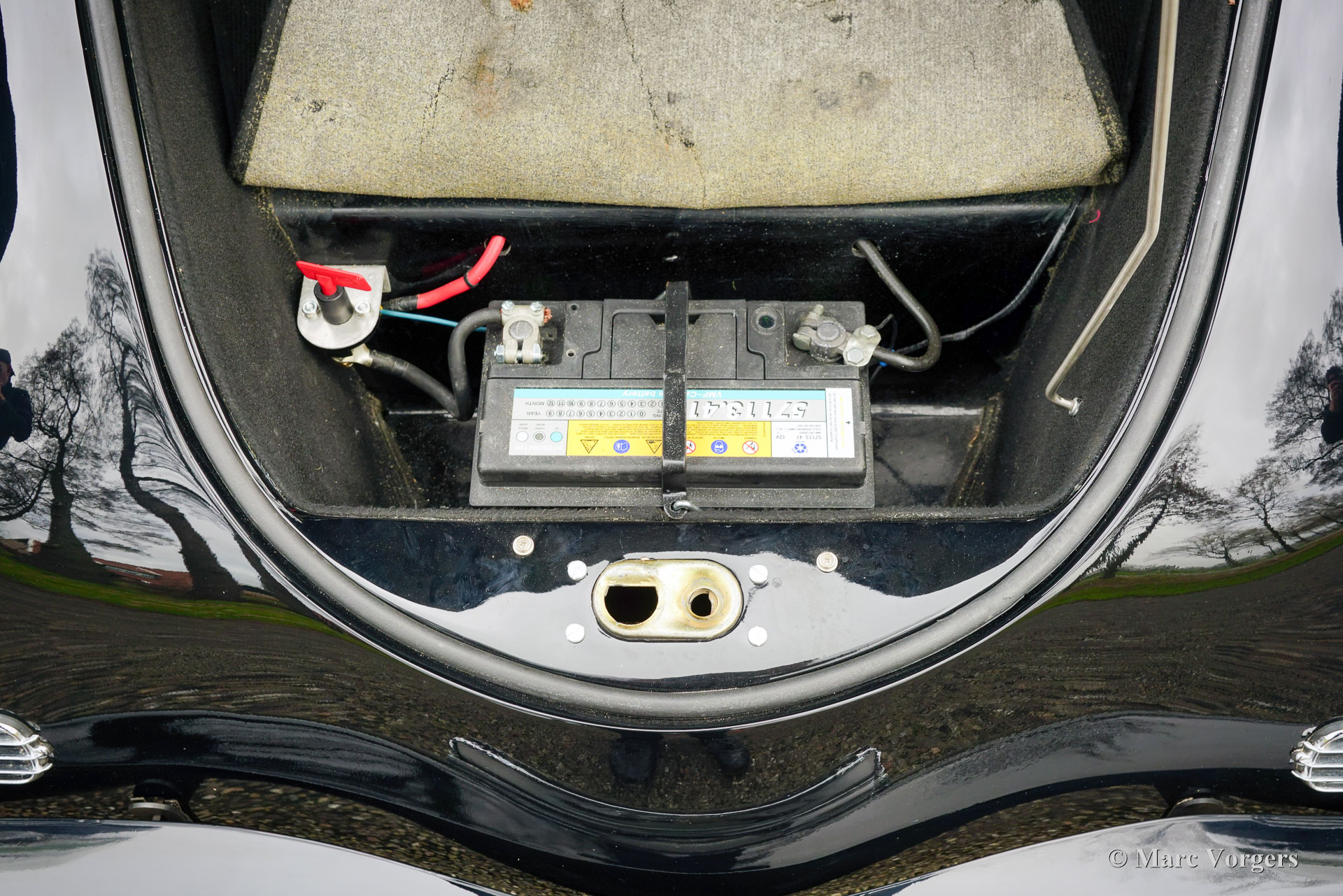 The Porsche 356-001 was built using a chassis with tubular framework covered with aluminium body panels. Mechanically the car was based on Volkswagen components. The Porsche 356-001 was equipped with a center mounted engine located just in front of the rear axle.