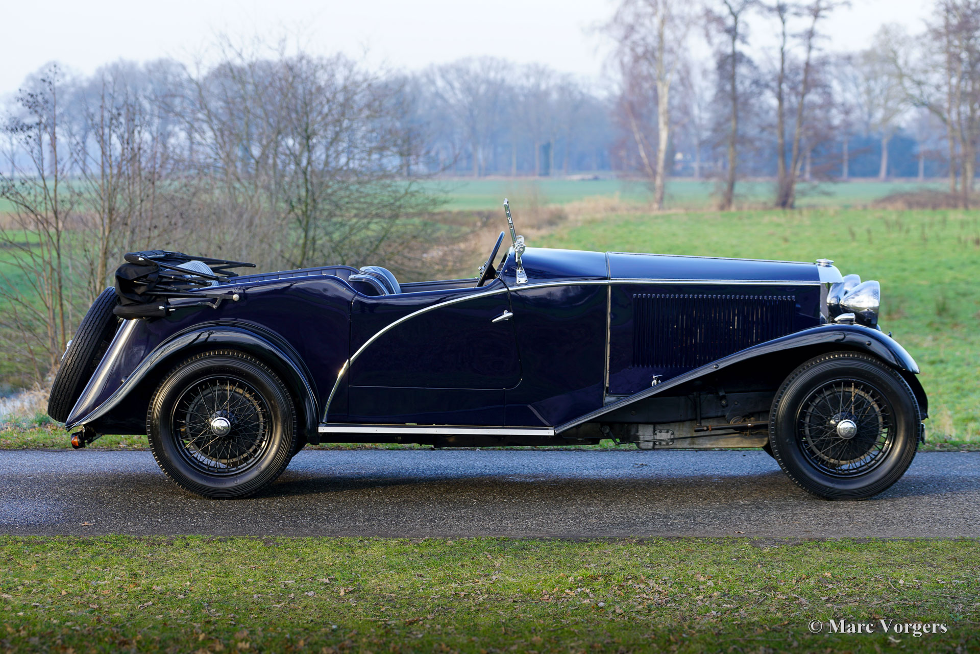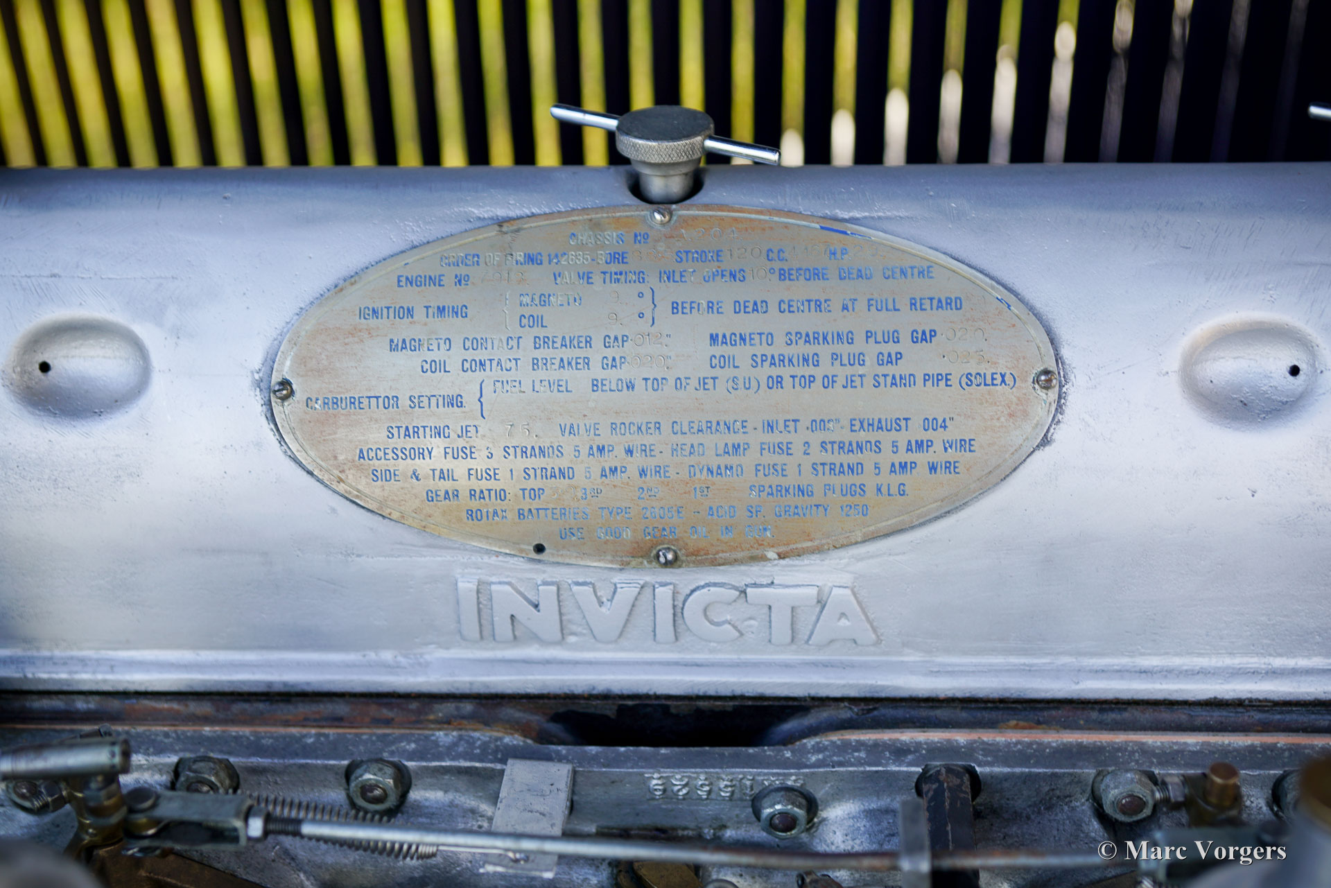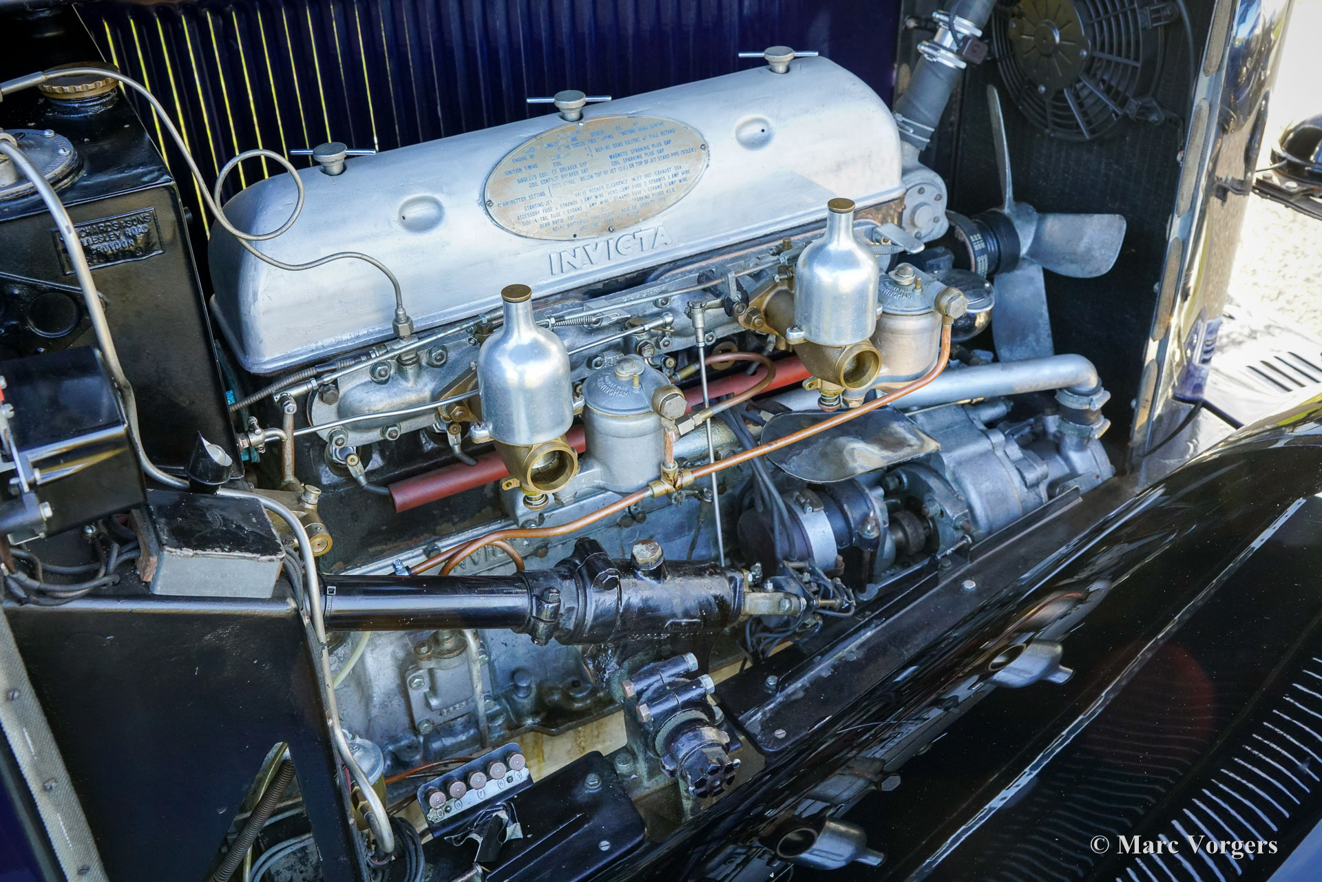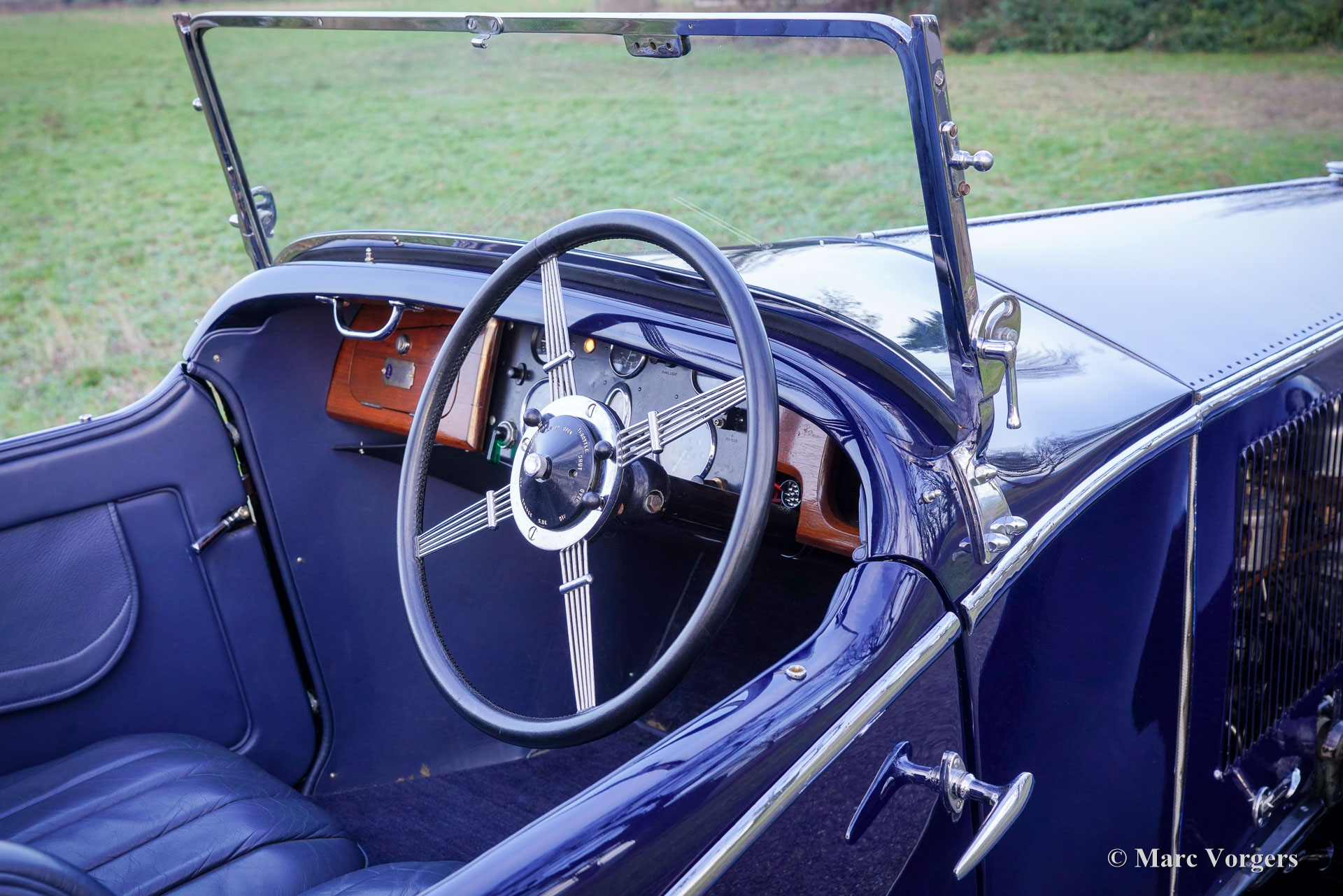 Invicta 4½ Litres (série A), année 1931 (première immatriculation le 2 janvier 1931, année de construction : 1930). Numéro de châssis A204, numéro de moteur 7918. Couleur extérieure : bleu Oxford, châssis noir et roues à rayons noires. Intérieur en cuir bleu, moquette bleue et capote en mohair noir. Dans les années 1920, Invicta s’est forgé une réputation d’excellence en matière de performances et de tenue de route. Avec l’introduction du modèle 4½ Litres, une légende est née. Ce modèle haut de gamme, très onéreux, était réputé pour ses performances sportives et son accélération exceptionnelle. L’Invicta 4½ Litres fut produite en très petite série ; les archives de l’usine et des clubs indiquent qu’environ 50 exemplaires furent construits au total. La production s’est déroulée entre 1930 et 1933, et le modèle fut proposé en plusieurs versions, dont le châssis bas et, plus tard, le type S. Les carrosseries étaient fournies par une variété de carrossiers de renom tels que Vanden Plas, Corsica, Lancefield et autres, ce qui explique certaines variations dans les chiffres rapportés. Cette production extrêmement faible, combinée à la conception avancée du modèle et à son pedigree en compétition, explique la réputation de l'Invicta 4½ Litres comme l'une des voitures de sport britanniques les plus rares et les plus recherchées de l'avant-guerre. Le modèle 4½ Litres présenté ici, châssis A204, conserve sa carrosserie d'origine de tourer quatre places décapotable signée Corsica de Londres. Restaurée par le passé, elle a conservé de magnifiques détails d'origine. Sous le capot, qui abrite le puissant moteur six cylindres en ligne Meadows de 110 ch, on trouve également le système de lubrification centralisée d'origine et un ventilateur de refroidissement supplémentaire. La boîte de vitesses à quatre rapports est associée à un overdrive Tim Payne. Le tableau de bord présente une série de superbes instruments d'origine (dont une jauge à essence très spéciale) et un instrument d'un modèle plus récent. L'intérieur fut récemment refait à neuf et est en excellent état. Cette rarissime Invicta 4½ litres série A provient d'une collection privée. La voiture roule parfaitement et est vendue avec un historique complet. Cette Invicta 4½ litres Corsica Tourer réunit toutes les qualités recherchées : performance, style et rareté.