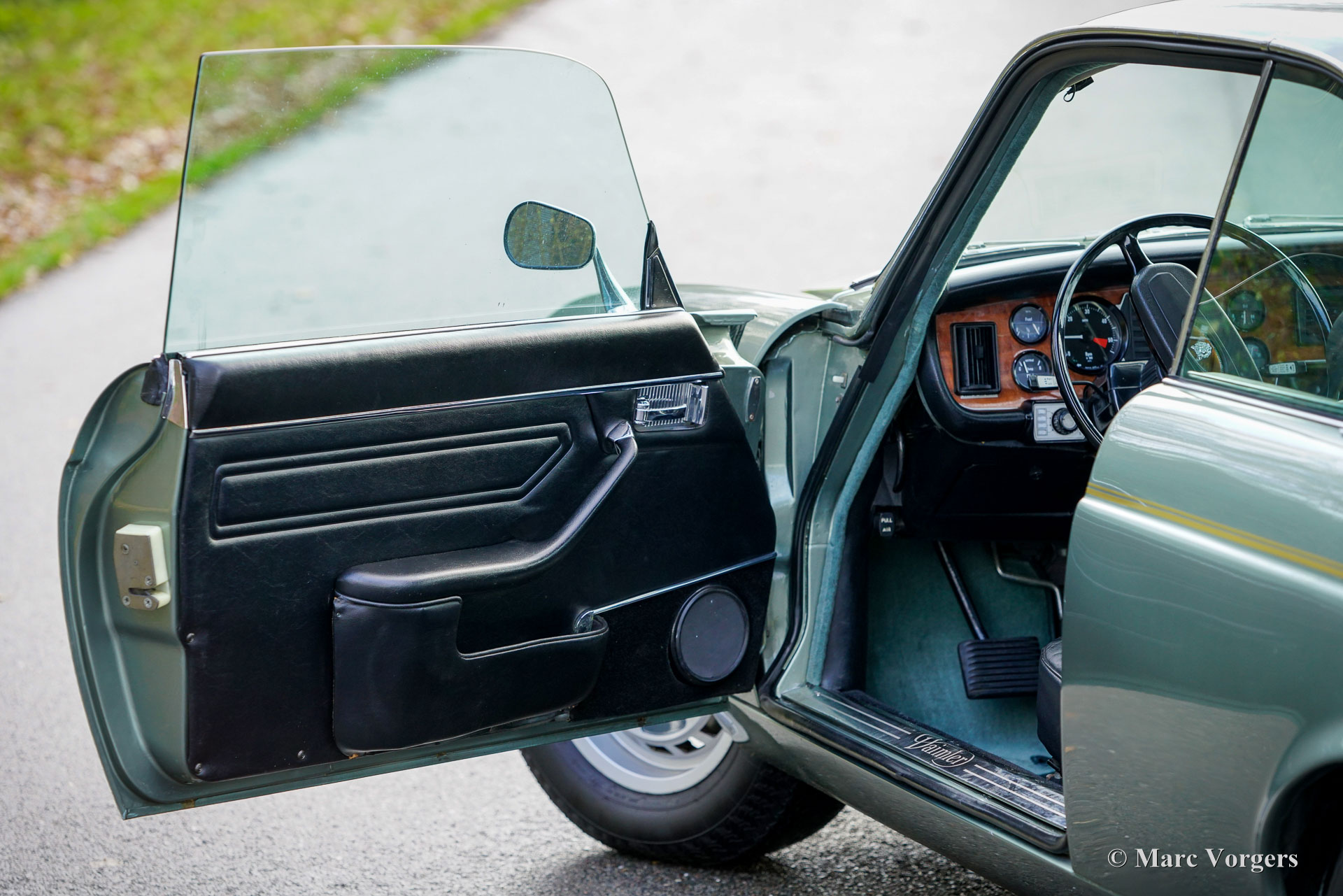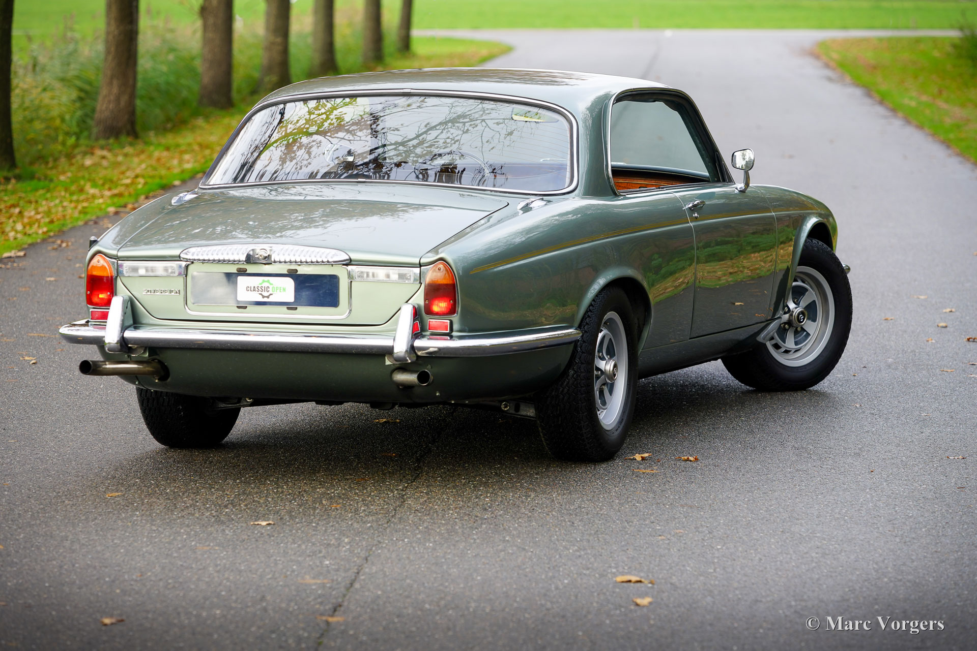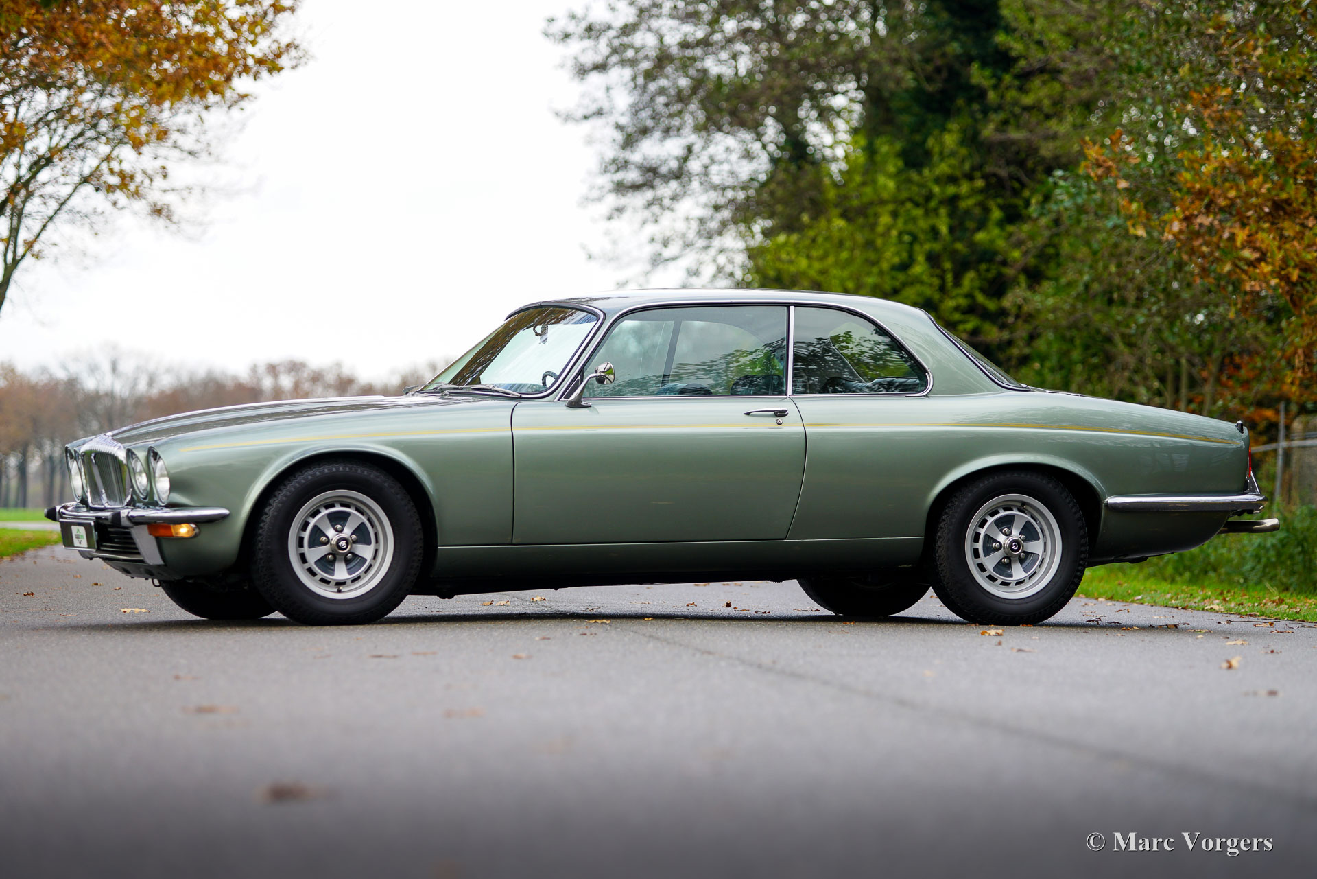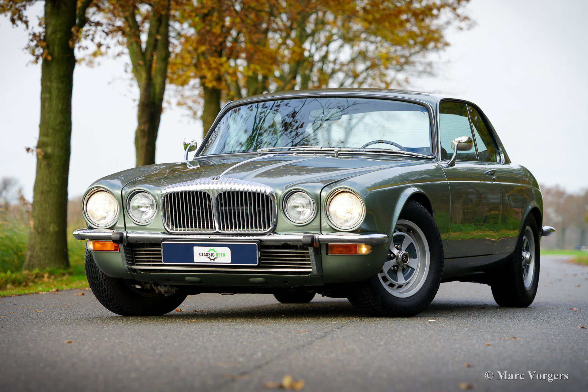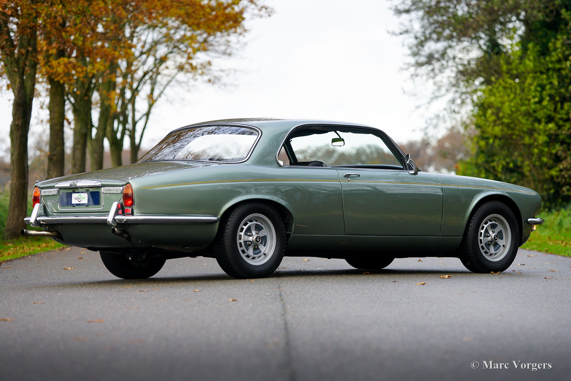 Jaguar XJ6 4,2 litres Coupé, année 1975. Couleur vert pâle métallisé combinée à un intérieur en cuir noir, un tapis noir et des tapis vert pâle. Cette belle Jaguar XJ6 Coupé (XJ-C) fut restauré détaillée il y a 15 ans, des photos de la restauration sont disponibles. Lors de la restauration, il a été décidé d'utiliser divers détails de la version Daimler, tels que la calandre et divers insignes et logos, et le revêtement de toit en vinyle noir n'a pas été appliqué. Seuls 6 500 exemplaires de cette emblématique Jaguar XJ6 Coupé furent construits. Le moteur 6 cylindres de 4,2 litres sonne bien et développe environ 170 ch. Les roues arrière sont entraînées par une boîte de vitesses automatique Borg Warner aux changements de vitesse parfaits. De plus, cette automobile de luxe est équipée d'une direction assistée, de freins assistés, de vitres latérales à commande électrique et de la climatisation. La climatisation fut renouvelée et fonctionne à merveille ! La voiture est équipée de belles jantes d'origine de 15 pouces chaussées de pneus Dunlop. L'ensemble d'outils et le cric d'origine sont présents. Cette Jaguar est dotée d’un vaste historique d’entretien. La voiture a récemment subi une révision majeure ; Ce magnifique coupé est prêt à être apprécié par un fier nouveau propriétaire !