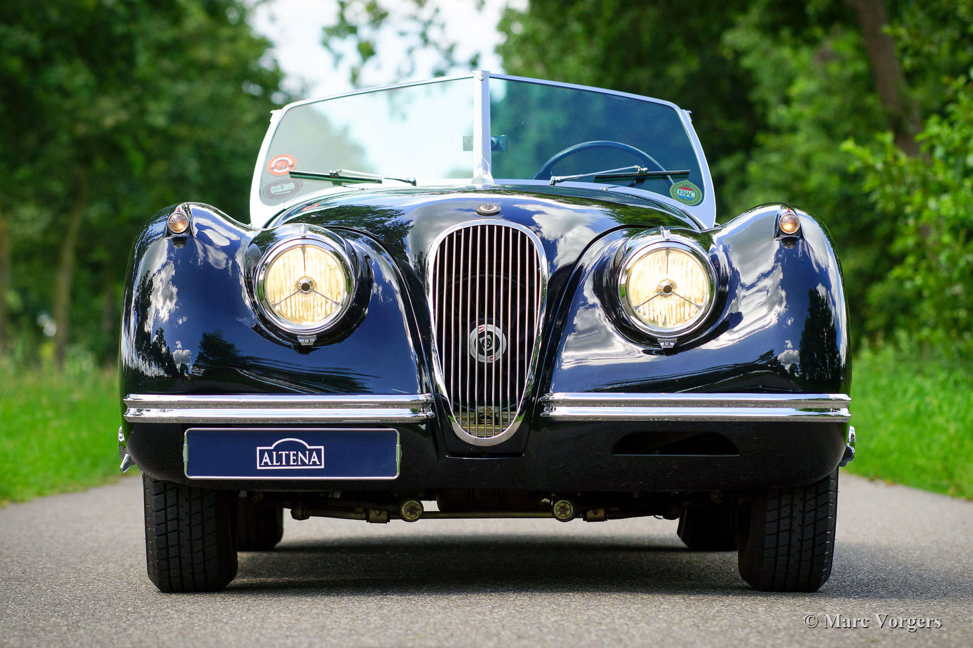 Jaguar XK 120 SE OTS, année 1954. « Matching numbers », un document Heritage est présent pour confirmer la. Il s'agit d'une version SE (Special Equipment) originale ! Couleur noire combinée avec un intérieur en cuir rouge et un tapis rouge. Capote et couvercle tonneau en mohair noir. Cette magnifique Jaguar XK 120 a été vendue neuve aux USA. En 2010, la voiture fut expédiée de Floride aux Pays-Bas. Aux États-Unis, la voiture comportait des plaques d'immatriculation avec XK 120 ! Après l'arrivée de la voiture aux Pays-Bas, une restauration complète fut commandée. Sur les photos de la voiture avant la restauration, on peut voir que la restauration a commencé à partir d'une base solide. Dans les années 2010-2012, cette XK a été restaurée à la perfection par un spécialiste de la marque. La carrosserie fut restaurée à partir du métal nu et elle montre un ajustement fantastique des panneaux. Tout a été restauré, révisé et / ou renouvelé. Un reportage photo complet de la restauration est présent. Après la restauration, la voiture est restée sous les soins et le service du spécialiste Jaguar de la restauration. Toutes les factures couvrant les années 2012-2020 sont présentes. Depuis l'achèvement de la restauration, le propriétaire a conduit la voiture avec parcimonie. Cette magnifique Jaguar XK 120 SE OTS (roadster) est en superbe état TOP et la voiture roule et se manie parfaitement ! C'est un spécimen de première classe sur lequel les coûts et les efforts furent épargnés pour atteindre la perfection. Un XK 120 hautement souhaitable pour les amateurs / collectionneurs exigeants!