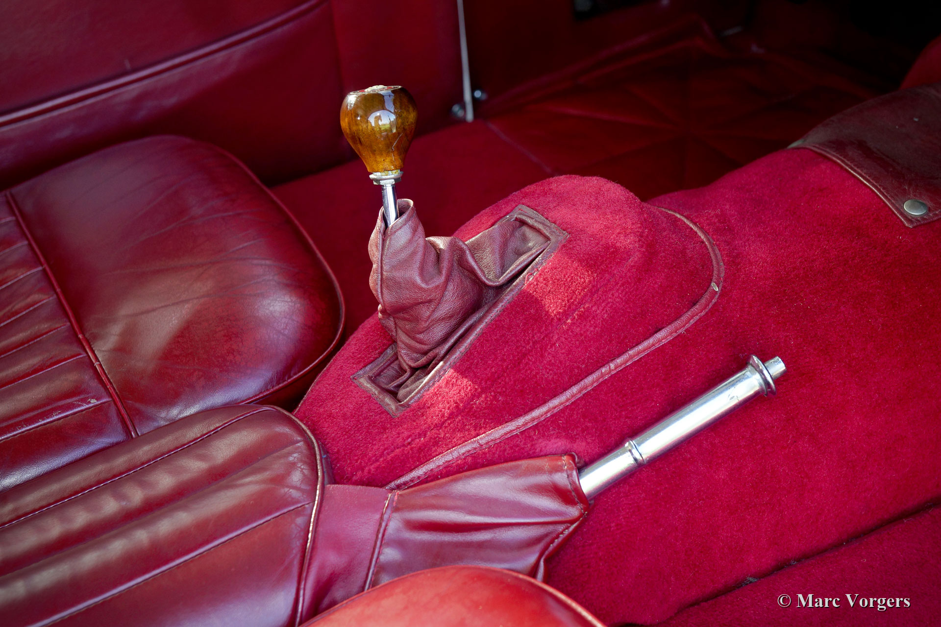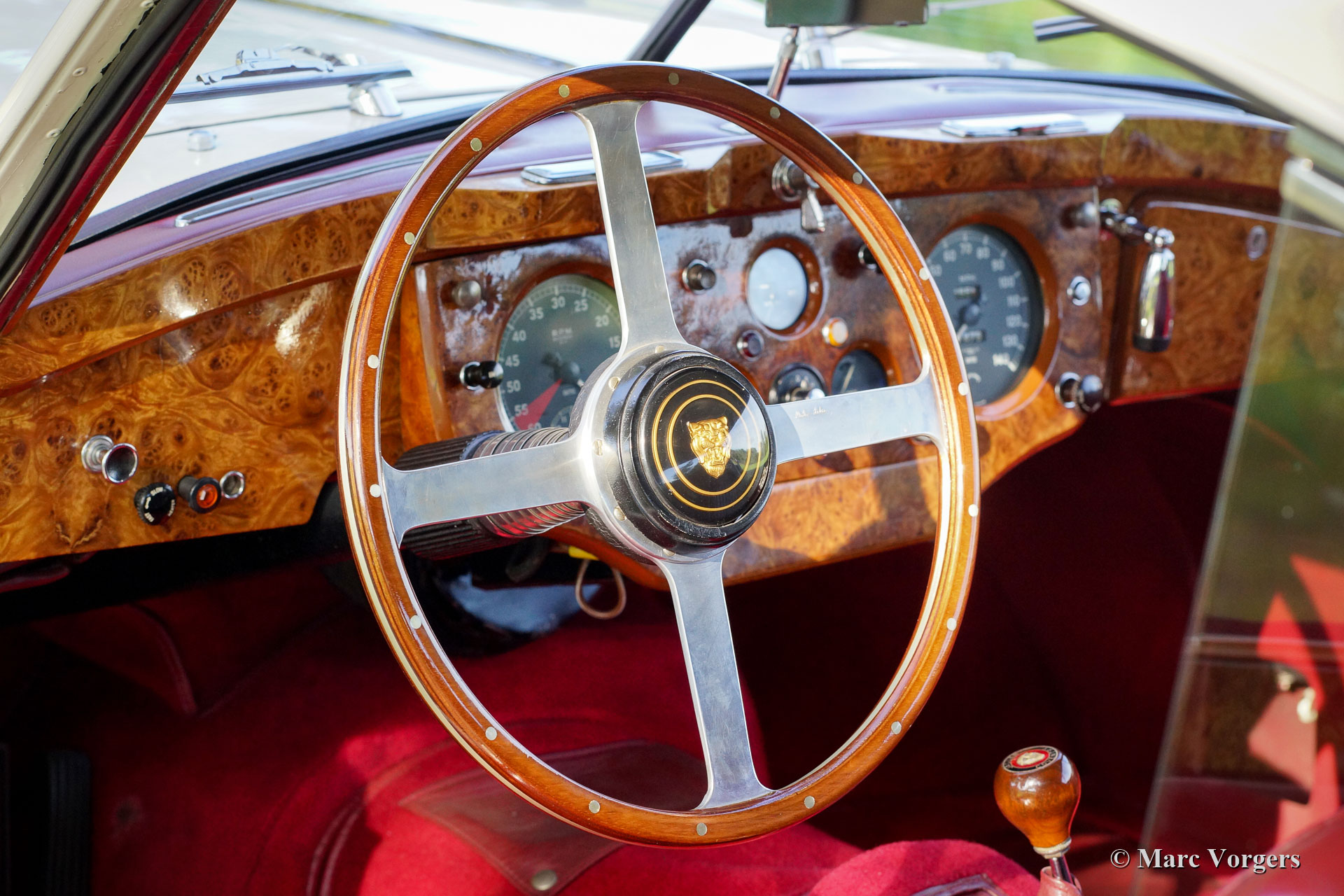 The Jaguar XK 140 replaced the famous XK 120 and was brought onto the market in 1954. The XK 140 was an evolution of the XK 120 with some visual differences and technical improvements. The handsome and dynamic features remained largely unchanged. New was the grille, which counted fewer vertical bars; the rear lights were larger, the bumpers were thicker, and the front indicators, which were placed on the front of the front wing. The important technical improvement was that the XK 140 was provided with a rack and pinion steering which greatly improved steering and driving.