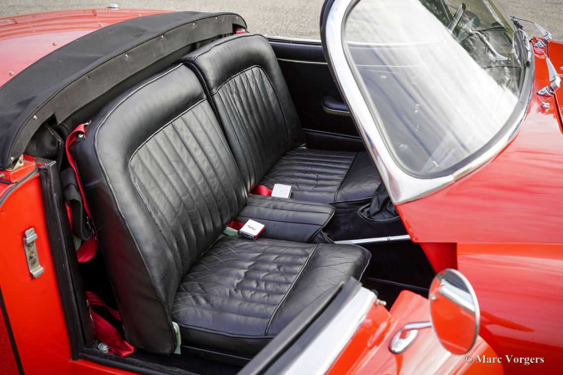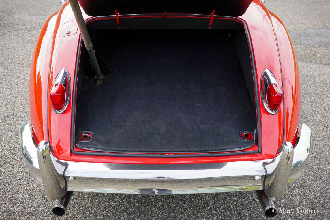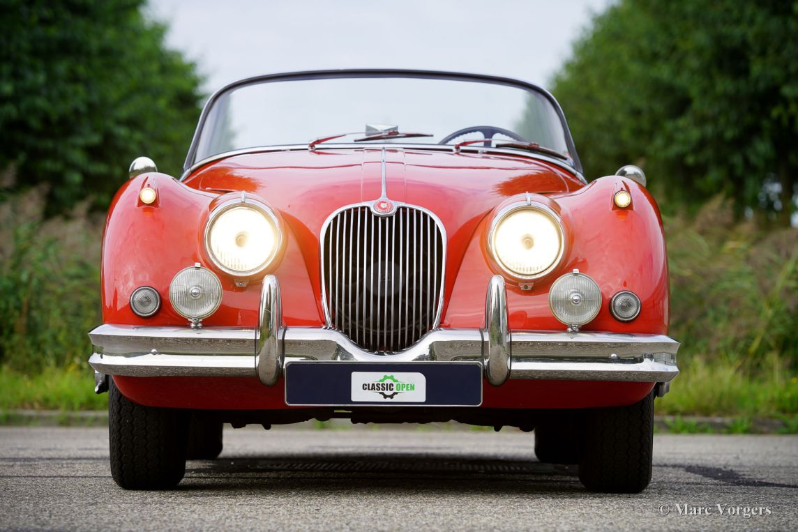 Jaguar XK 150 3,4 litres OTS (roadster), année 1959. Couleur rouge Carmen associée à un intérieur en cuir noir garni de moquette noire. Capote et couvre-caisse noirs. Cette glorieuse Jaguar XK 150 OTS (Open Two Seater, également appelée roadster aux USA) a été vendue neuve aux États-Unis. La voiture fut importée aux Pays-Bas en 1986 et achetée par le dernier propriétaire en 2001. L'historique (d'entretien) est entièrement documenté depuis 2009. Un certificat Heritage est présent et les informations indiquent qu'il s'agit d'une Jaguar « matching number » ! L'automobile est en très bon état et tout est à jour. La carrosserie présente un ajustement parfait des panneaux, une belle peinture et de magnifiques garnitures chromées. Le moteur six cylindres XK fut révisé en 2014 par un spécialiste aux Pays-Bas. En 2016, la direction assistée électrique EZ a été installée. Les 215 chevaux au freinage sont transmis aux roues arrière via une boîte de vitesses manuelle à quatre rapports avec overdrive. Ce roadster XK 150 roule parfaitement, c'est l'un des meilleurs exemplaires que nous n’ayons jamais conduits ! La voiture présente tous les détails d'origine et présente des options souhaitables telles que le centre du tableau de bord en bois, des roues à rayons de 16 pouces chaussées de pneus Vredestein Sprint Classic, une paire de feux antibrouillard/de virage Lucas SFT576 à l'avant, des freins assistés, un allumage électronique, un ventilateur électrique, des ceintures de sécurité rouges et une radio « rétro » avec navigation par satellite. Il s’agit d’une très désirable Jaguar XK 150 OTS (Roadster) dans un état merveilleux, une fantastique voiture de conducteur classique qui apportera beaucoup de plaisir de conduite à un fier nouveau propriétaire. La Jaguar XK 150 3,4 litres OTS est une voiture rare, seuls 1339 exemplaires furent construits.