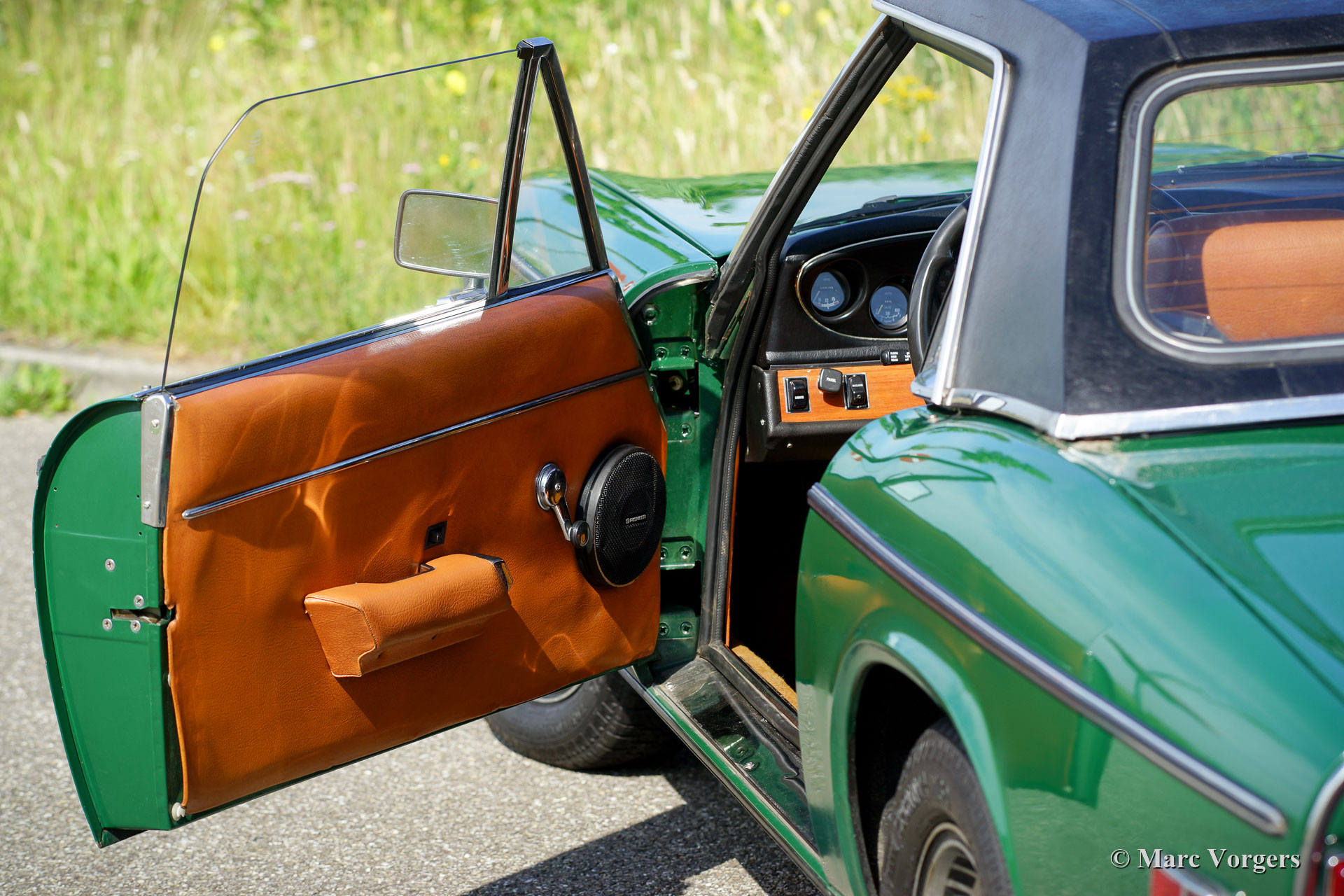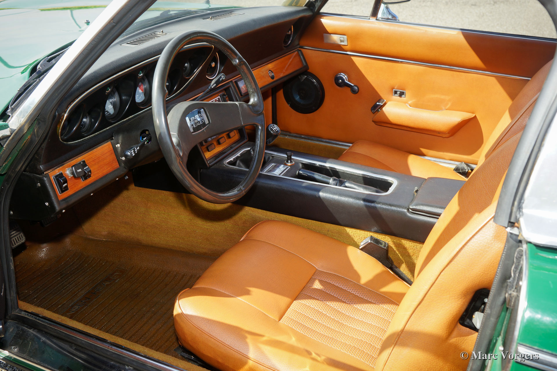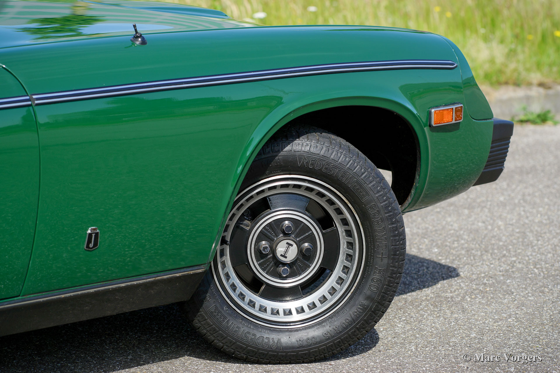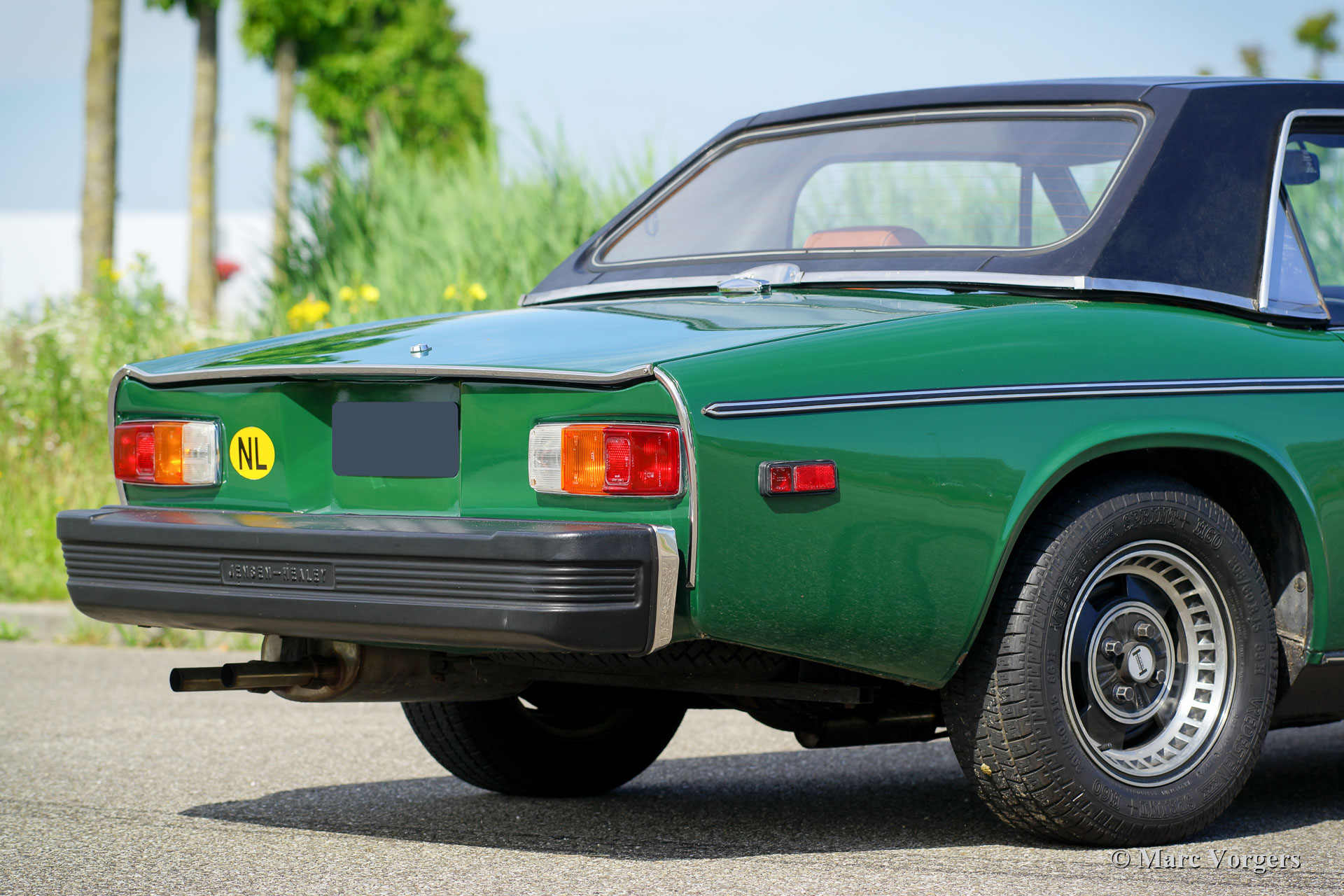 Jensen-Healey, année 1976. Couleur British Racing Green associé à un intérieur en cuir-artificiel marron cognac. La voiture dispose d'un hard-top et un soft-top noir. Ce super original Jensen-Healey provient de la série de production finale. En 1976, la voiture fut vendue neuve aux États-Unis, en 1977 l'automobile fut importée aux Pays-Bas. La voiture a parcouru 100 000 km à partir de nouveau. Cette belle Jensen-Healey est en très bon état et super originale ! L'intérieur est original et parfait, et la compartiment moteur est aussi très soigné ! Le moteur Lotus à quatre cylindres 16 soupapes de 1973 cc développe une puissance de 152 ch et donne à Jensen-Healey une performance fougueuse ! Ceci combiné avec la grande tenue de route et une boîte de vitesse à 5 vitesses fait de la Jensen-Healey une voiture de sport compétitive ! Seulement 10.000 exemplaires du Jensen-Healey ont été construits. La voiture montre tous les détails originaux, y compris les belles jantes en alliage léger.