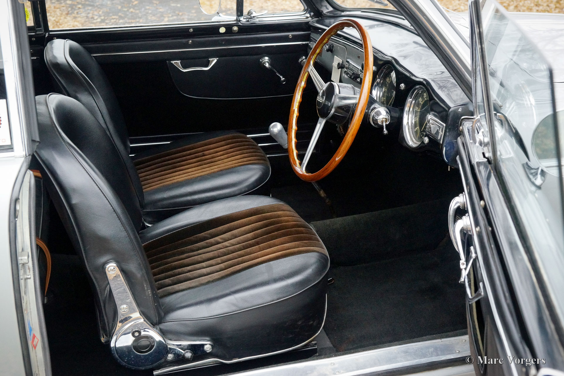 Lancia Aurelia B20 GT Série 6, 1958. Couleur argent métallisé combinée à un intérieur en cuir/tissu noir garni de moquette noire. Cette fantastique Lancia Aurelia B20 GT à conduite à droite fut vendue neuve à Bruxelles, en Belgique, et la voiture a toujours appartenu à un Belge. Le dernier propriétaire profite de cette belle automobile depuis quinze ans. La voiture fut révisée et entretenue par un spécialiste belge Lancia, ces dernières années entre autres la boîte de vitesses et la culasse furent révisées. Cette belle Lancia est équipée d'un fantastique toit ouvrant coulissant d'origine et d'un kit de réglage Nardi ultra-souhaitable composé d'une paire de carburateurs spéciaux et d'un filtre à air spécial ! Ce kit ajoute une bande sonore encore plus sportive au moteur V6 en alliage. Le propriétaire a apprécié cette Lancia sportive lors de plusieurs événements de tourisme historiques (rallyes) comme le Gran Premio Nuvolari contemporain en Italie. Cette Lancia Aurelia est en bon état, avec des signes normaux d'utilisation et d'âge (patine), et la voiture roule délicieusement. La Lancia Aurelia est une automobile historique révolutionnaire. L'Aurelia dispose d'une structure de carrosserie unitaire sans châssis séparé, et d'une boîte de vitesses « transaxle » (avec embrayage intégré) située près de l'essieu arrière pour obtenir une répartition idéale du poids. L'Aurelia est connue pour ses superbes capacités de tenue de route, à partir de la série 4, un essieu arrière De Dion fut installé, ce qui a élevé ces qualités à un niveau de perfection encore plus élevé. Cette automobile ancienne est accompagnée d'un dossier historique complet et d'une carte d'identité FIVA. Les pare-chocs d'origine sont livrés avec la voiture. Cette sportive Lancia Aurelia B20 GT est votre billet pour de nombreux événements internationaux haut de gamme de voitures classiques !