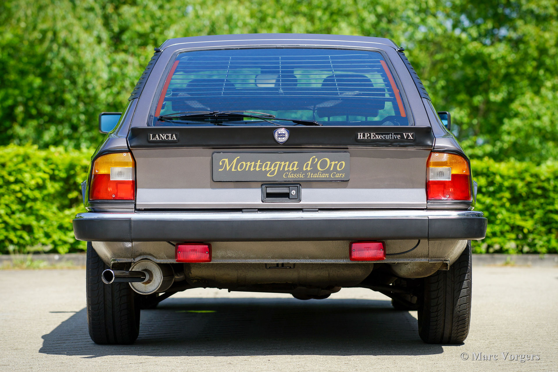 Lancia Beta HP Executive VX "Volumex", année 1983 (première immatriculation le 20 juillet 1983). Cette belle Lancia Beta HP Executive 2000 VX fut importée aux Pays-Bas en 2018. La Lancia HPE (High Performance Estate) est un break de luxe sportif, élégant et pratique. La Lancia Beta HPE fut conçue en interne par Lancia. Le HP 2000 VX fut introduit en 1983 et est le modèle HPE haut de gamme dotée d'un compresseur « Volumex » ! Seuls 2369 exemplaires du HP Executive VX furent construits. Le moteur quatre cylindres en ligne de 2 litres suralimenté développe 139 ch et 200 Nm de couple. Cet exemple est dans un bon et bel état. Le compteur kilométrique affiche 66,818 kilomètres. La voiture a été repeinte dans le passé. Sur le toit, on trouve des dépressions à peine visibles et un point de la corrosion sur le bord inférieur de l'aile avant gauche. Le compartiment moteur et l'intérieur sont dans un magnifique état d'origine ! La sellerie intérieure est en excellent état, et le surpresseur « Volumex » trône au centre d'une compartiment moteur épurée. La Lancia Beta HP Executive VX est un modèle Lancia rare et désirable. Il sera difficile de trouver un autre exemple dans cet état.