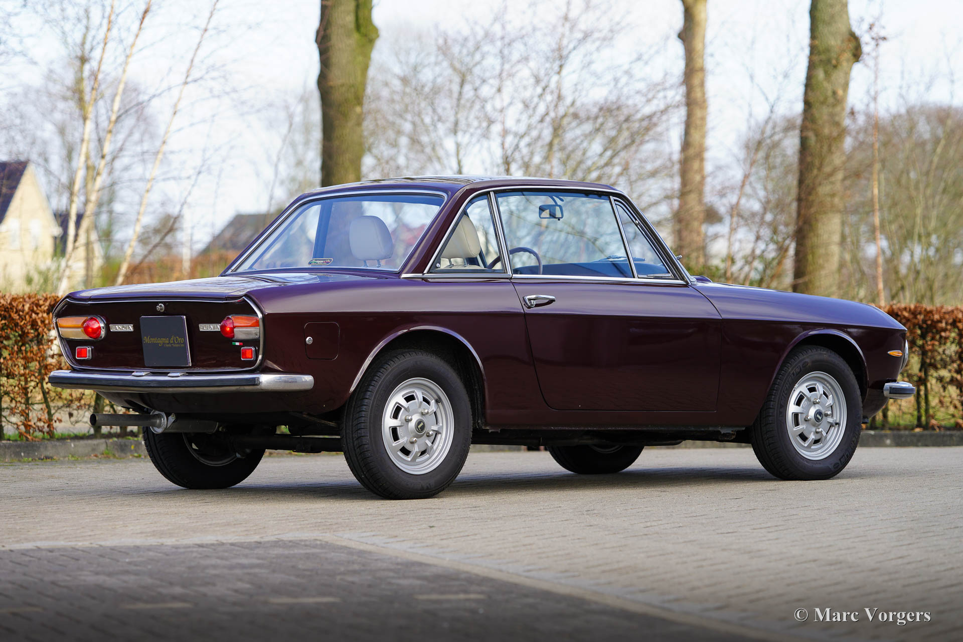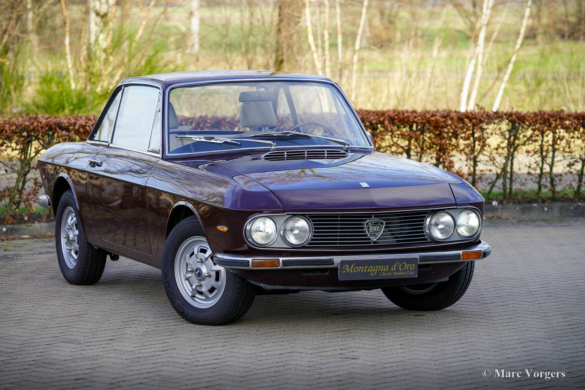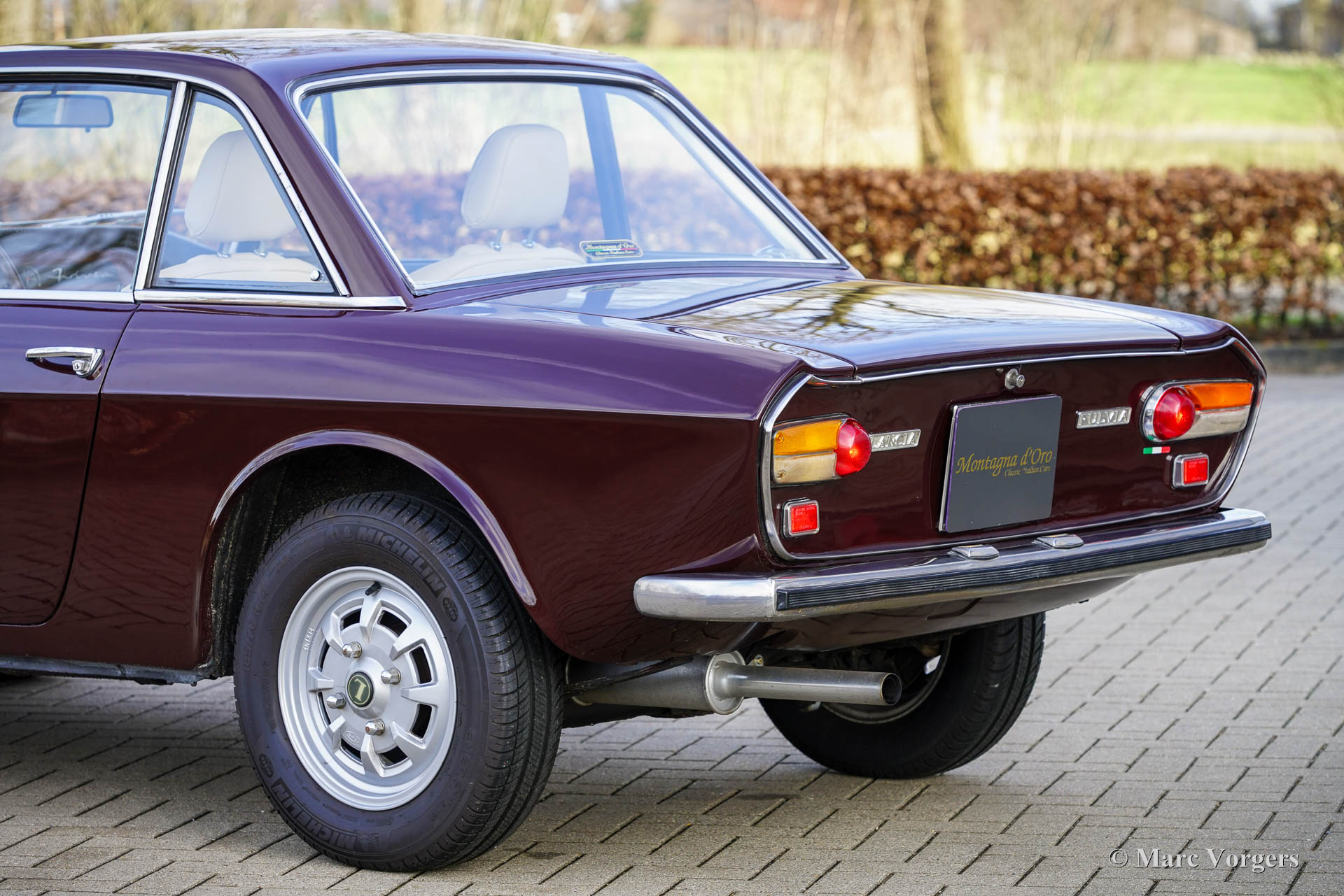 Lancia Fulvia Coupé (2ème série), année 1972. Couleur brun/rouge foncé (Marrone Parrioli) associée à un intérieur en cuir beige et un tapis noir. Cette magnifique Lancia Fulvia Coupé a été vendue neuve en Italie. En 1998, la voiture fut importée aux Pays-Bas. Le propriétaire néerlandais a fait restaurer la voiture professionnellement en 2021 (au compteur 64.500) et la remettre en état par un spécialiste ; les factures s'élèvent à environ 35 000 € – 40 000 €. La voiture fut repeinte dans la couleur d'origine, l'intérieur fut renouvelé (revêtement en cuir), le moteur, les carburateurs et les freins furent révisés et de nombreuses pièces furent renouvelées comme l'échappement et les amortisseurs. Cette Lancia Fulvia est dans un excellent et merveilleux état, et le compteur kilométrique indique désormais 69.950, ce qui signifie que la voiture n'a parcouru que 5.500 kilomètres depuis sa restauration. La Lancia Fulvia Coupé fut conçue par le styliste Lancia Piero Castagnero, qui avait également conçu les modèles à succès Flavia et Fulvia berline. Le Fulvia Coupé dispose d'un cockpit léger et aéré, et il se manie parfaitement. La Lancia Fulvia est un coupé sportif, les modèles « HF » étaient des voitures de rallye très réussies dans les années 1960 et 1970. Aujourd'hui, la Fulvia Coupé est admirée par ceux qui aiment son superbe design et son style italien, ainsi que par d'autres qui conduisent leur Fulvia Coupé lors de courses de régularité historiques (rallyes) et de tournées. C'est votre chance d'acheter un magnifique exemplaire en excellent état !