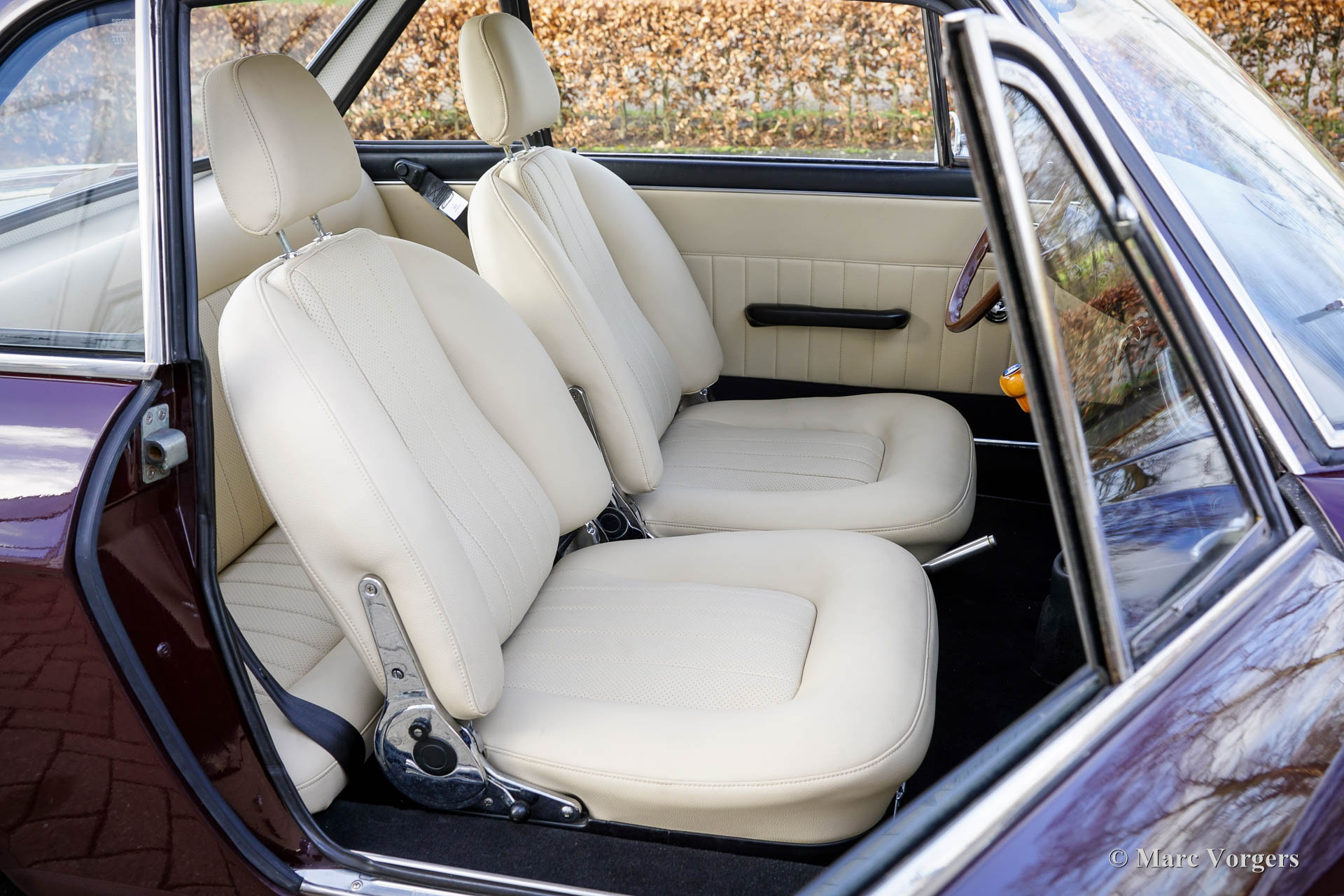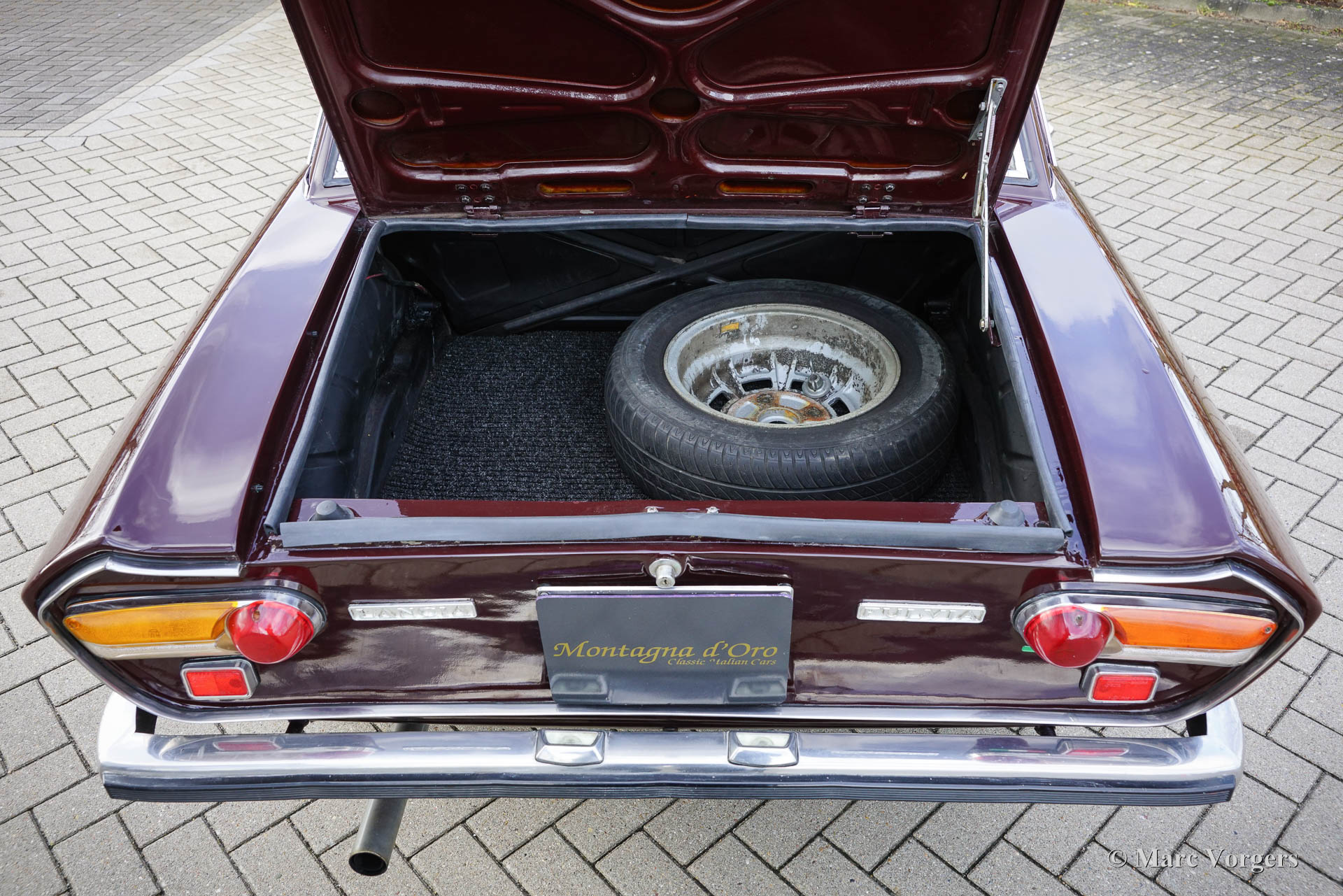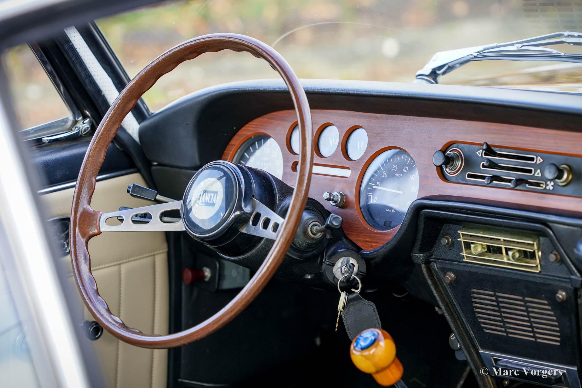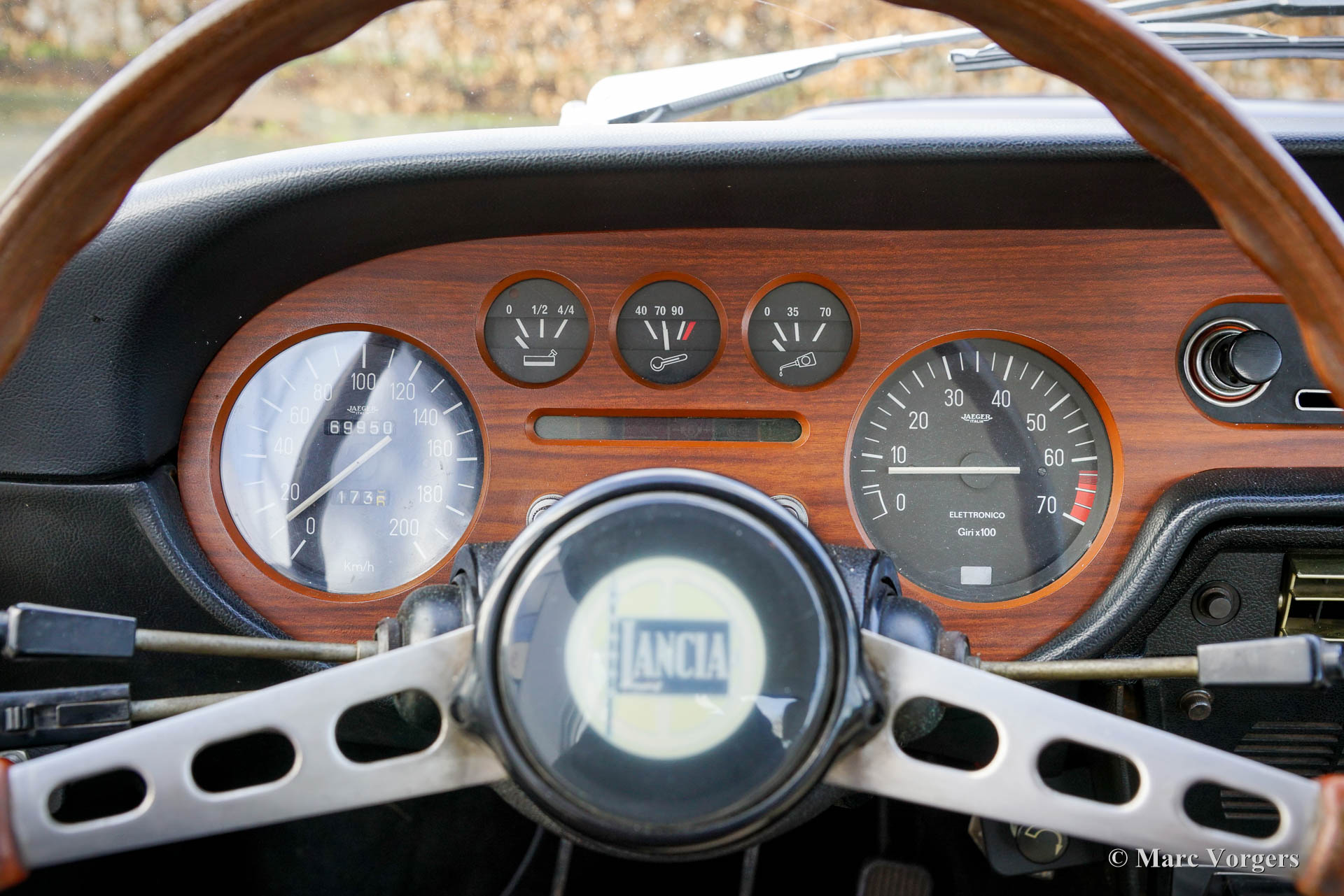 Lancia Fulvia Coupé (2ème série), année 1972. Couleur brun/rouge foncé (Marrone Parrioli) associée à un intérieur en cuir beige et un tapis noir. Cette magnifique Lancia Fulvia Coupé a été vendue neuve en Italie. En 1998, la voiture fut importée aux Pays-Bas. Le propriétaire néerlandais a fait restaurer la voiture professionnellement en 2021 (au compteur 64.500) et la remettre en état par un spécialiste ; les factures s'élèvent à environ 35 000 € – 40 000 €. La voiture fut repeinte dans la couleur d'origine, l'intérieur fut renouvelé (revêtement en cuir), le moteur, les carburateurs et les freins furent révisés et de nombreuses pièces furent renouvelées comme l'échappement et les amortisseurs. Cette Lancia Fulvia est dans un excellent et merveilleux état, et le compteur kilométrique indique désormais 69.950, ce qui signifie que la voiture n'a parcouru que 5.500 kilomètres depuis sa restauration. La Lancia Fulvia Coupé fut conçue par le styliste Lancia Piero Castagnero, qui avait également conçu les modèles à succès Flavia et Fulvia berline. Le Fulvia Coupé dispose d'un cockpit léger et aéré, et il se manie parfaitement. La Lancia Fulvia est un coupé sportif, les modèles « HF » étaient des voitures de rallye très réussies dans les années 1960 et 1970. Aujourd'hui, la Fulvia Coupé est admirée par ceux qui aiment son superbe design et son style italien, ainsi que par d'autres qui conduisent leur Fulvia Coupé lors de courses de régularité historiques (rallyes) et de tournées. C'est votre chance d'acheter un magnifique exemplaire en excellent état !
