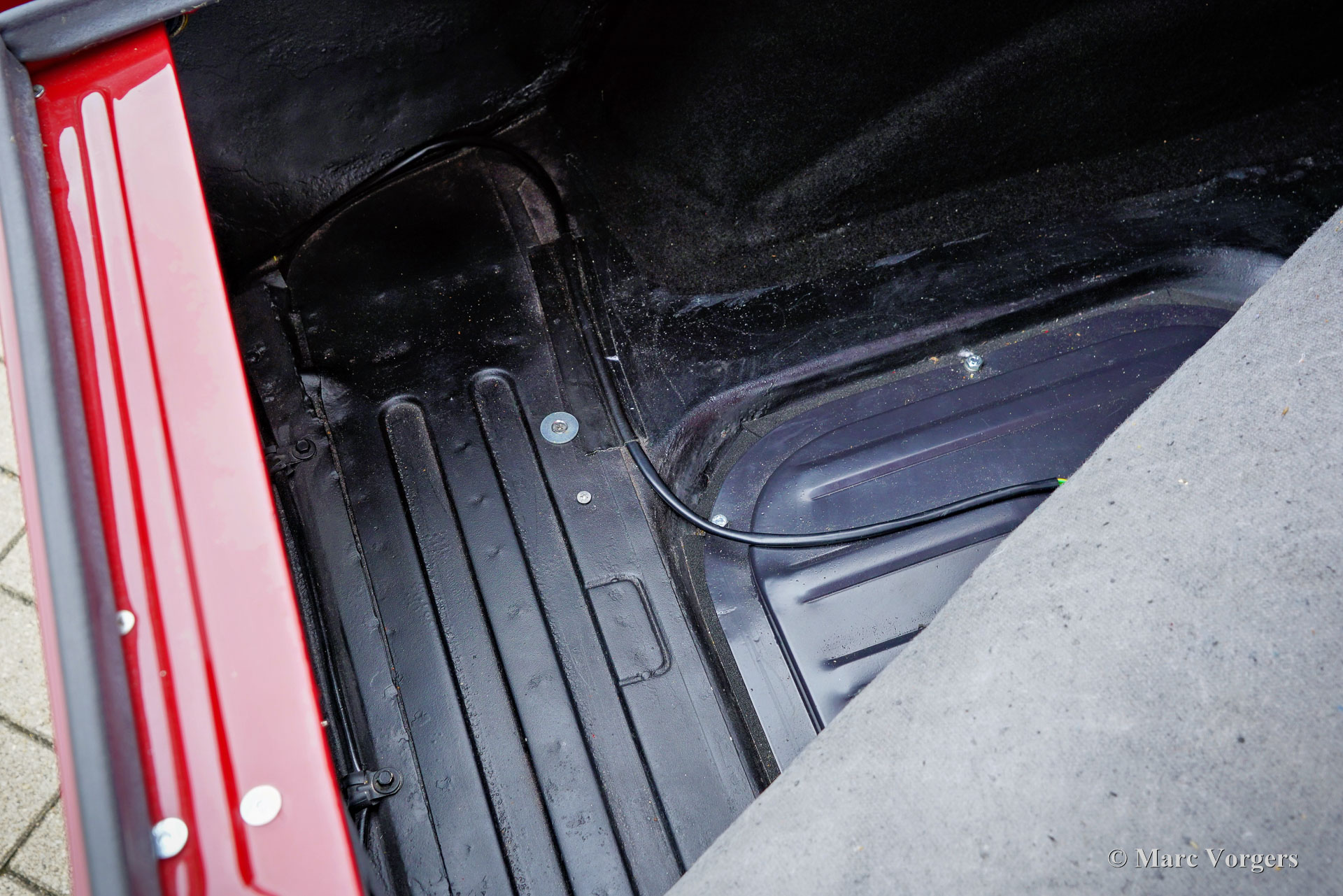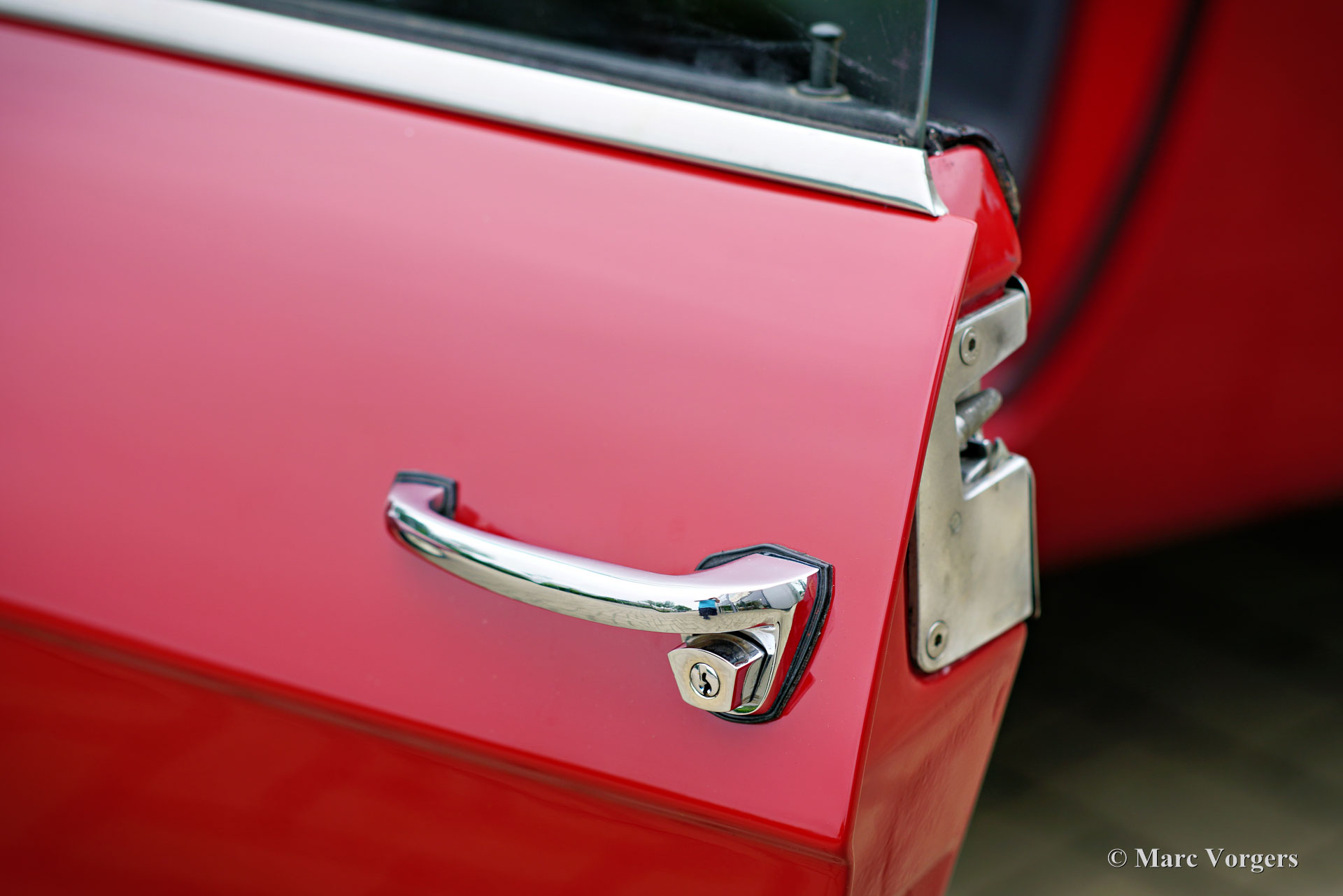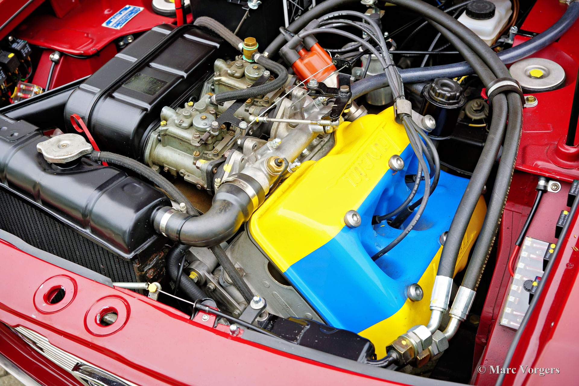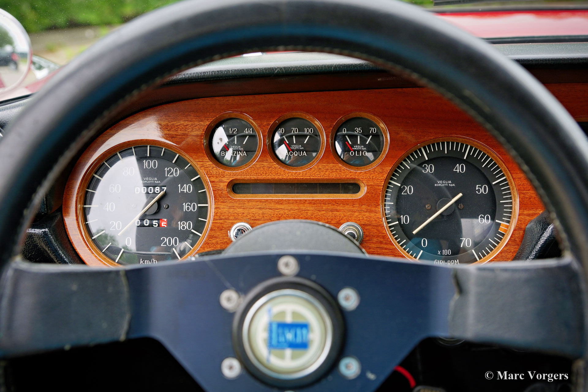 Lancia Fulvia Coupé Rallye 1.3 HF, 1968. Couleur rouge foncé (Rosso Chester) combinée à un intérieur noir. Cette magnifique Lancia Fulvia fut vendue neuve en Italie, le premier propriétaire était un M. G.M.P. Piutus de Bovisio. La Lancia Fulvia Coupé Rallye 1.3 HF est une voiture de compétition rare et spéciale, seuls 882 exemplaires furent construits de 1967 à 1969. Le modèle « Rally HF » fut construit léger avec une carrosserie en acier de calibre plus fin, de l'aluminium pour le capot et un revêtement de porte en aluminium, et vitres arrière en Perspex. Le poids a été réduit à 825 kilogrammes, soit 125 kg de moins qu'une Lancia Fulvia standard. Le 1298 cm3 moteur V4 a reçu un réglage de compétition à 100 ch avec une nouvelle conception de culasse, de grandes soupapes, des arbres à cames modifiés, des collecteurs d'admission/d'échappement modifiés, deux carburateurs Solex C35 PHH à double starter et un volant d'inertie léger. Ce magnifique exemplaire fut restauré, révisé et amélioré détaillée avec des pièces de haute qualité. Tout sur la voiture est neuf, les coûts et les efforts n'ont pas été épargnés pour viser la perfection. Par exemple, tous les colliers de serrage et les écrous et boulons accrocheurs sont en acier inoxydable T304. Tous les caoutchoucs du sous-châssis sont fabriqués avec une meilleure qualité « shore », type 90-92. Les ressorts à lames furent renouvelés, y compris les bandes filtrantes intermédiaires en plastique, et les carburateurs furent révisés par le spécialiste italien Accornero Servofreni à Turin. Bien entendu, tous les caoutchoucs de carrosserie furent renouvelés, le faisceau de câblage fut renouvelé, des étriers de frein en acier inoxydable T304 ont été installés (avec tubes de pont) et des amortisseurs réglables Koni-Vintage ont été montés. Autres améliorations : 2 ventilateurs de refroidissement légers Spal avec capteur dans le radiateur et interrupteur de priorité sur le tableau de bord, les ventilateurs de refroidissement, les spots et le démarreur ont tous leurs propres relais, alternateur monté avec une puissance minimale de 480 watts (pas de régulateur de tension). Les détails précédents montrent clairement que cette rare Fulvia Rallye 1.3 HF a été réalisée selon des spécifications de première classe. Les roues en acier d'origine avec jantes soudées ne sont plus sûres pour une utilisation sur route rapide, c'est pourquoi des alternatives modernes sont installées. La voiture est dans un superbe état et est entièrement à jour. Il s'agit d'une rare Lancia Fulvia Coupé Rallye 1.3 HF pour le passionné/collectionneur sérieux de Lancia !